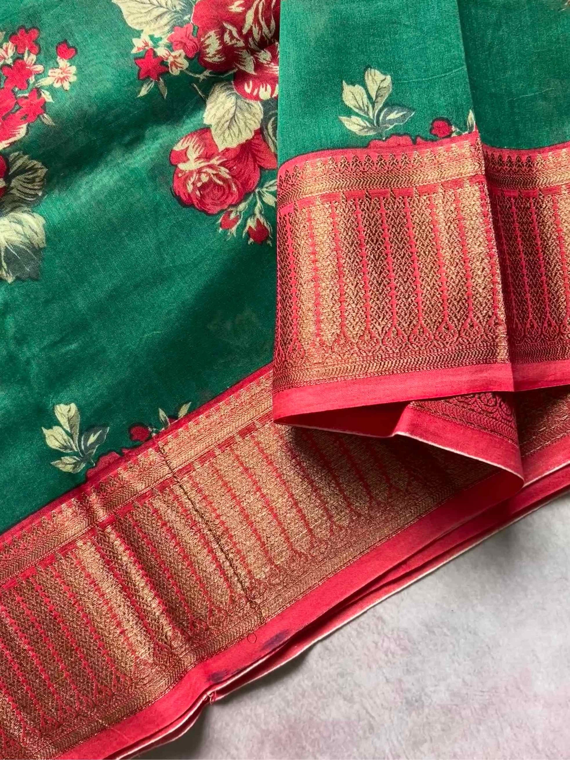 Blouse Piece : Comes with a contrast blouse piece of 80 cms
