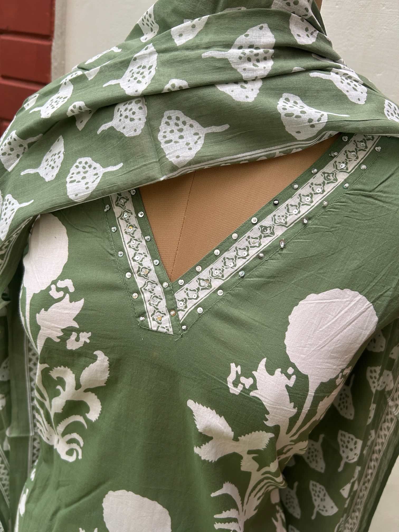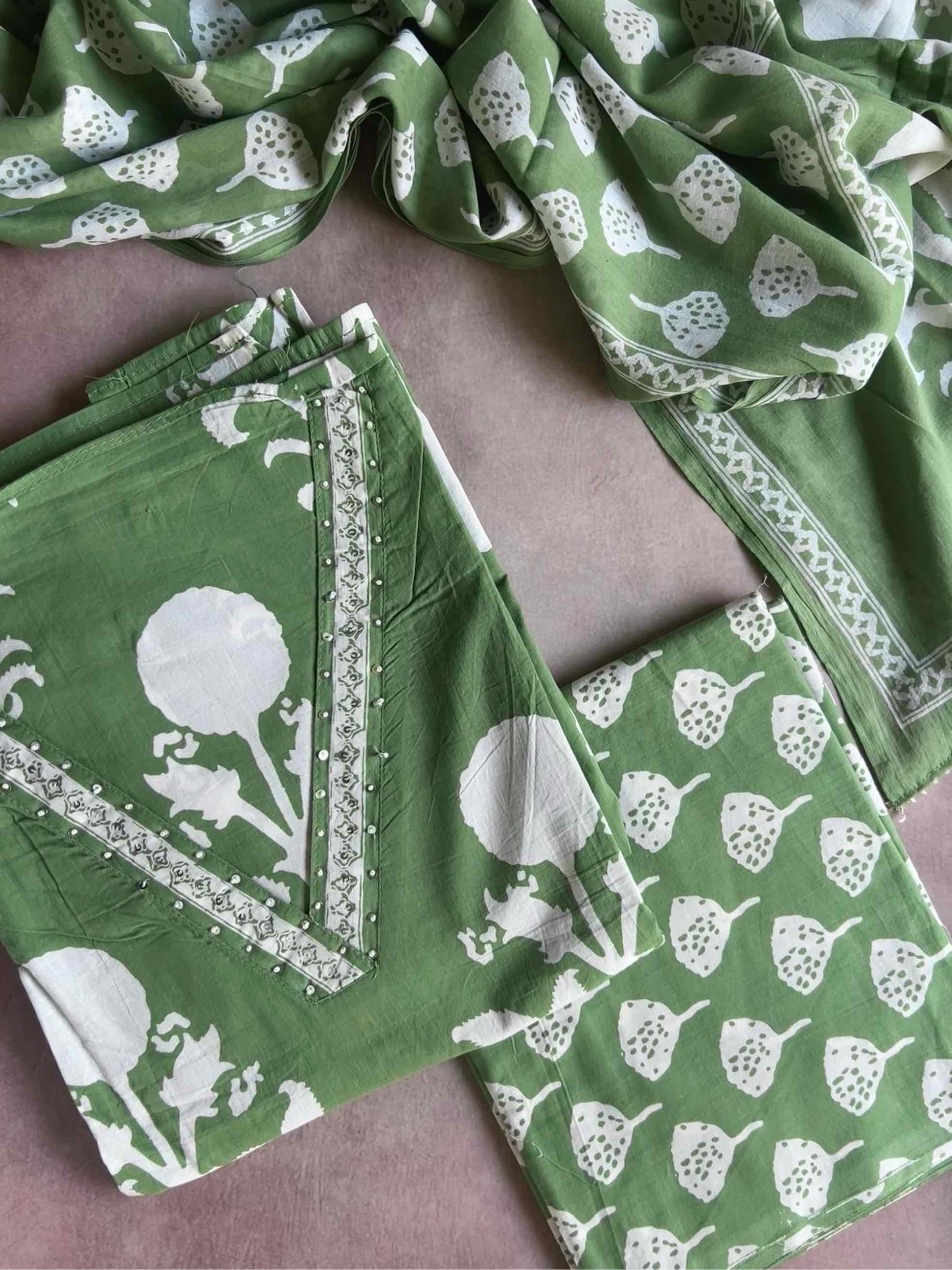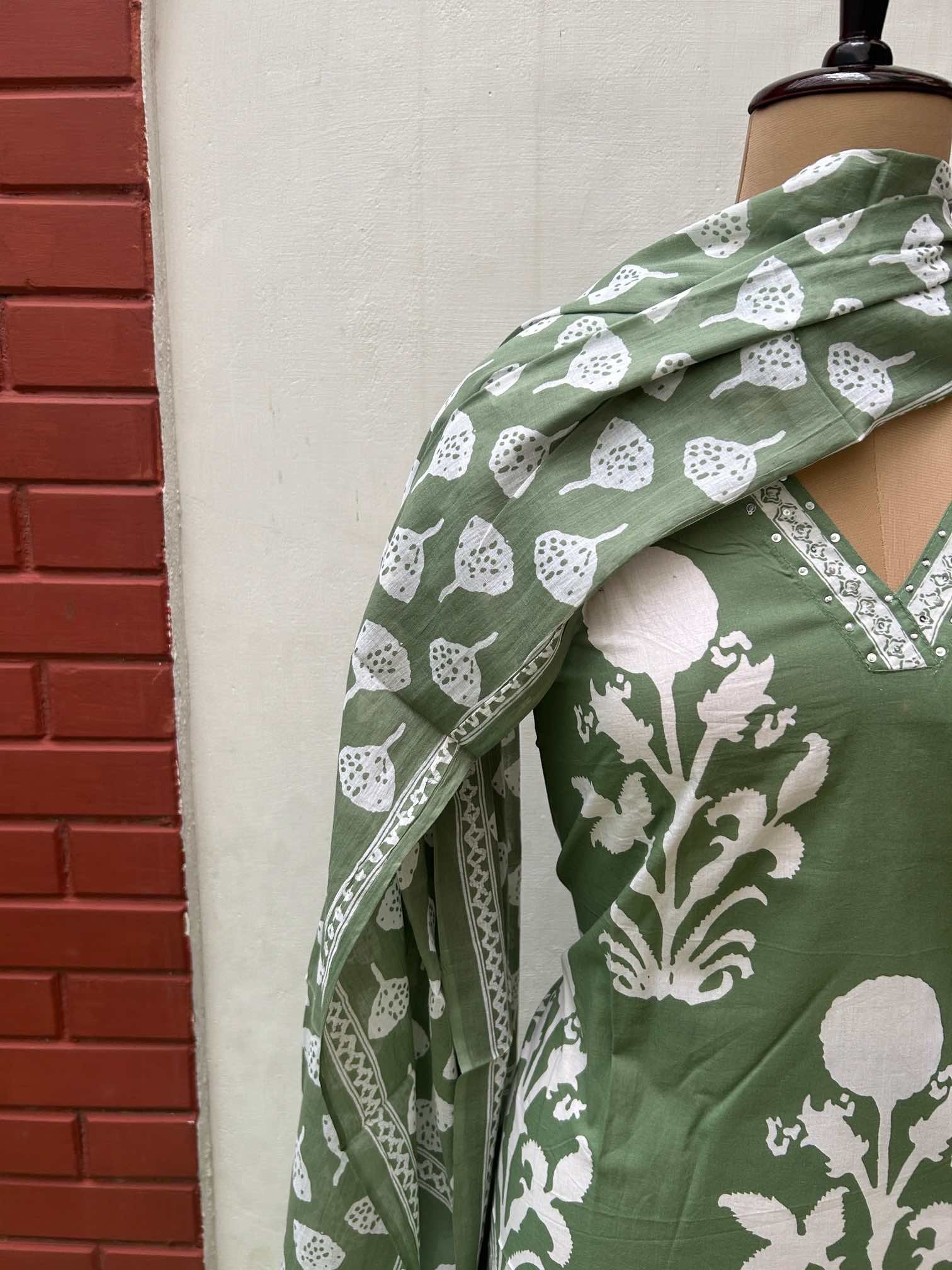 The cotton fabric keeps it light, breathable, and perfect for all-day wear, while the semi-stitched design offers the freedom to tailor it to your ideal fit. The printed top adds charm and vibrance, the matching pant brings balance and elegance, and the dupatta completes the ensemble with a graceful, flowing touch. Altogether, it creates a look that’s effortlessly stylish, feminine, and timeless.