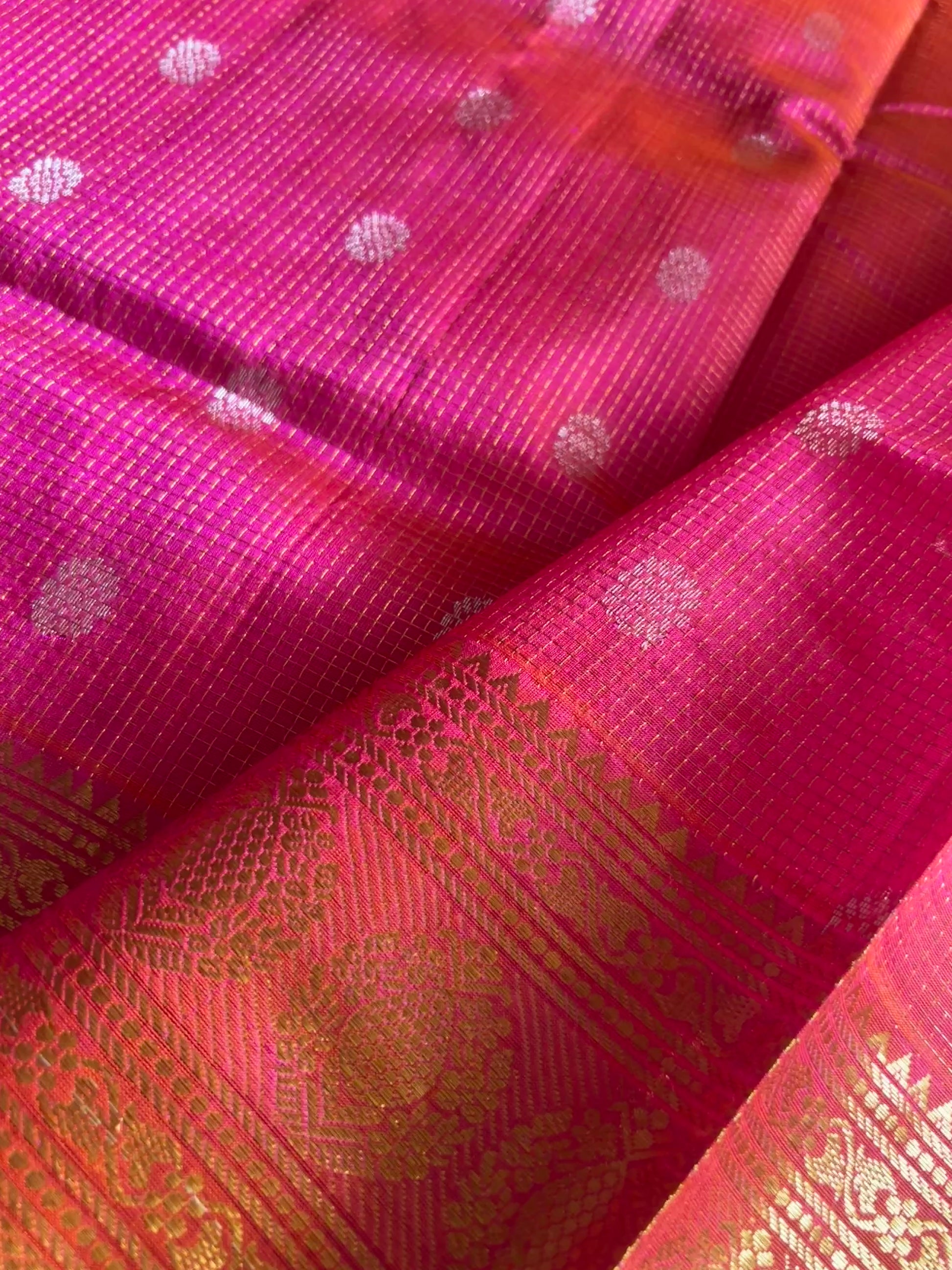 Known for their unique lightweight and breathable quality, the Kanchi silk cotton sarees are soft, comfortable, easy to carry and wrinkle-free. The fabric glistens because of its fine quality. The subtle shine of this saree makes it a distinctive ethnic wear especially in parties and traditional occasions.