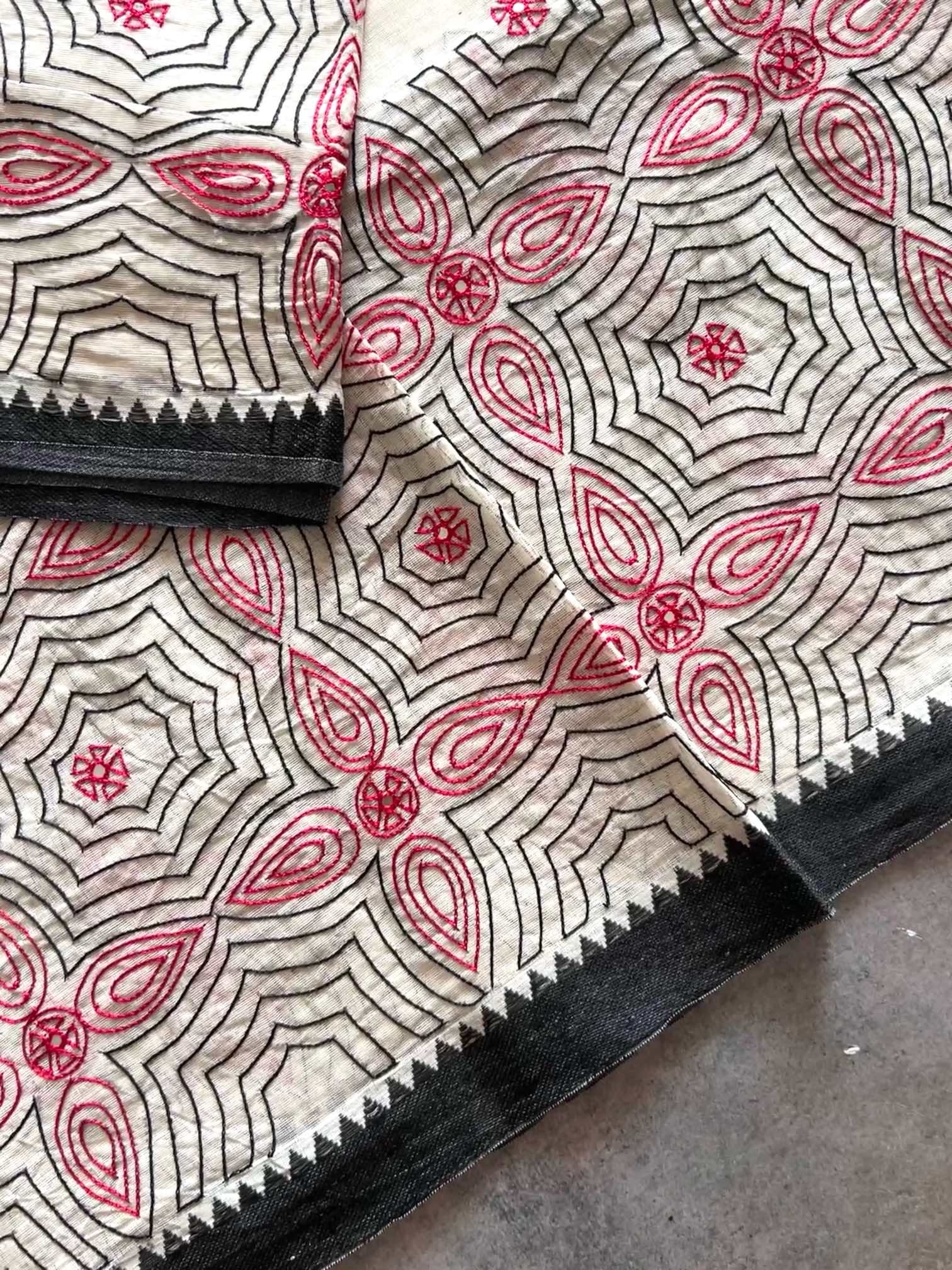 Fabric : Cotton saree with hand embroidery and mirror work