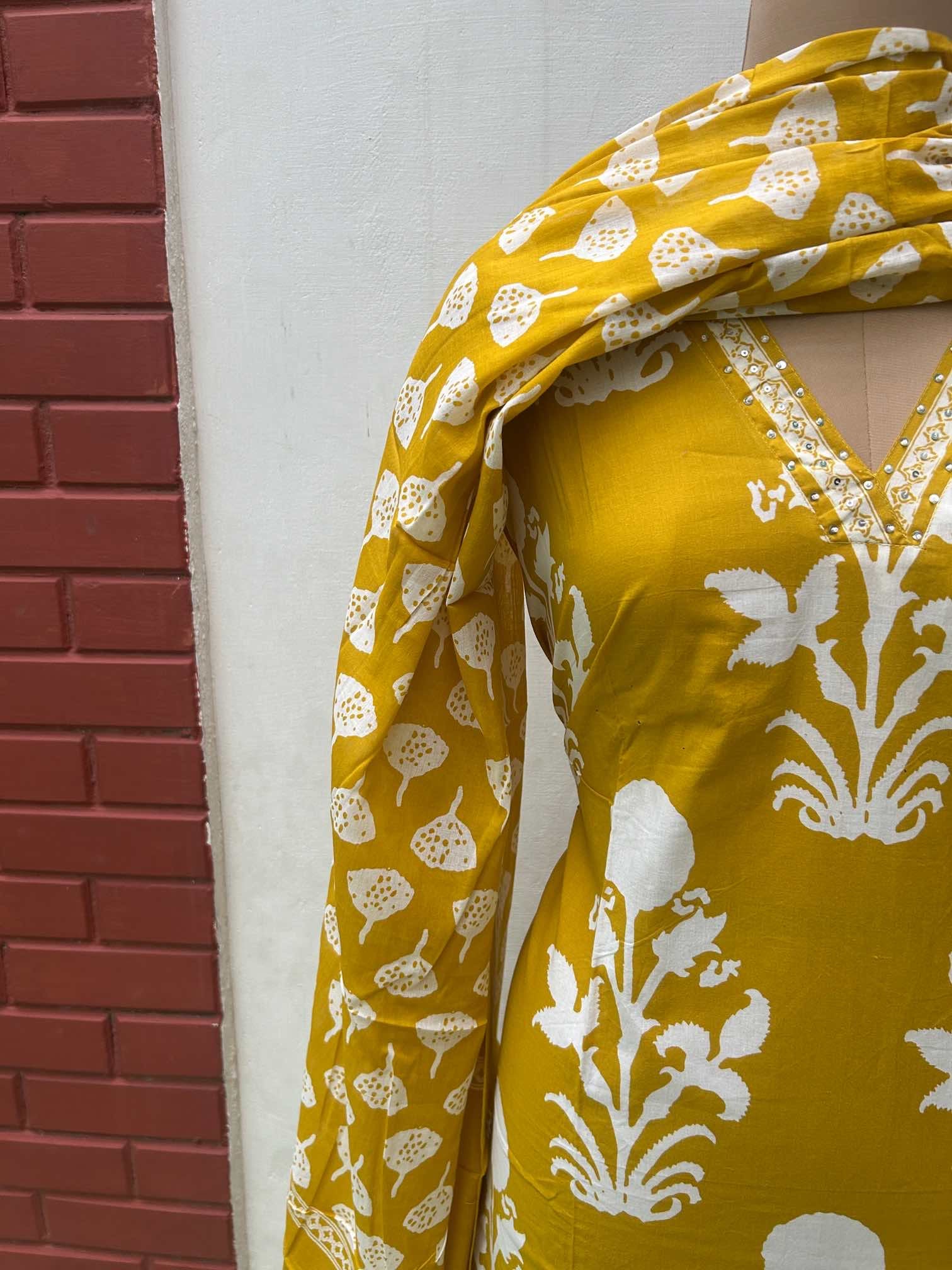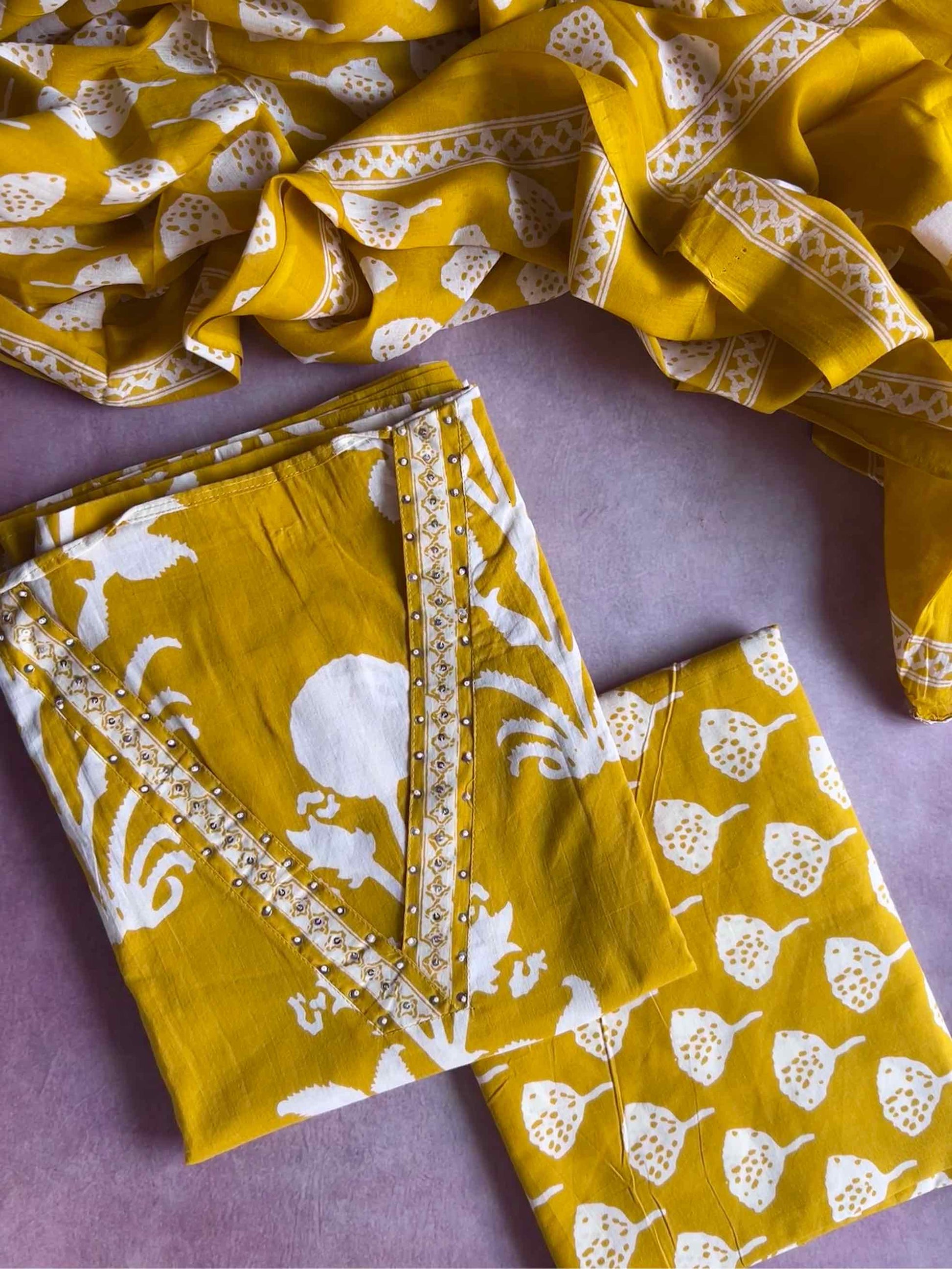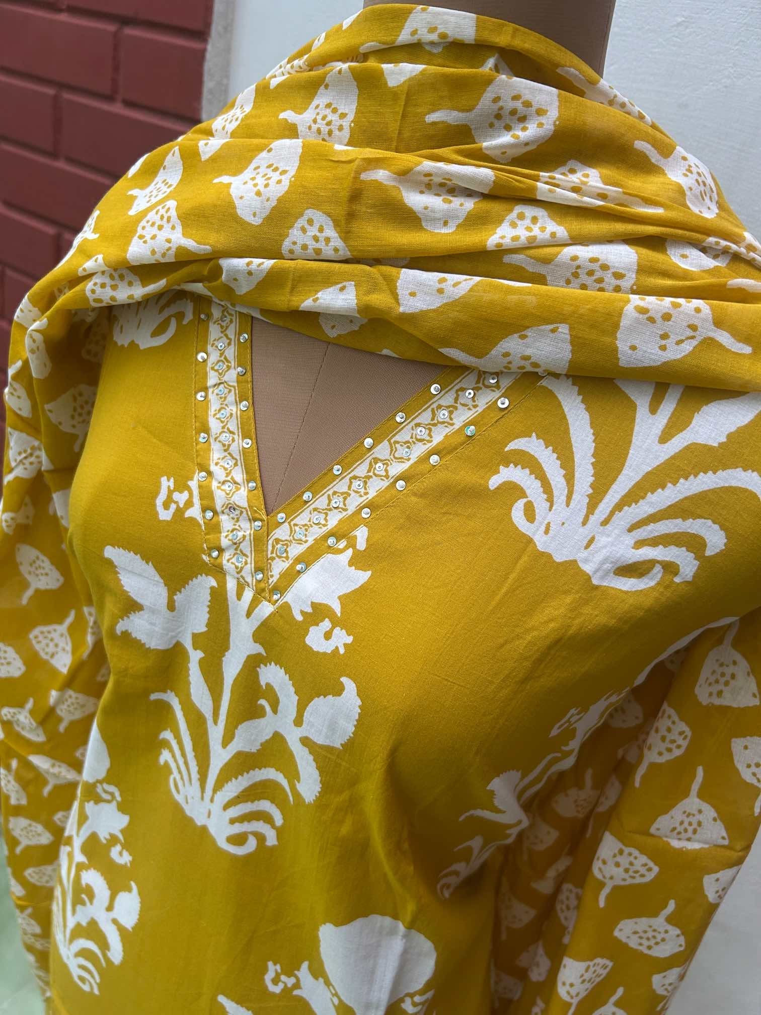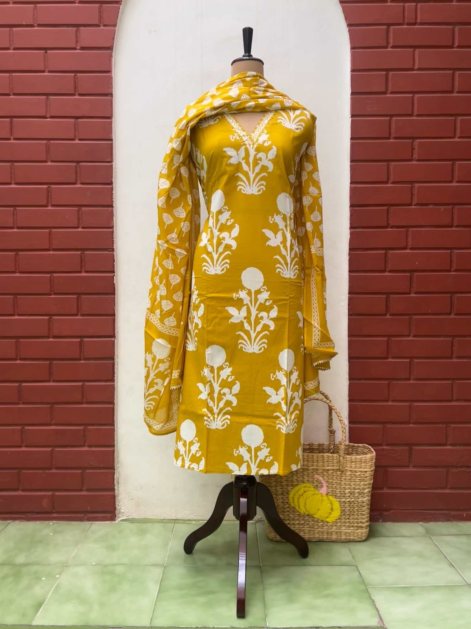 The cotton fabric keeps it light, breathable, and perfect for all-day wear, while the semi-stitched design offers the freedom to tailor it to your ideal fit. The printed top adds charm and vibrance, the matching pant brings balance and elegance, and the dupatta completes the ensemble with a graceful, flowing touch. Altogether, it creates a look that’s effortlessly stylish, feminine, and timeless.
