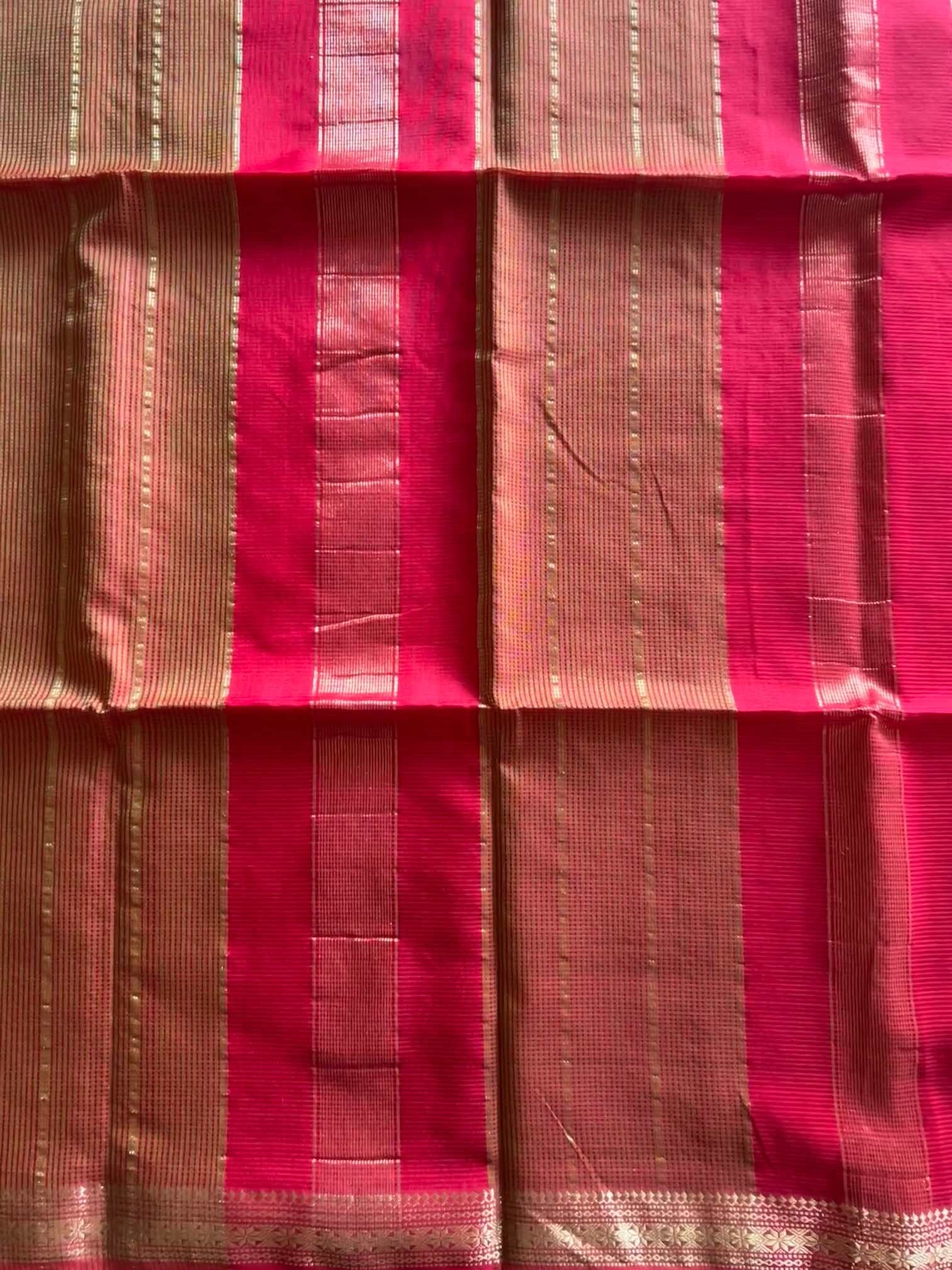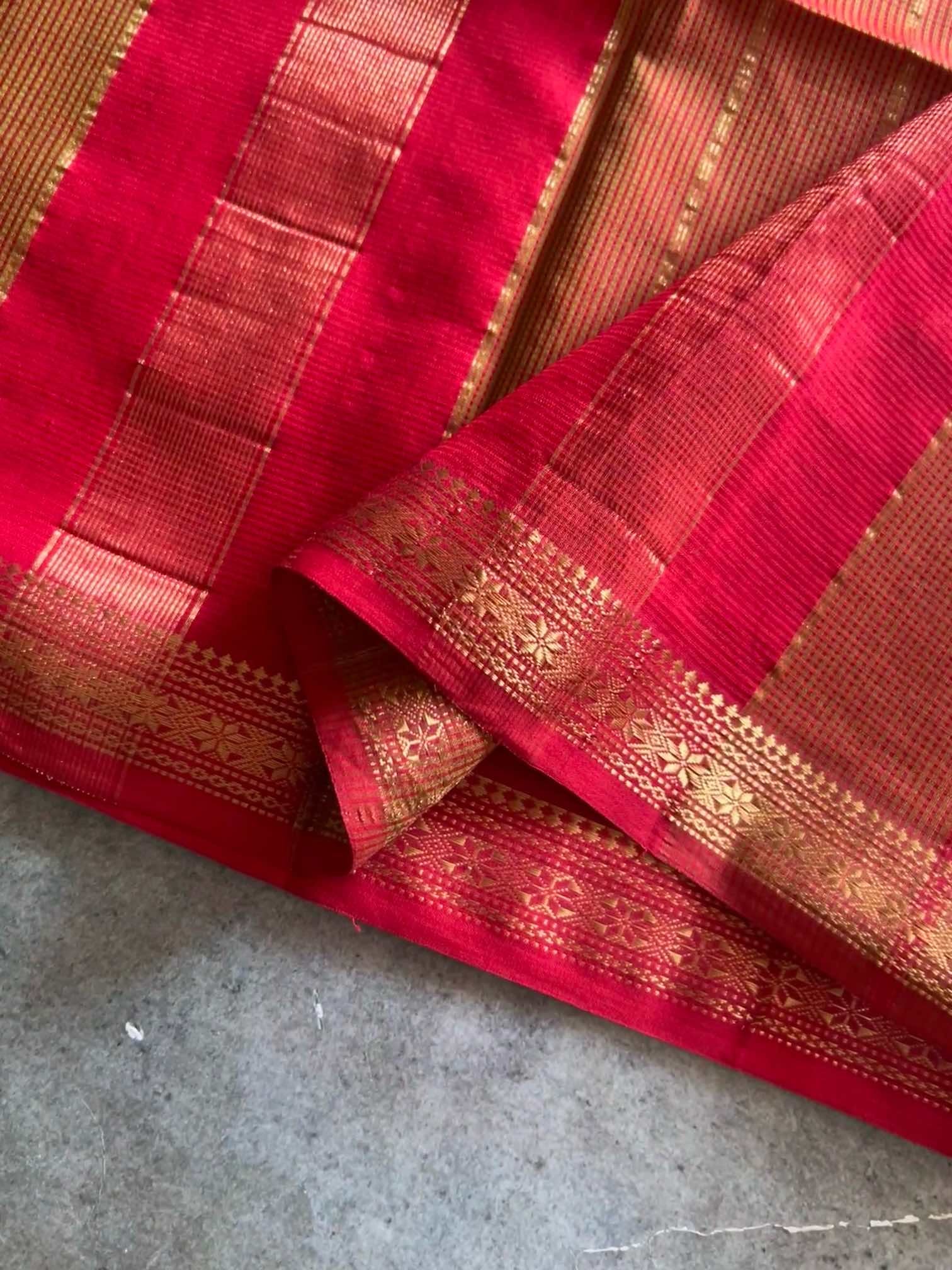 Maheswari silk cotton is known for its exquisite blend of elegance and comfort. The silk adds a luxurious sheen and drape, while the cotton provides breathability and softness. The border, often intricately woven with metallic threads, adds a touch of opulence and sophistication. This blend creates a visually striking and versatile textile that balances traditional charm with modern sensibility, making it ideal for both festive occasions and refined everyday wear.