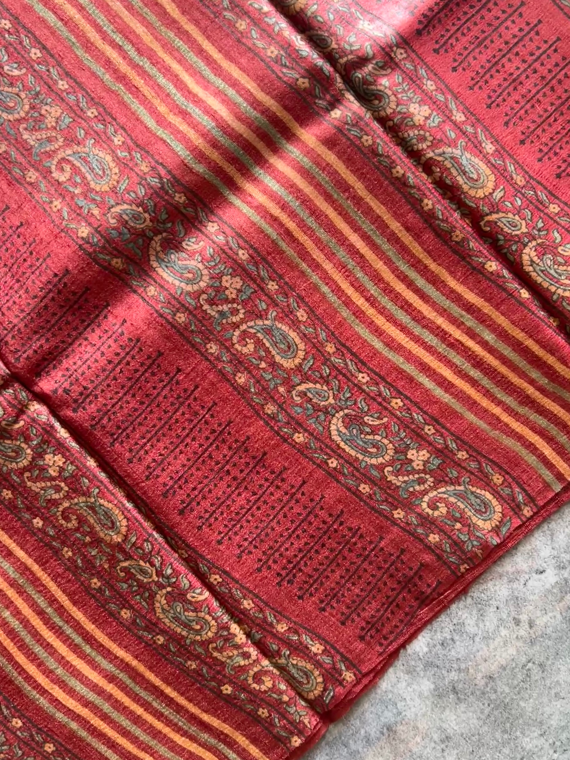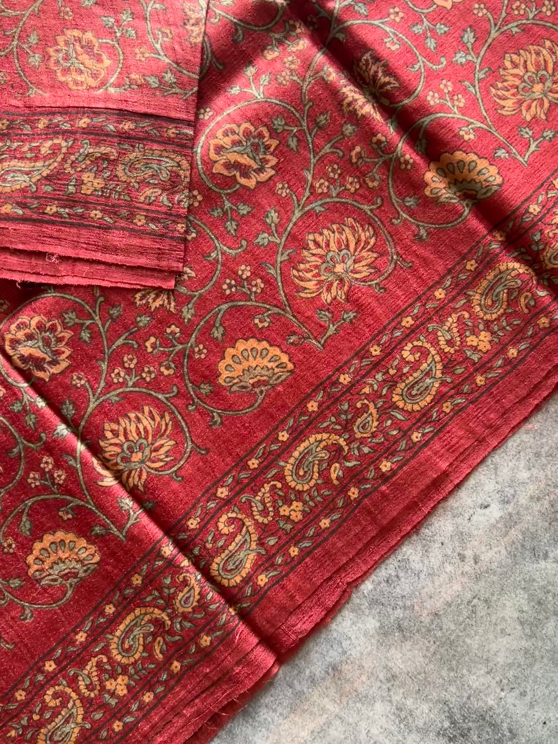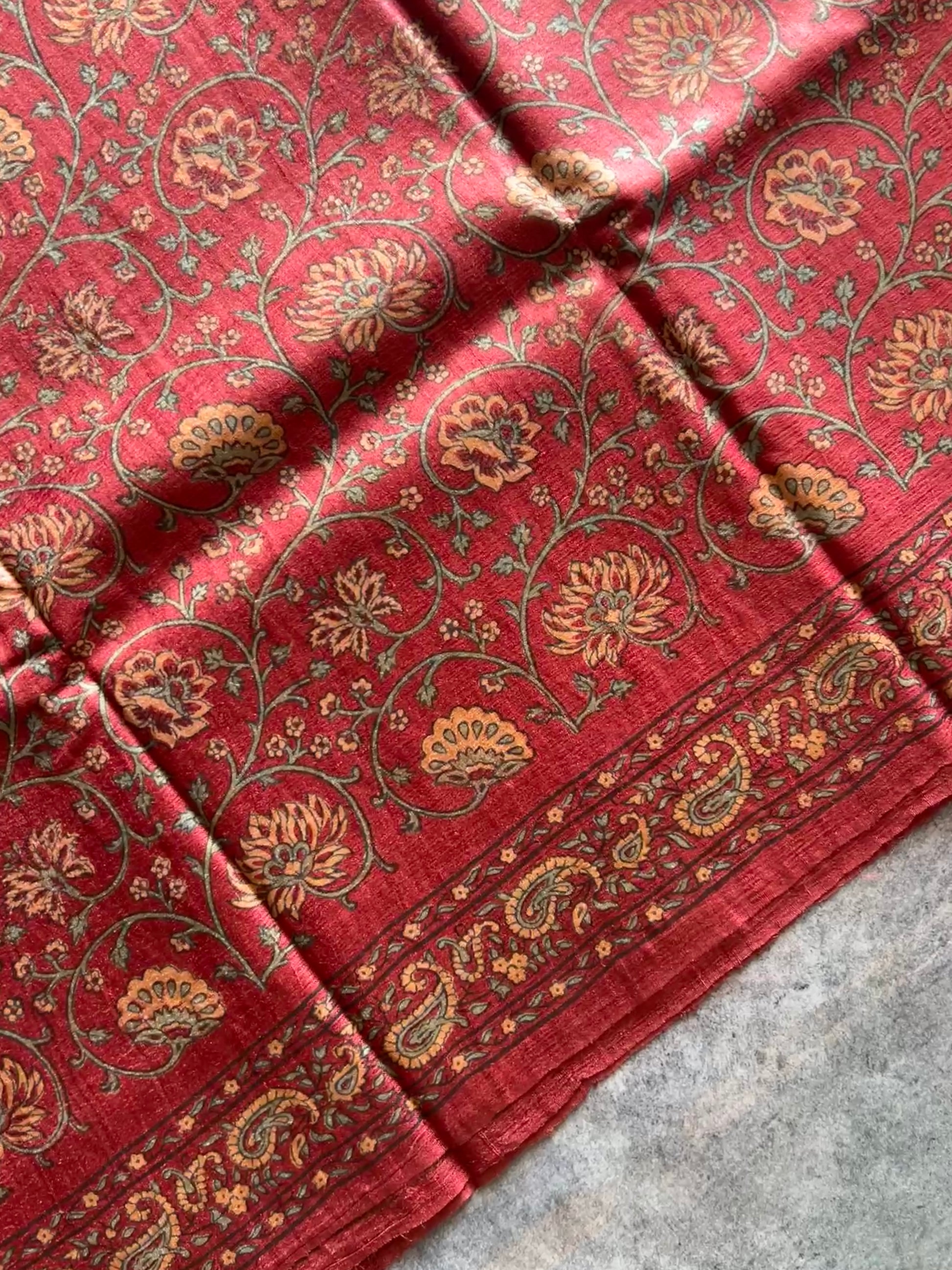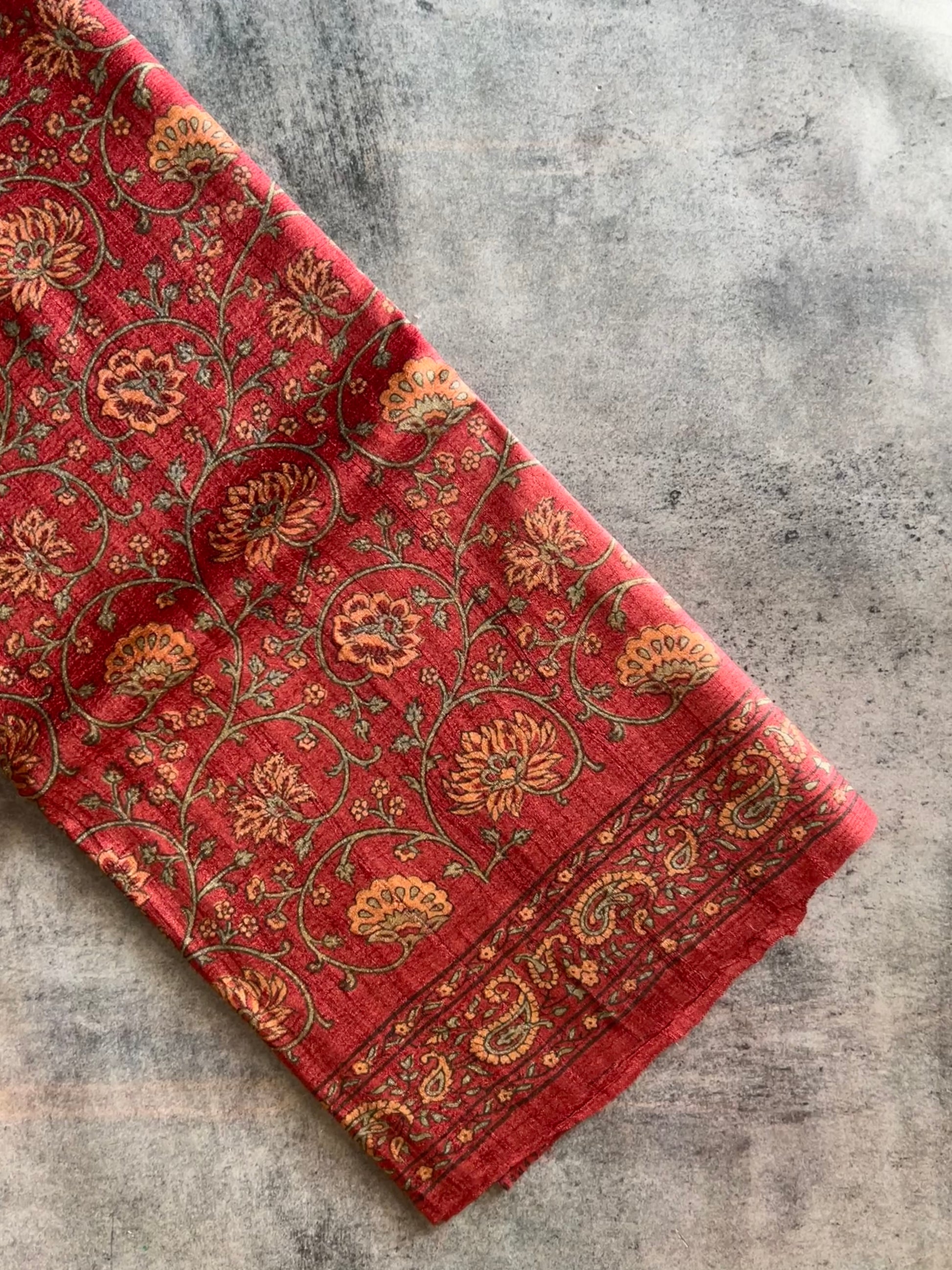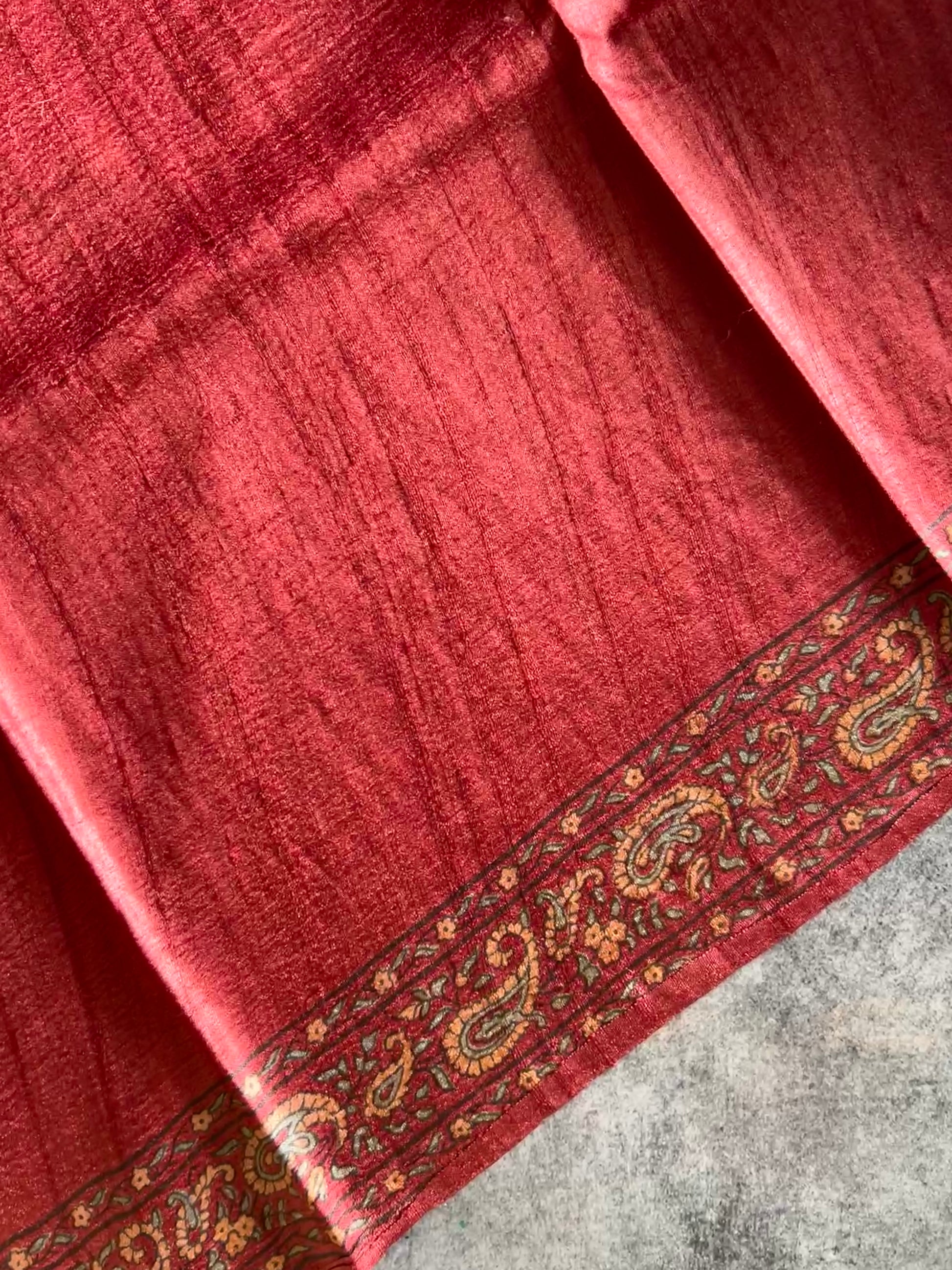 Tussar silk sarees are handwoven pieces of wonder getting you ethnified with the modern twist. This fabric shines on the outside and makes you cozy from the inside with its soft breathable nature. So, Ideal to keep yourself in your comfort zone at the long gatherings.