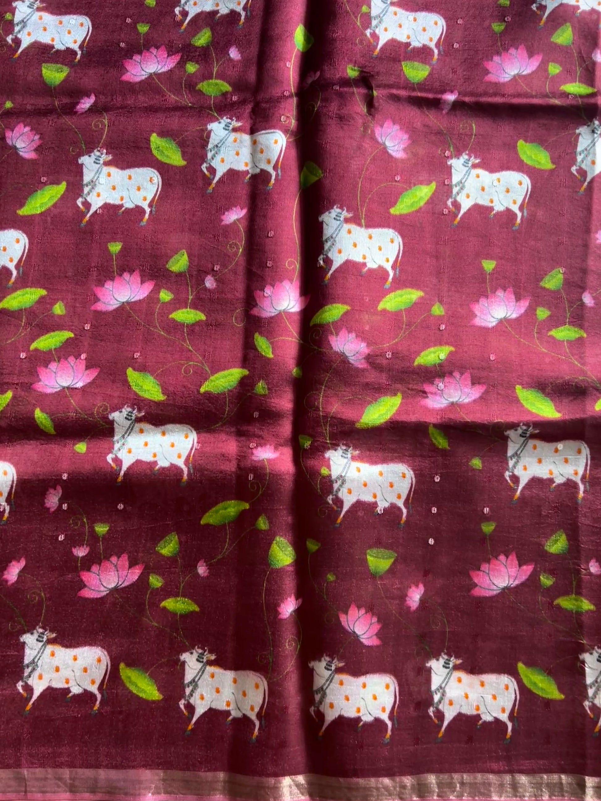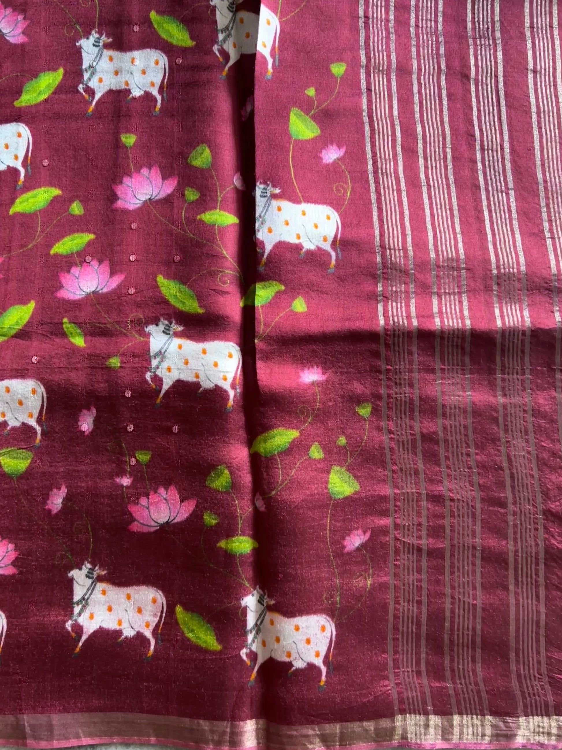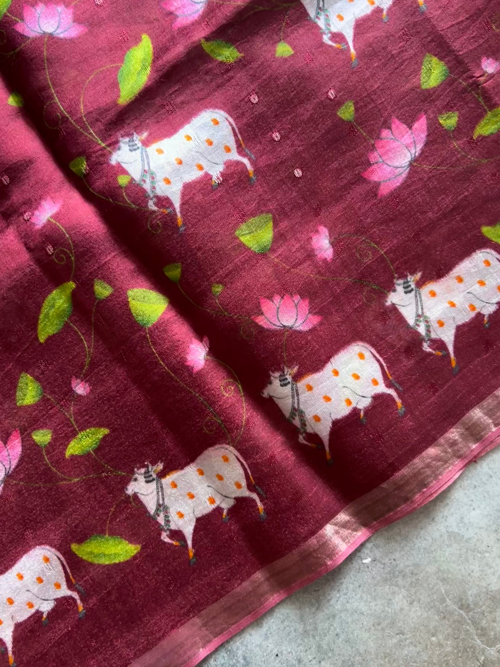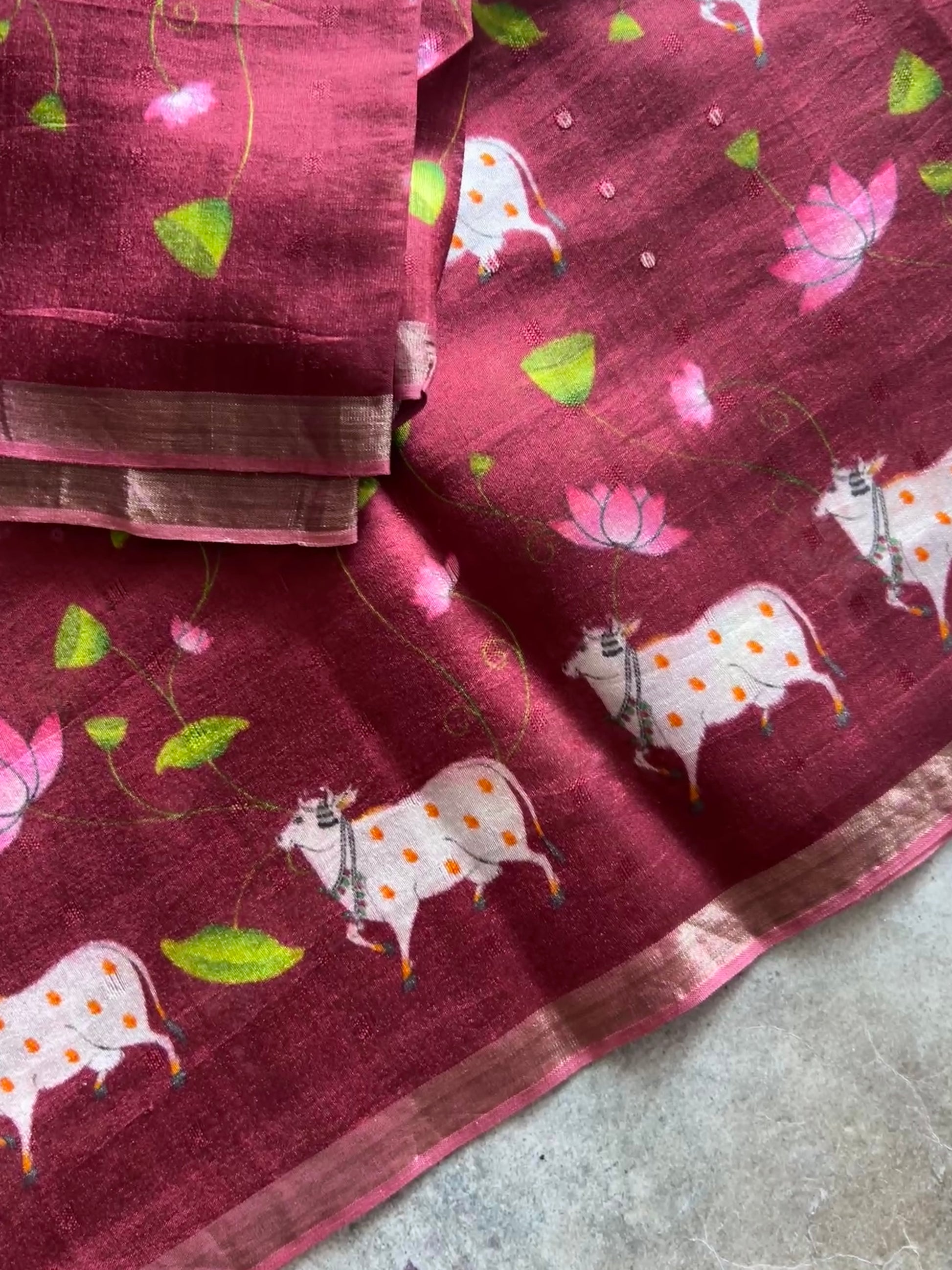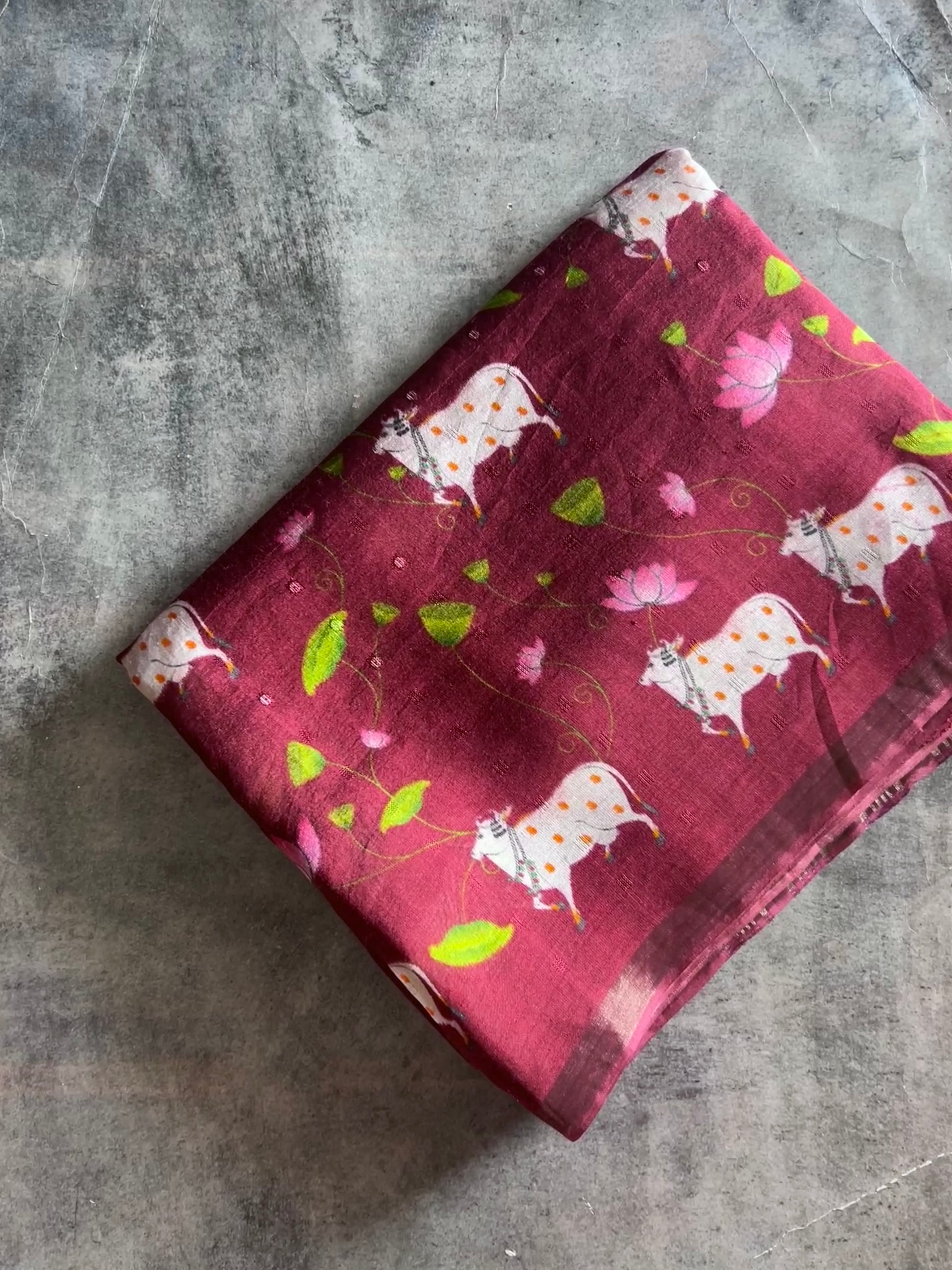 Muslin digital printed silk sarees beautifully blend tradition with modern elegance. The delicate, lightweight texture of muslin silk drapes gracefully, while the intricate digital prints add a contemporary flair with vivid colors and precise detailing. These sarees exude understated luxury — perfect for both casual sophistication and festive charm. Their timeless appeal lies in their fusion of heritage fabric and artistic innovation.