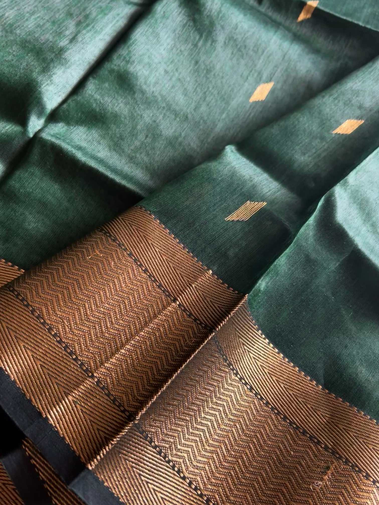 Maheswari silk cotton is known for its exquisite blend of elegance and comfort. The silk adds a luxurious sheen and drape, while the cotton provides breathability and softness. The border, often intricately woven with metallic threads, adds a touch of opulence and sophistication. This blend creates a visually striking and versatile textile that balances traditional charm with modern sensibility, making it ideal for both festive occasions and refined everyday wear.