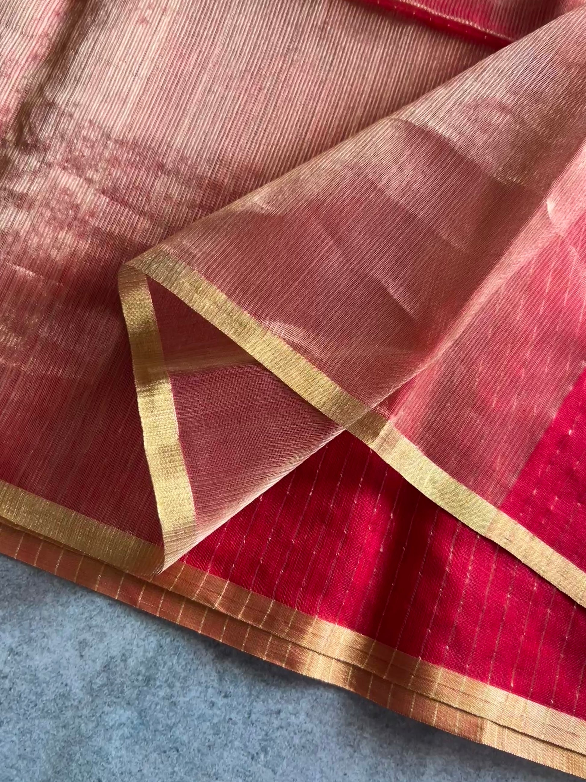 Maheswari silk cotton is known for its exquisite blend of elegance and comfort. The silk adds a luxurious sheen and drape, while the cotton provides breathability and softness. The border, often intricately woven with metallic threads, adds a touch of opulence and sophistication. This blend creates a visually striking and versatile textile that balances traditional charm with modern sensibility, making it ideal for both festive occasions and refined everyday wear.