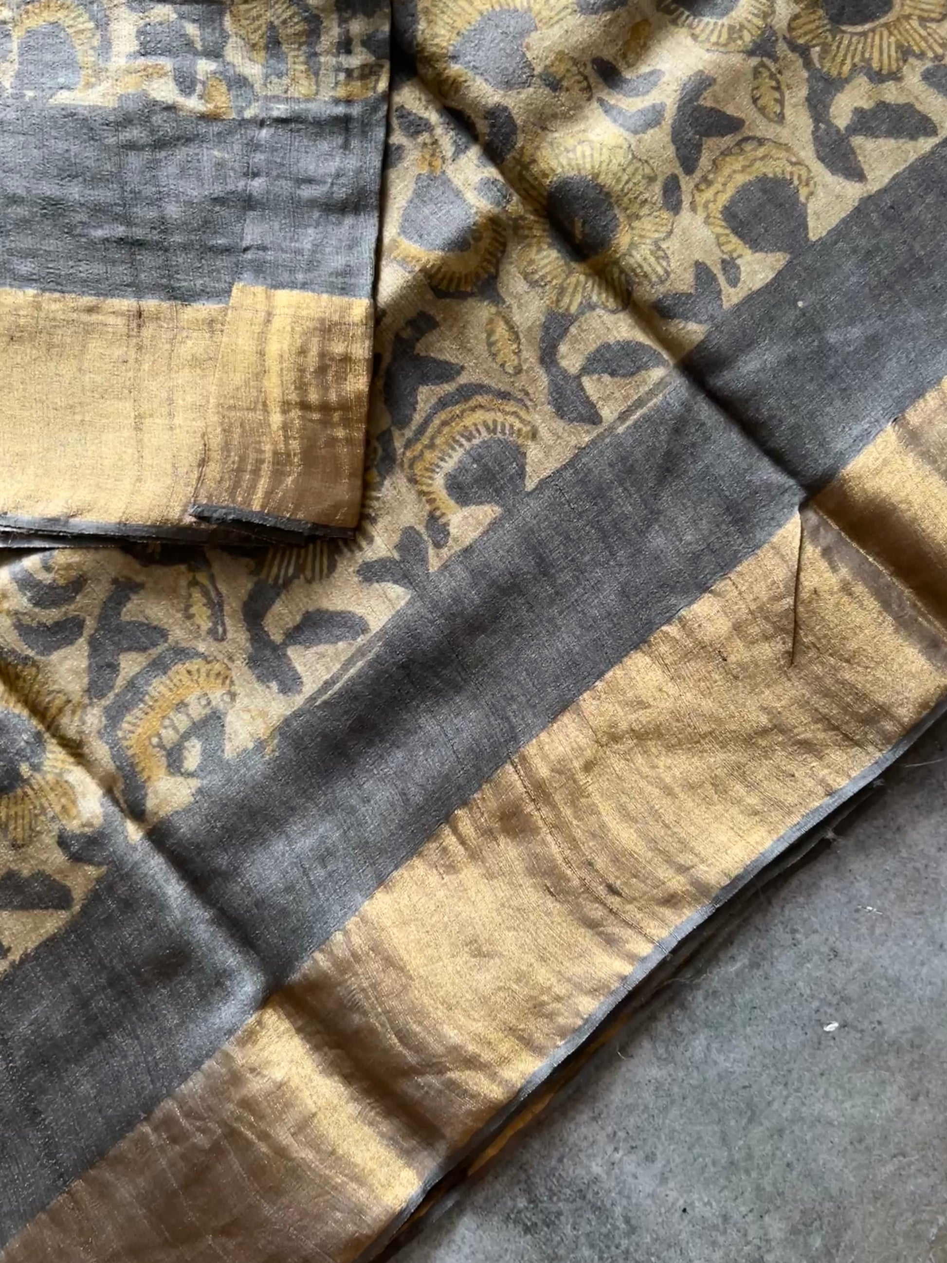 Tussar silk sarees are handwoven pieces of wonder getting you ethnified with the modern twist. This fabric shines on the outside and makes you cozy from the inside with its soft breathable nature. So, Ideal to keep yourself in your comfort zone at the long gatherings.