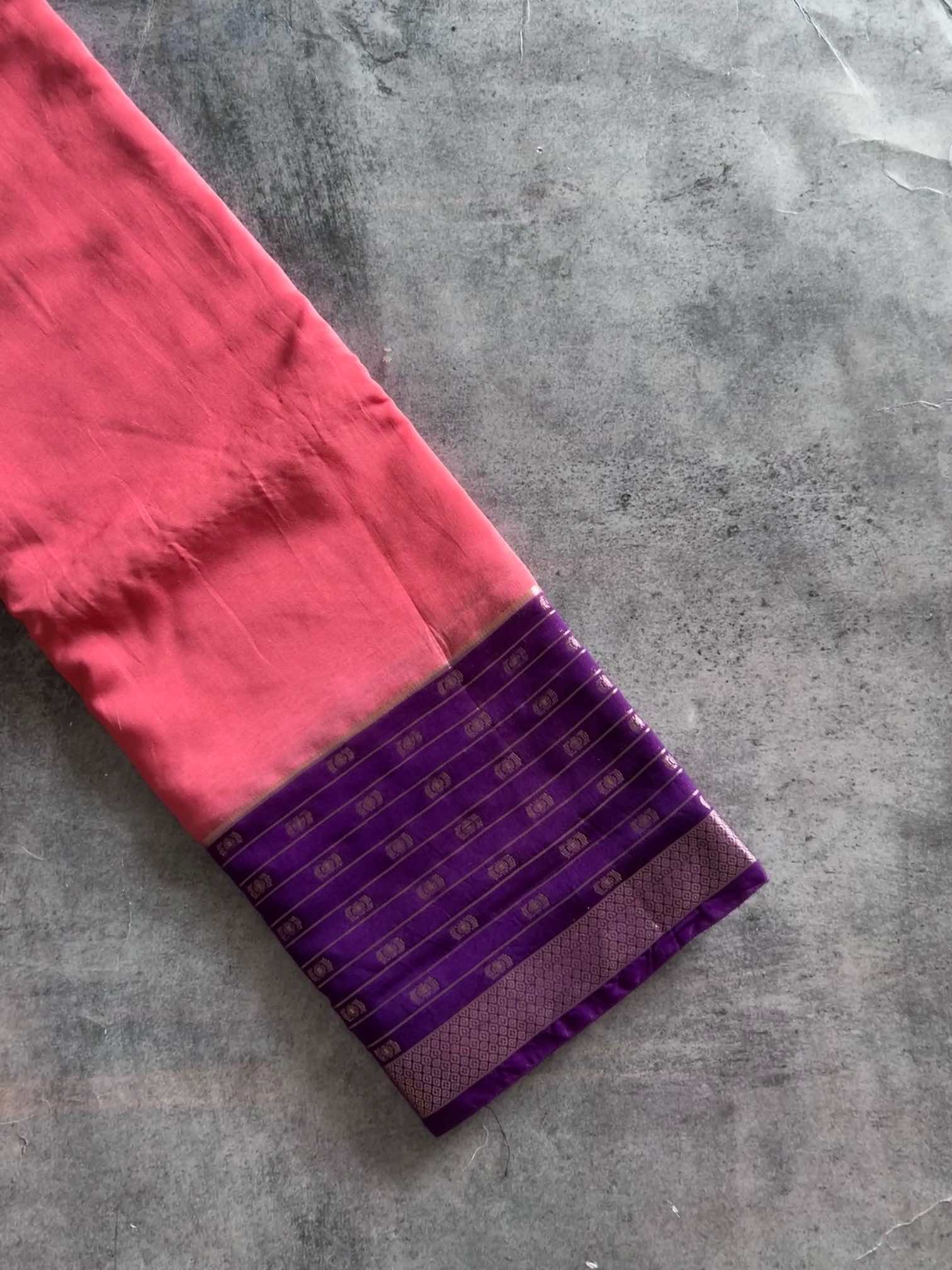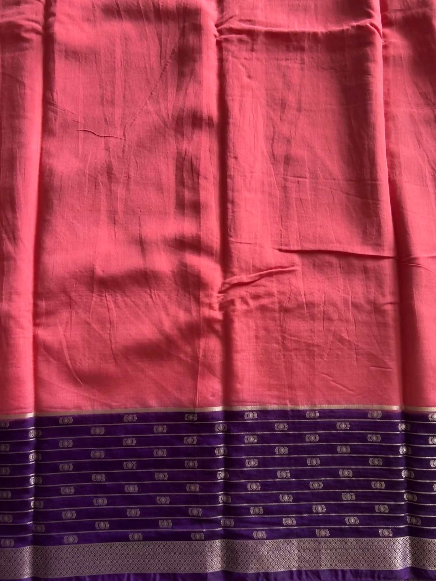 The soft, fluid texture of dola silk drapes with effortless grace, catching light in a gentle, elegant sheen. The zari border adds a regal touch—rich, intricate, and timeless—while the zari lines running through the body create a subtle shimmer, giving the saree an ethereal charm.Together, these elements make the saree both sophisticated and captivating, perfect for moments that call for quiet grandeur and classic beauty.