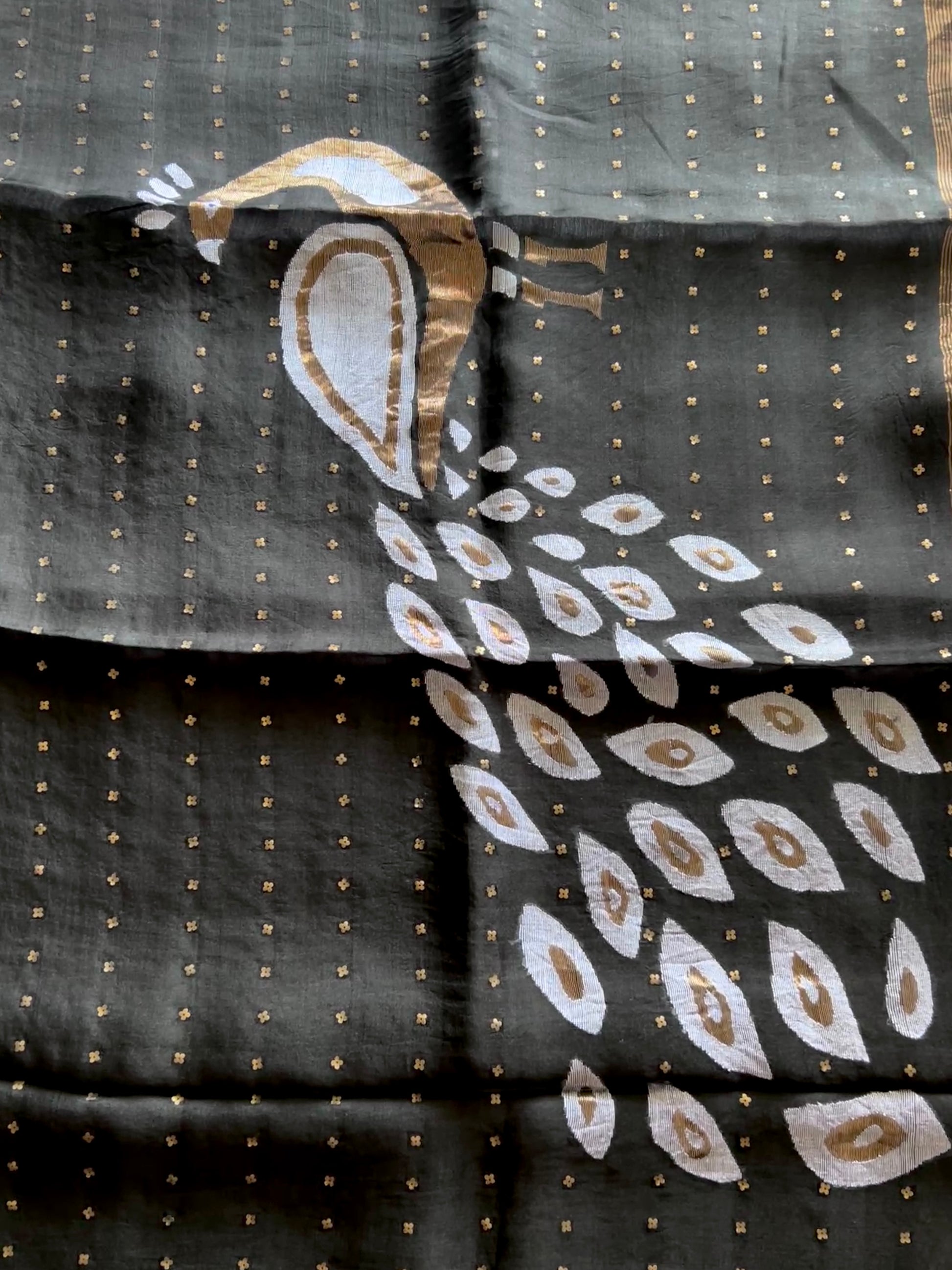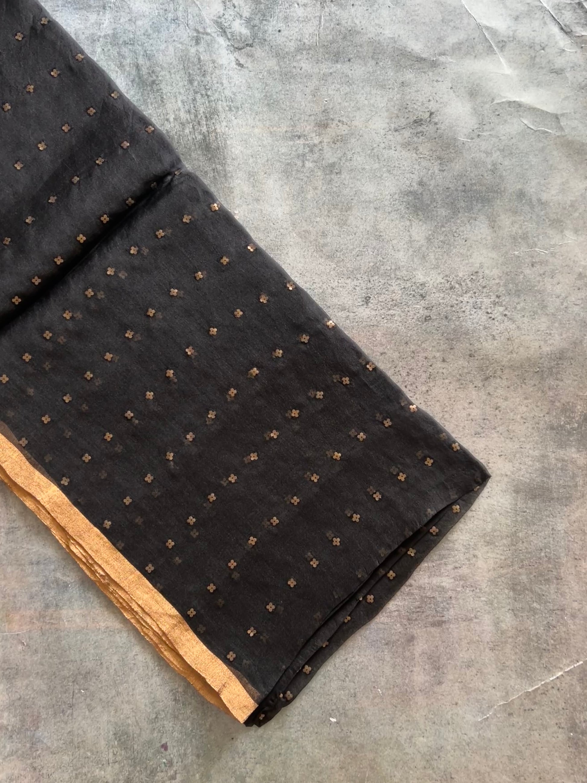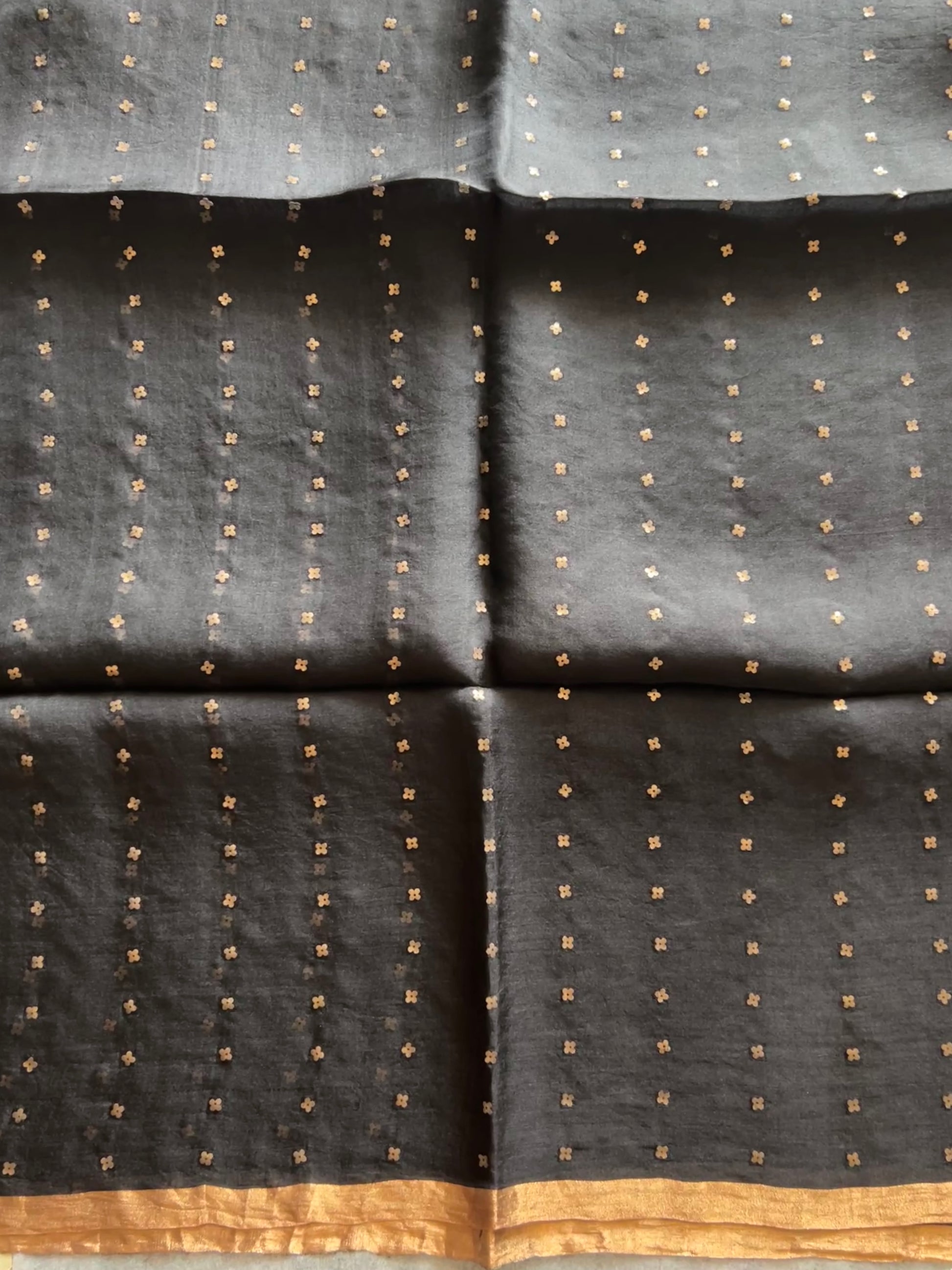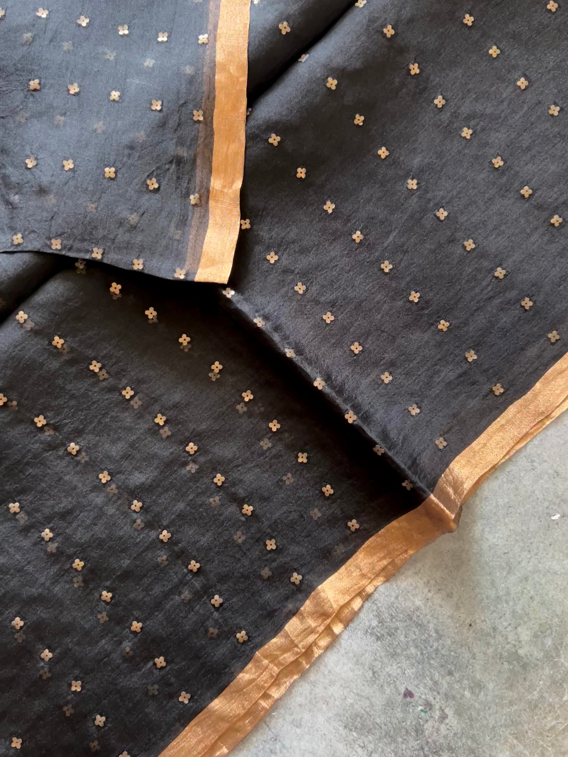 The delicate sheen of the Muslin silk fabric, renowned for its softness and lightweight nature, drapes gracefully, enhancing the wearer's beauty. The sequence work adds a subtle yet mesmerizing sparkle, elevating the saree with a modern touch of glamour while maintaining its traditional essence. The Jamdani Pallu , handwoven with intricate patterns, brings an exquisite cultural richness to the saree. The combination of these elements creates a perfect balance between luxurious opulence and traditional artistry, making the saree a stunning choice for weddings, festivals, or any special occasion.