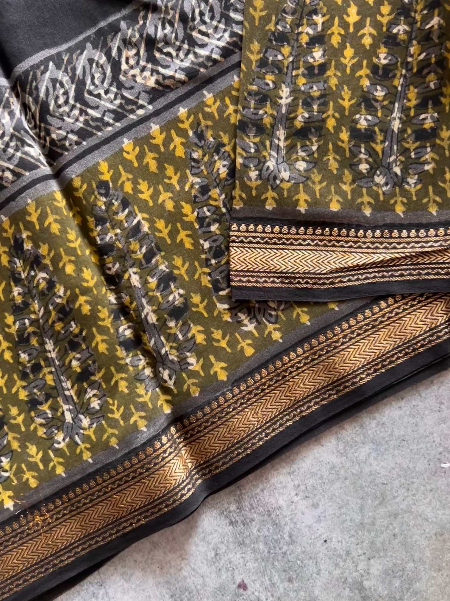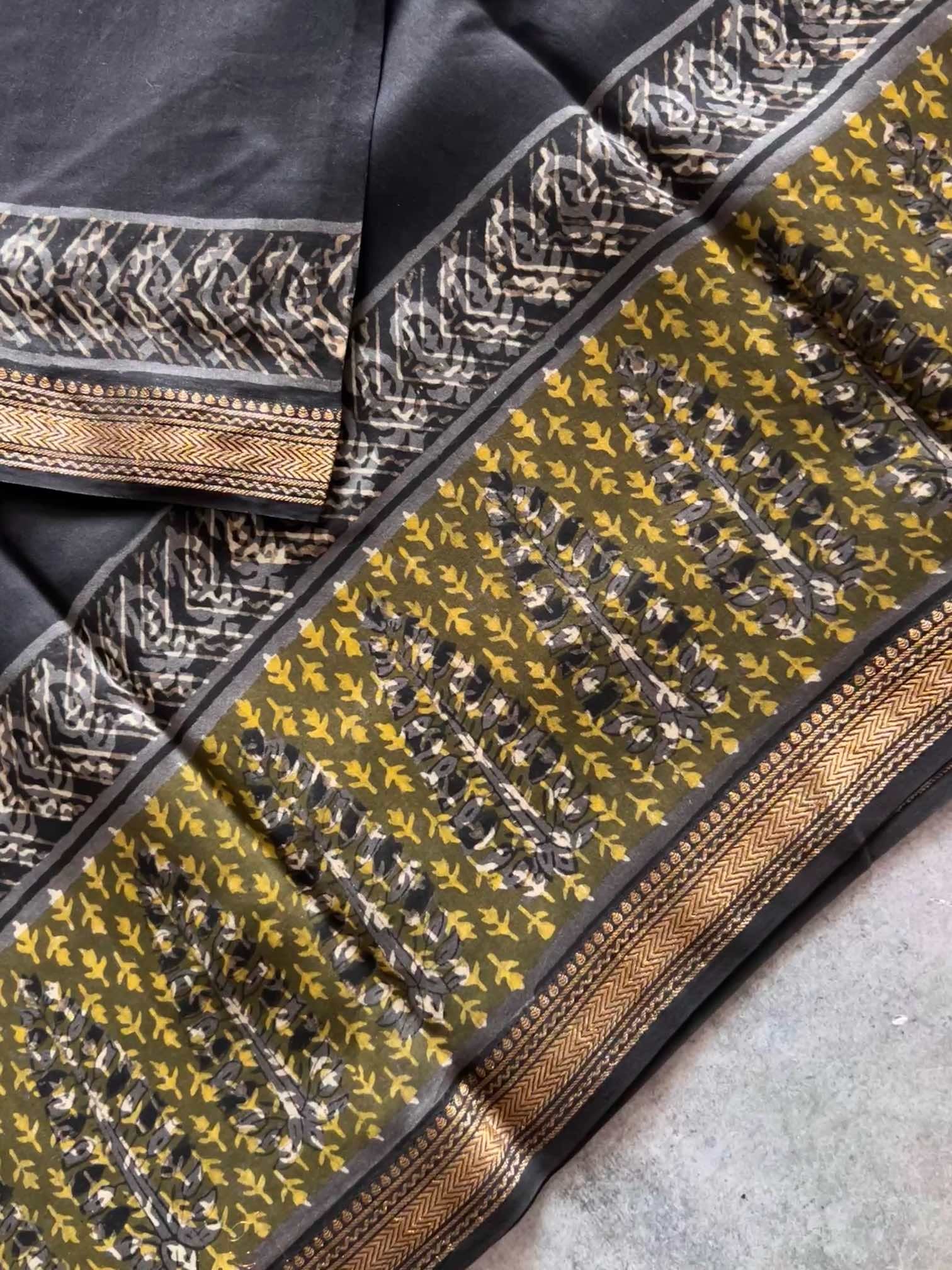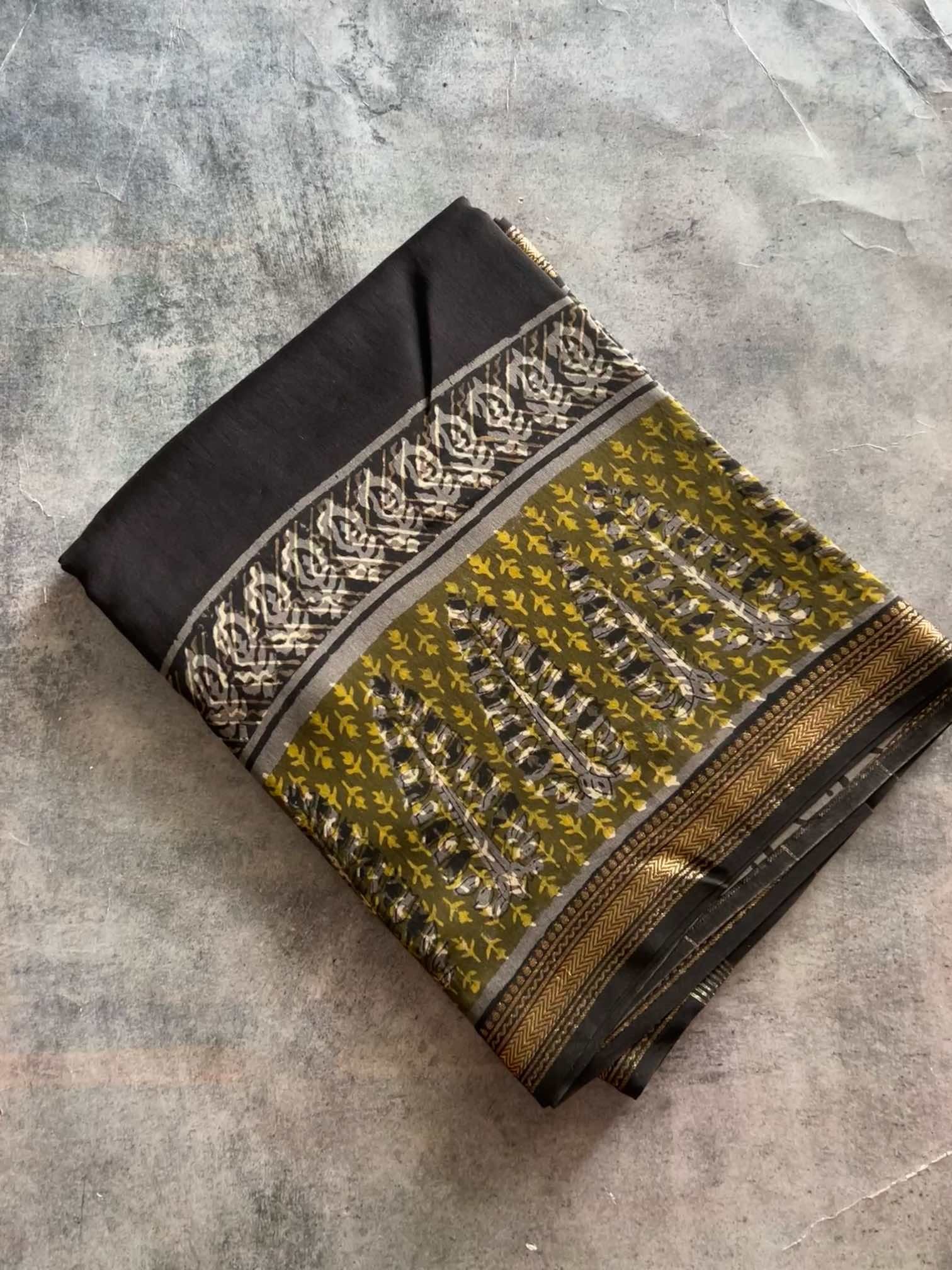 Elegant and classy handblock printed maheswari cotton silk saree. These exquisite pieces are very comfortable to wear and feels extremely soft and classy when draped.