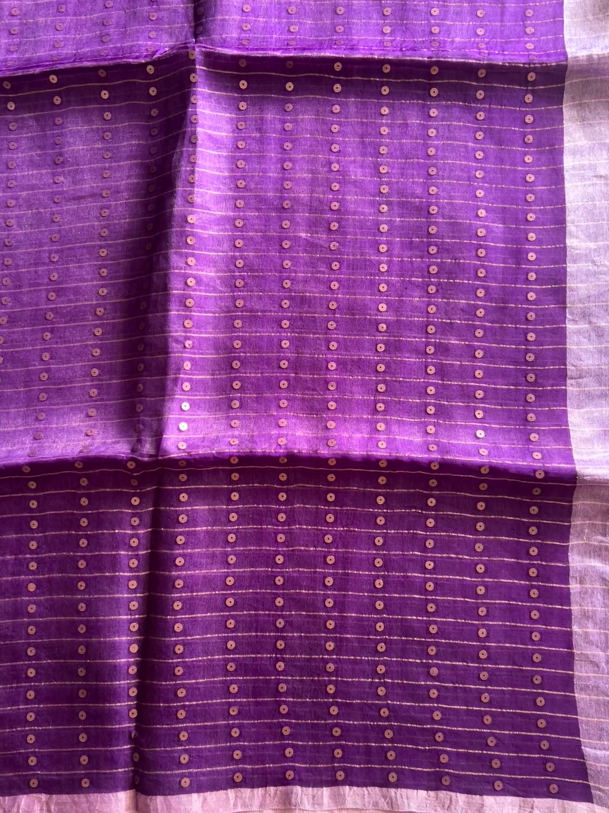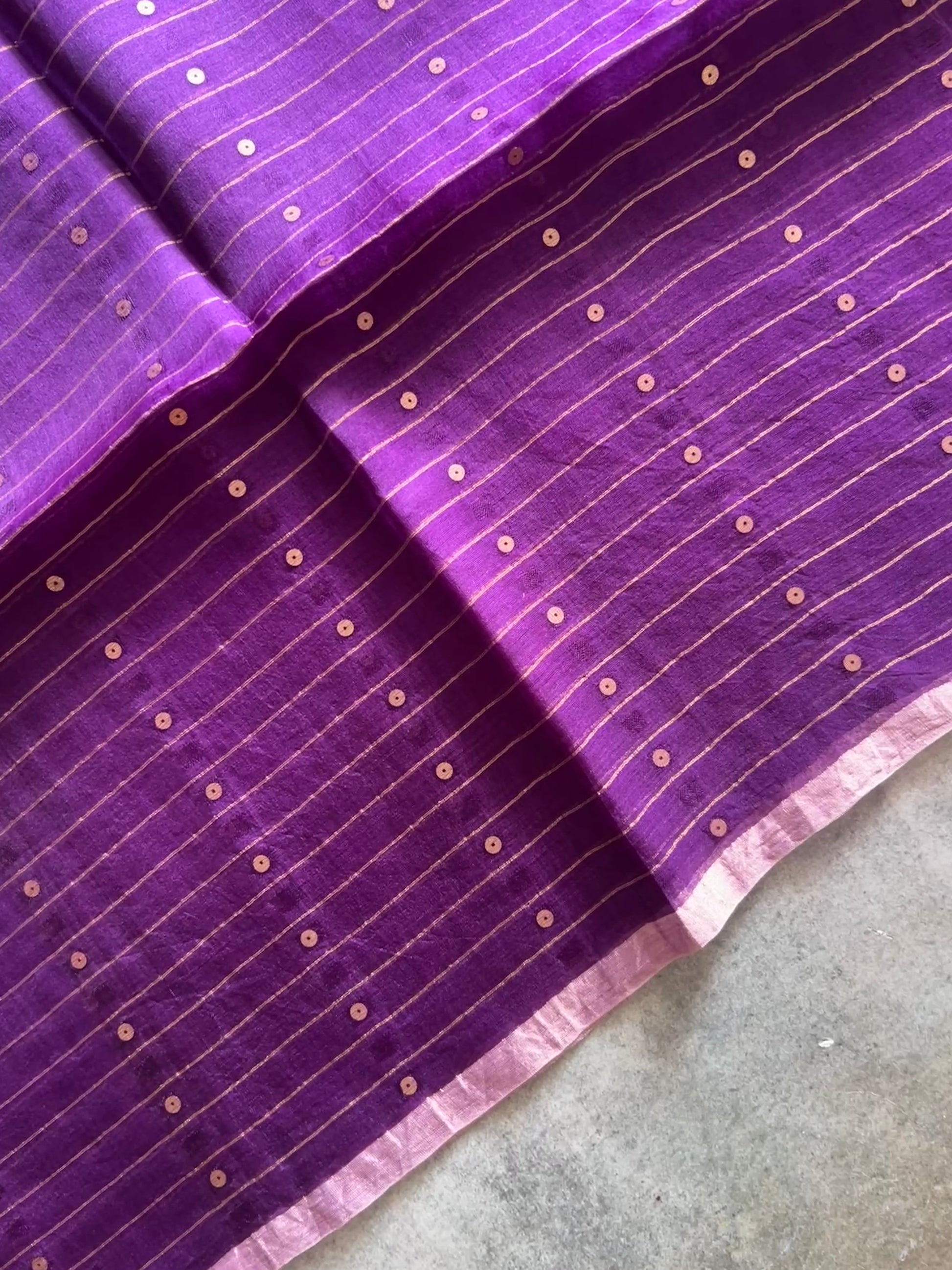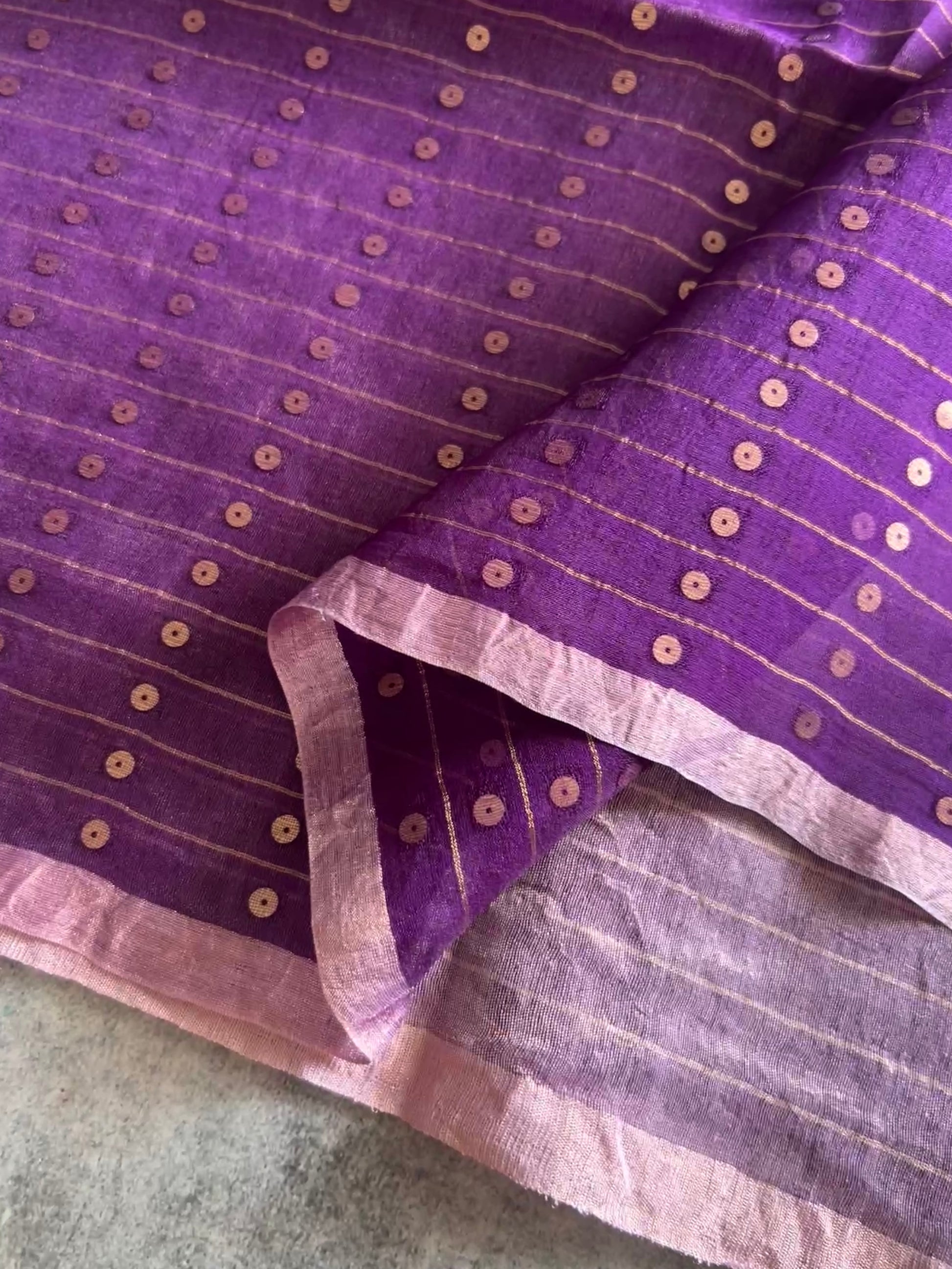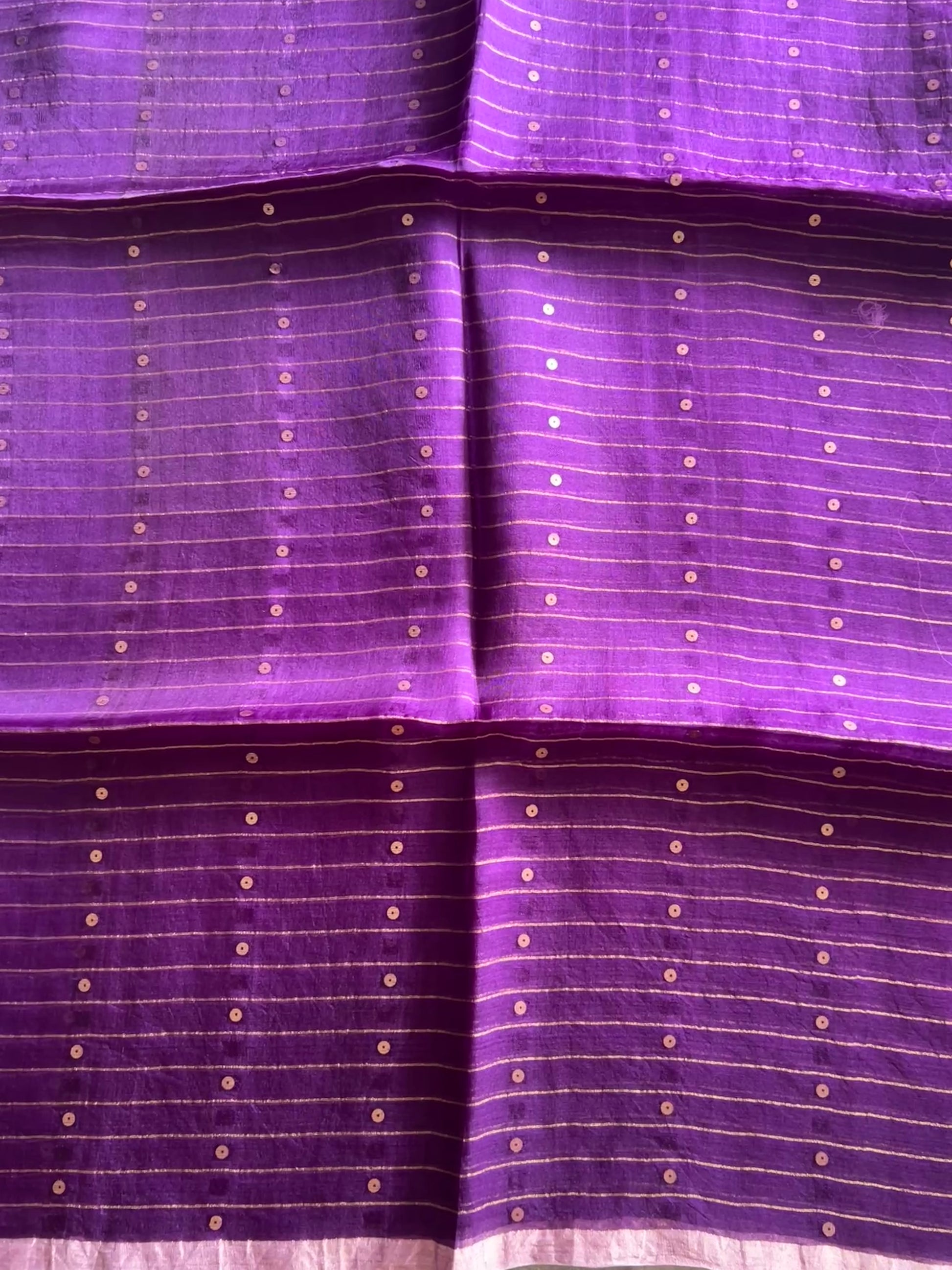 The muslin silk, known for its feather-light texture and smooth finish, drapes like a whisper, while the gini work—fine metallic detailing—adds a gentle sparkle throughout. With its subtle elegance and intricate craftsmanship, this saree captures the essence of understated luxury, making it perfect for both festive and formal occasions.