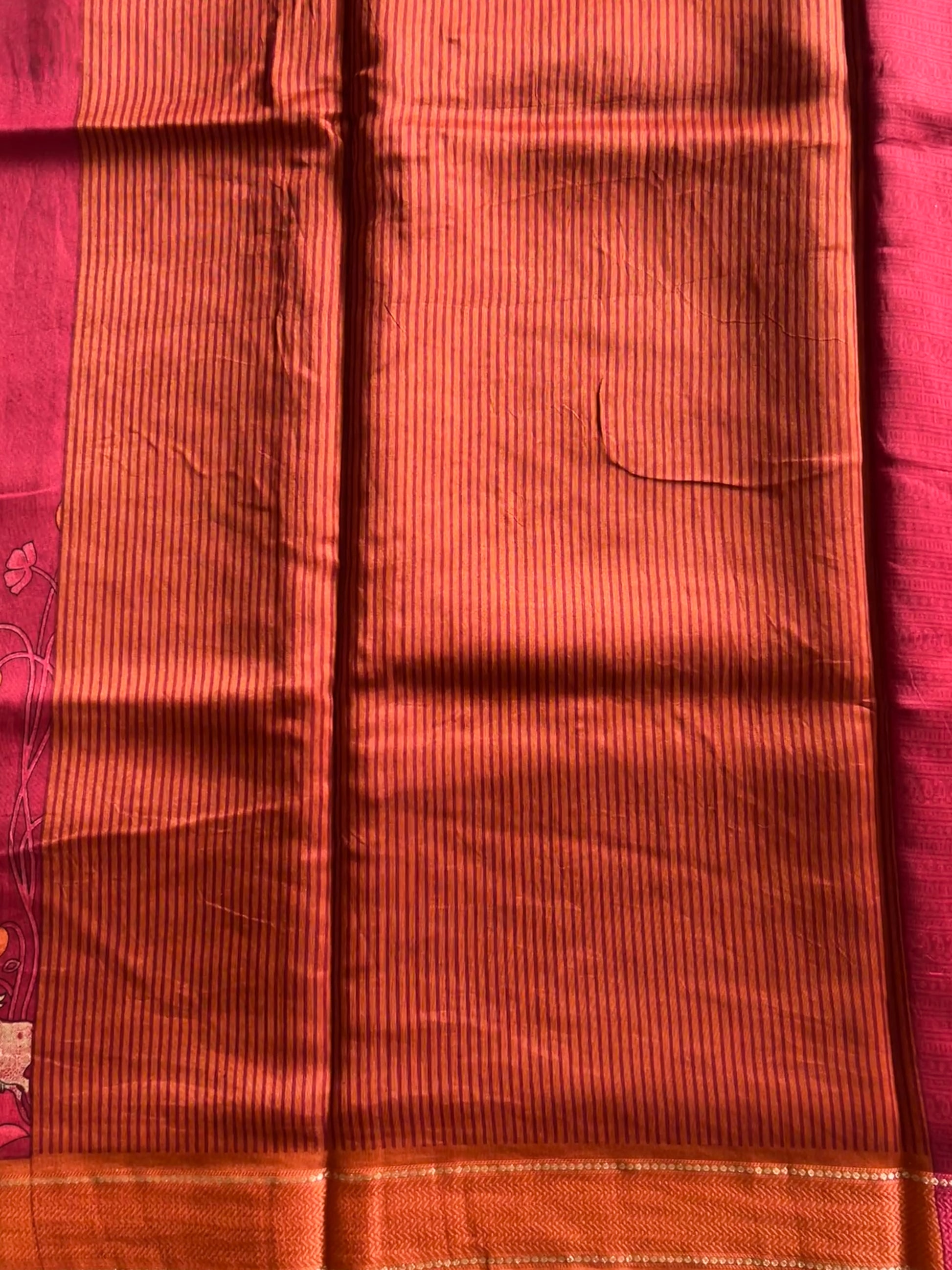 Chanderi butter silk epitomizes elegance and sophistication with its sheer, lightweight texture and natural sheen. This luxurious fabric seamlessly blends traditional charm with contemporary style, making it a timeless choice for any wardrobe. Its breathability and comfort further enhance its appeal, making Chanderi butter silk not just a fabric, but a work of art.