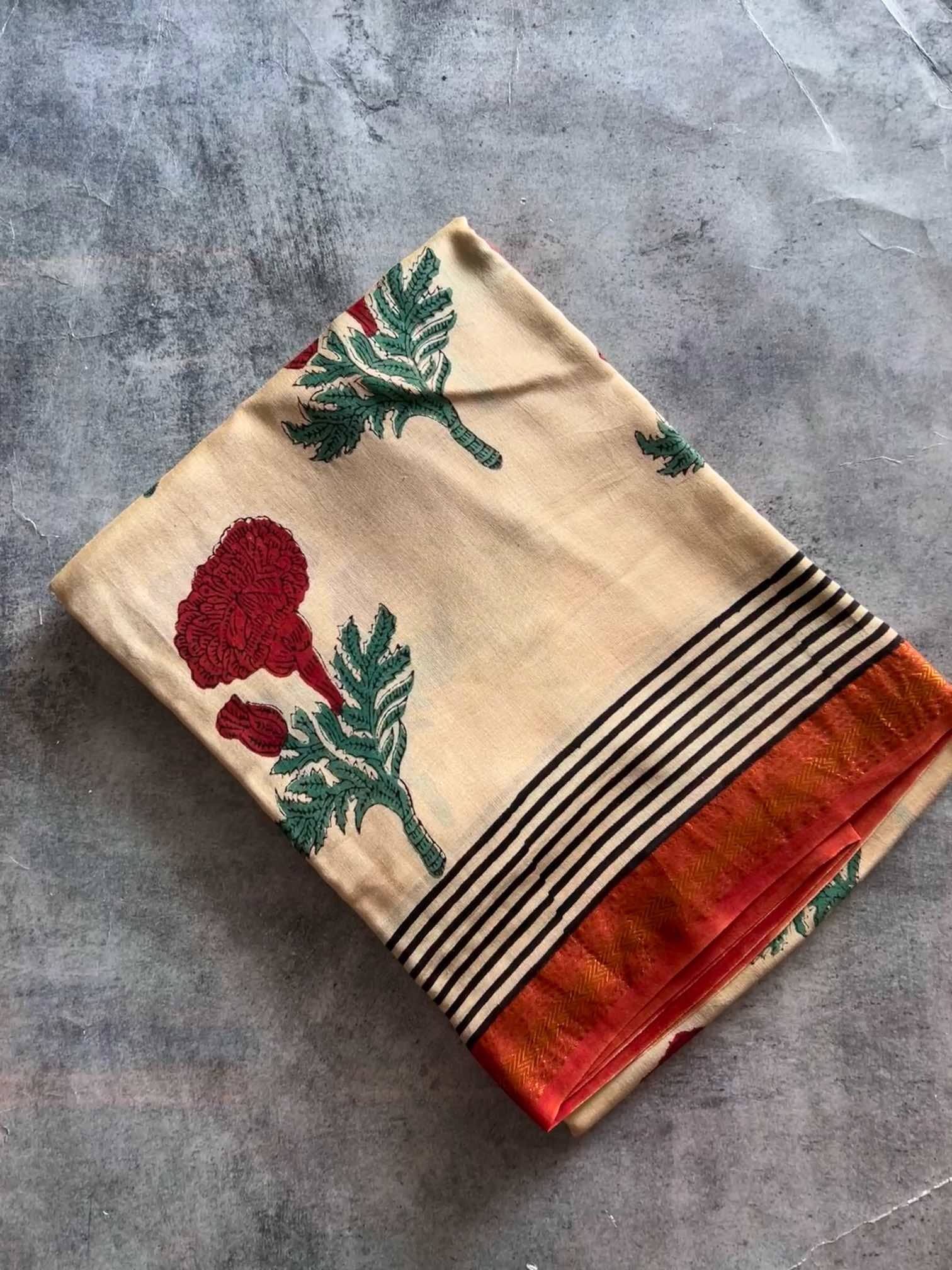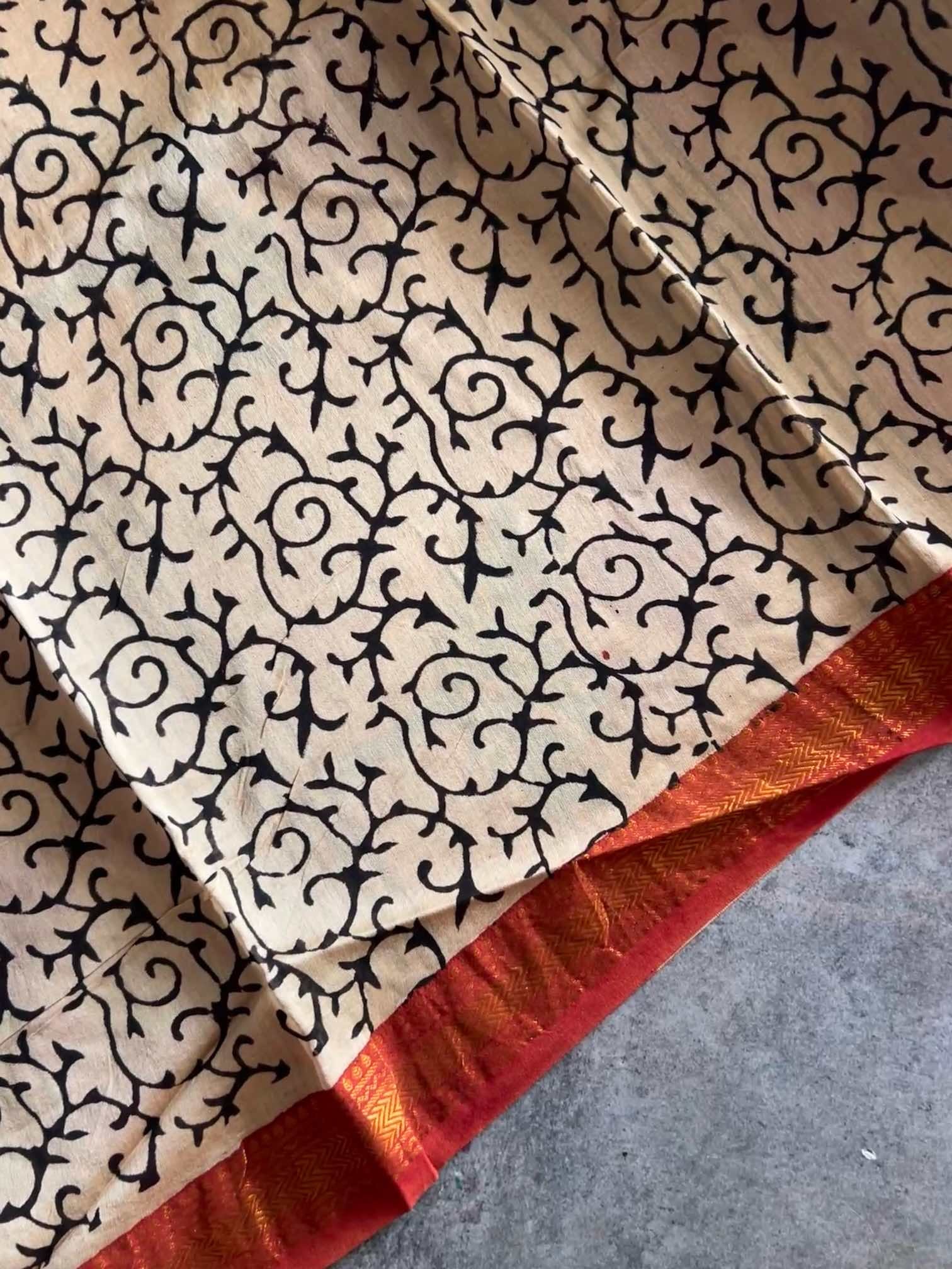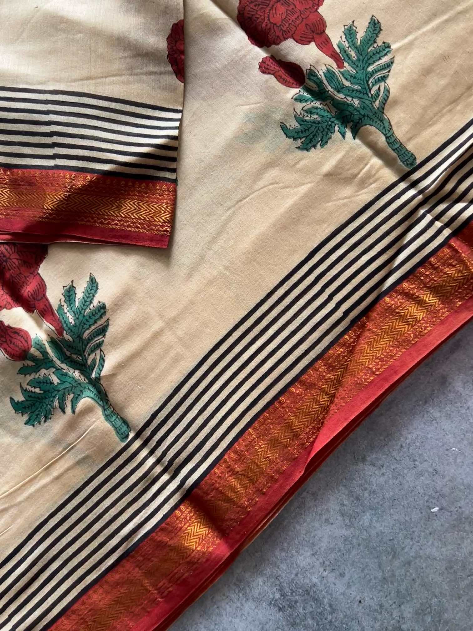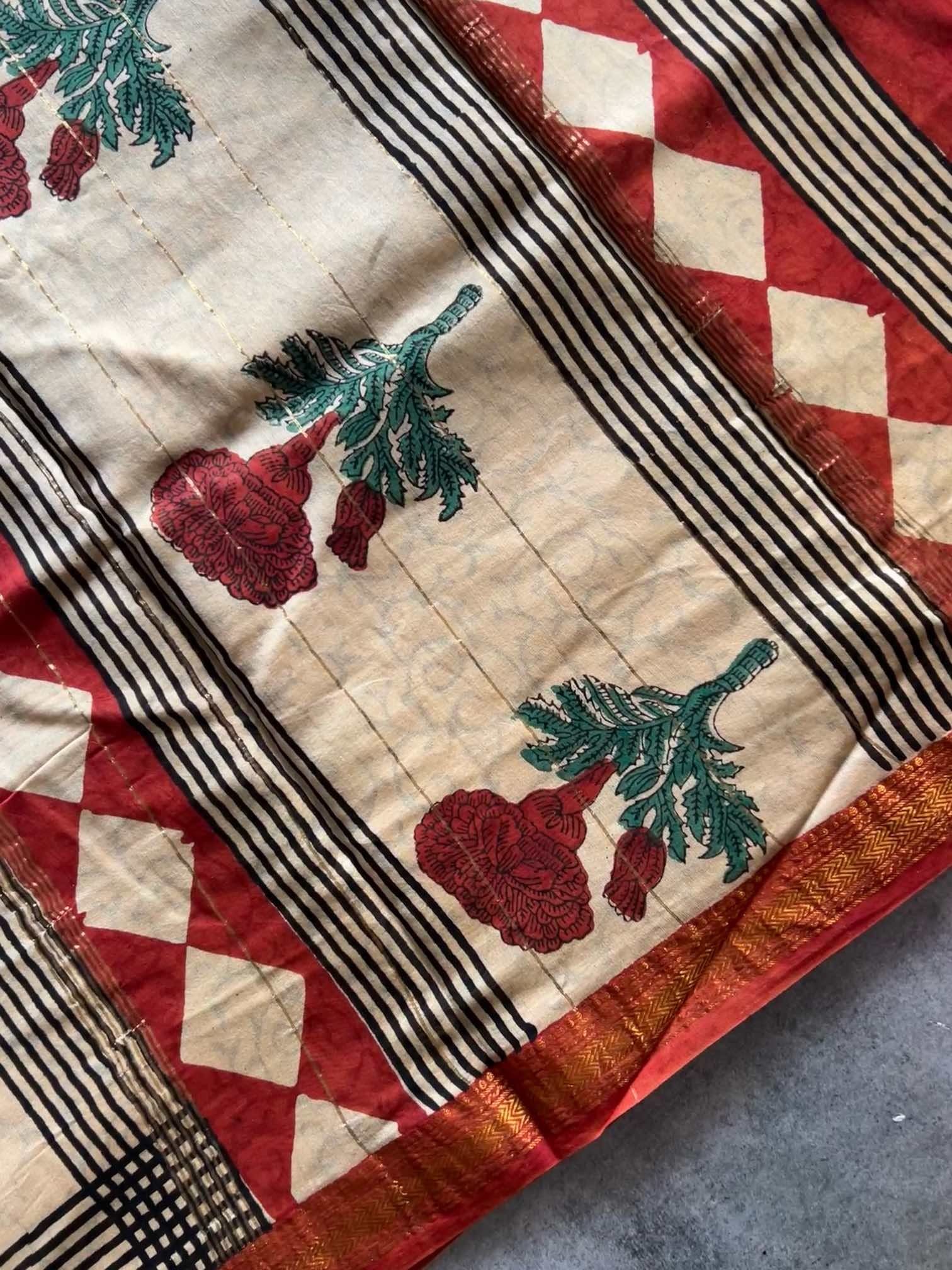 Elegant and classy handblock printed maheswari cotton silk saree. These exquisite pieces are very comfortable to wear and feels extremely soft and classy when draped.