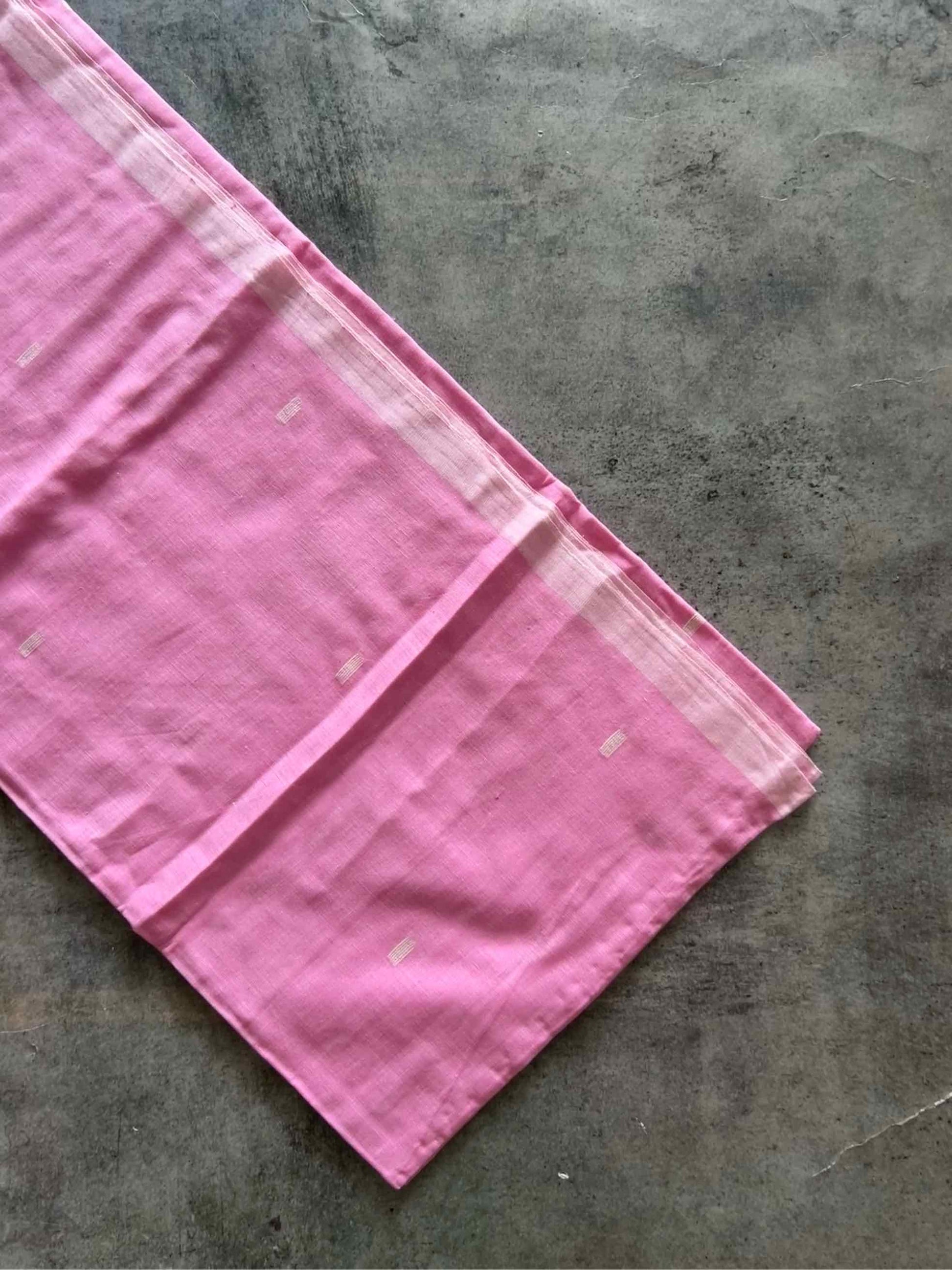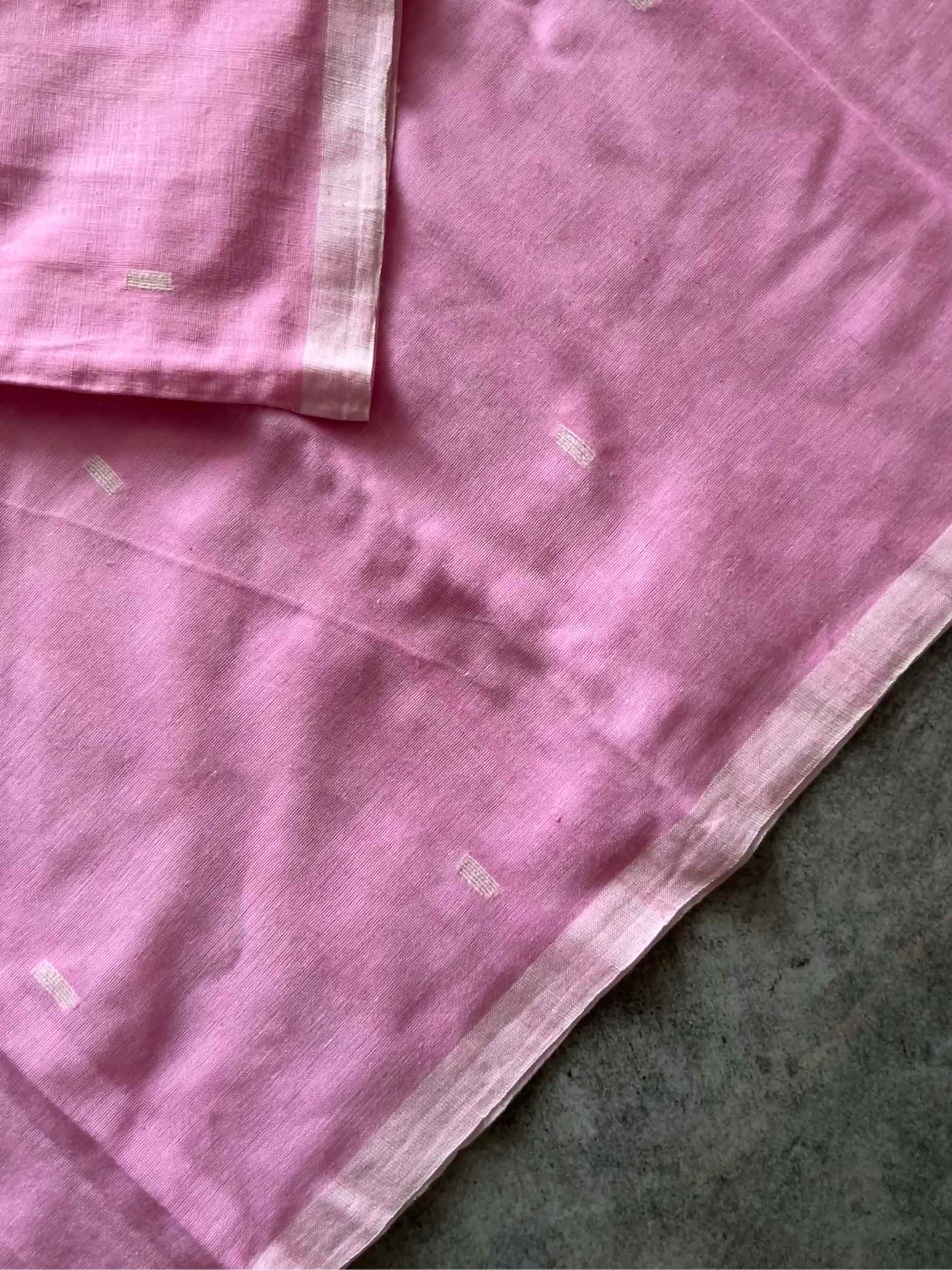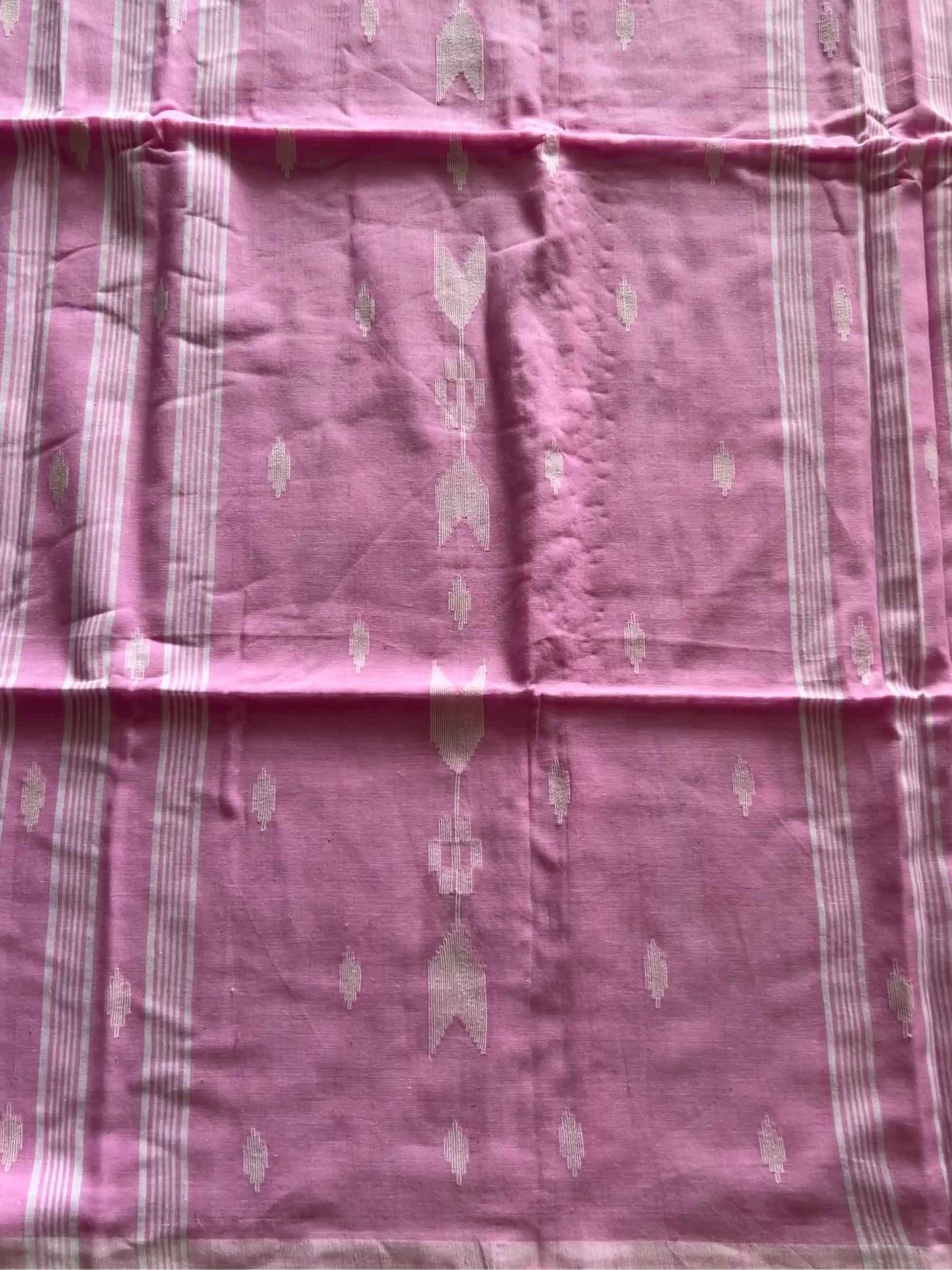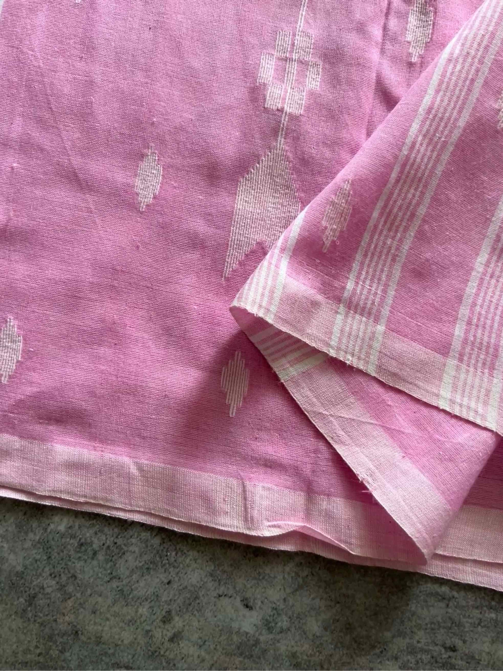 Mul cotton, often called “mulmul,” is known for its feather-light, breathable texture that drapes effortlessly. When paired with the intricate artistry of the Jamdhani weave, it becomes a canvas of heritage and elegance. The delicate, handwoven motifs – often floral or geometric – appear to float on the fabric, telling stories of tradition with every thread.