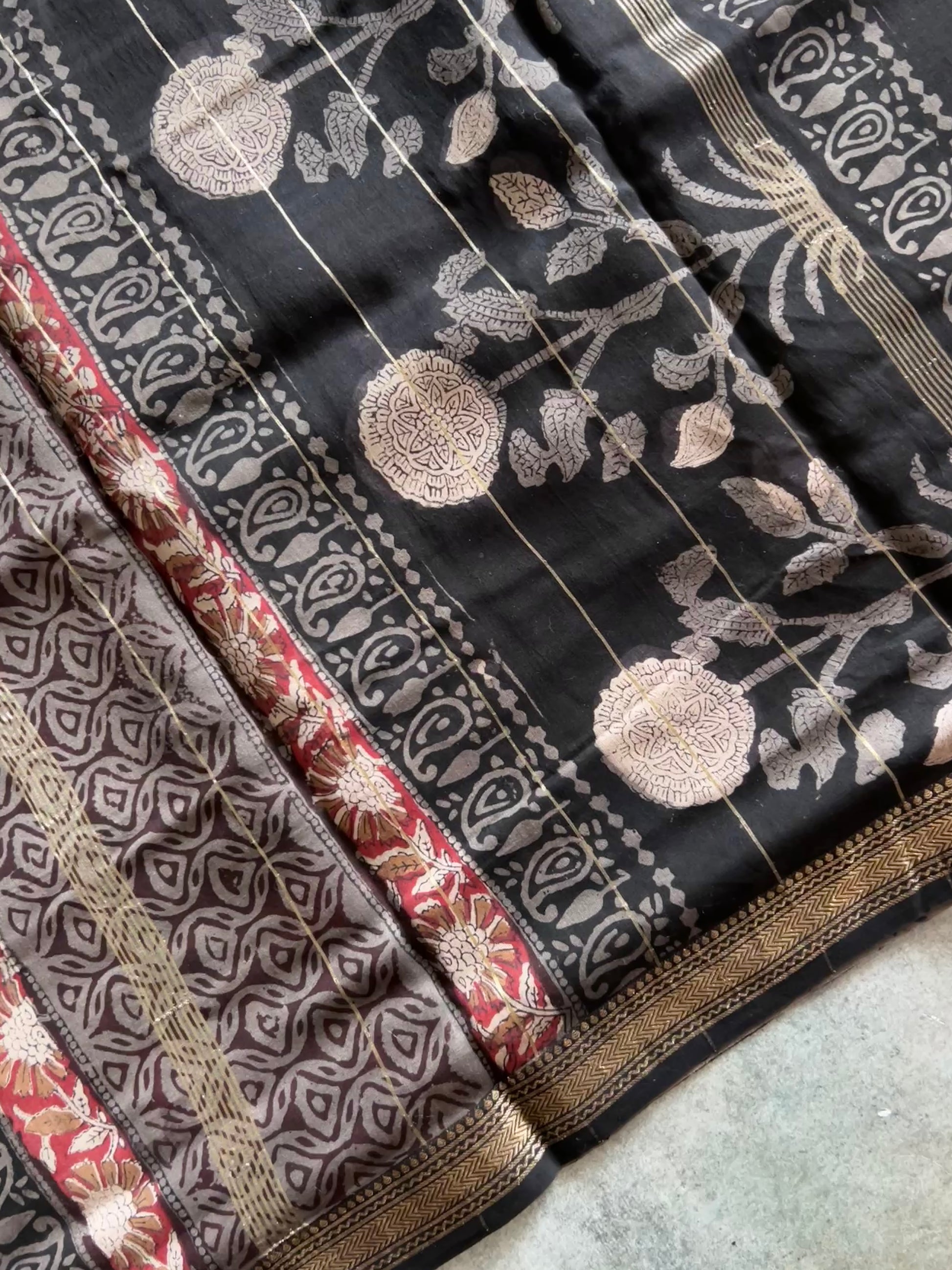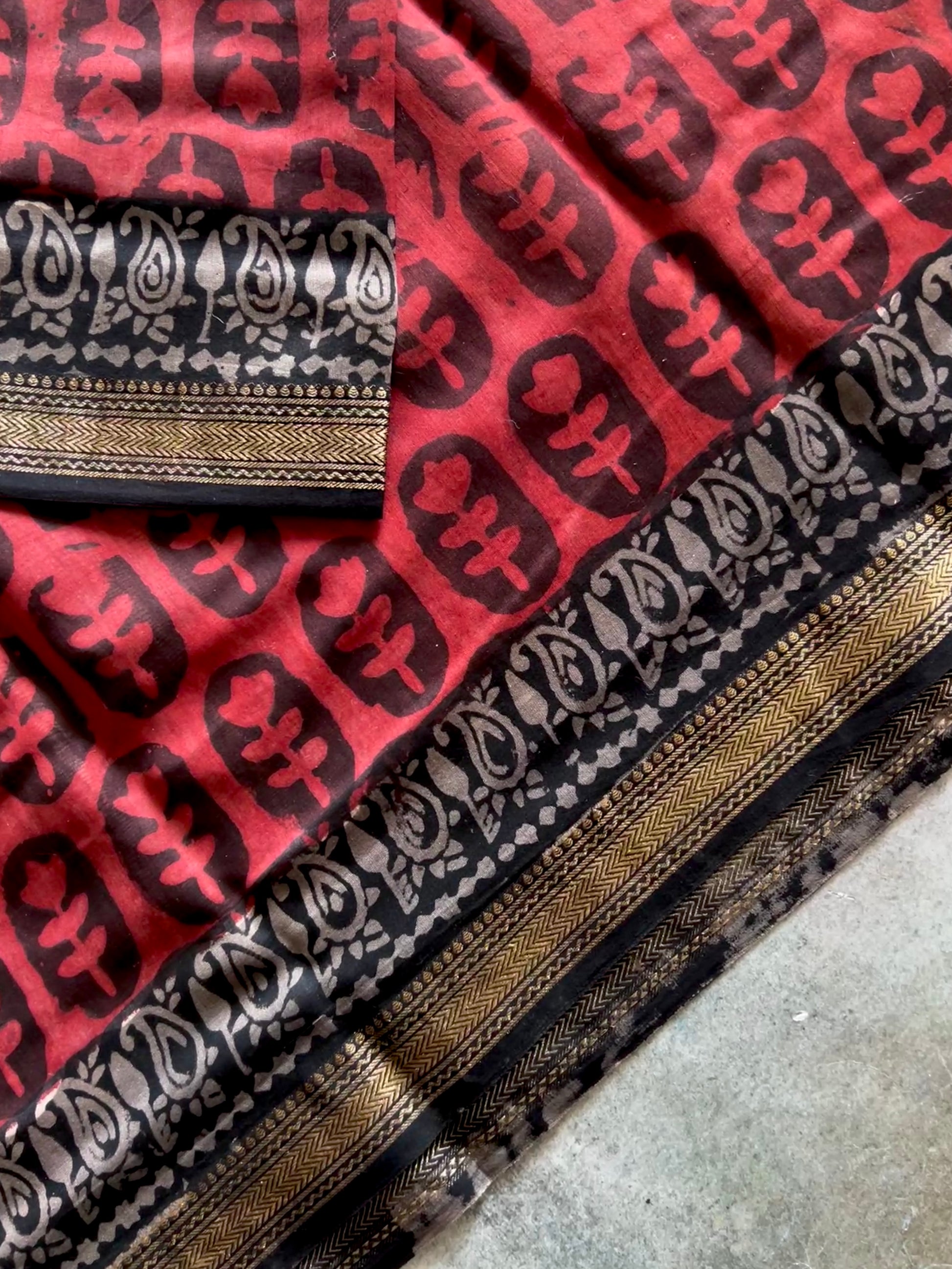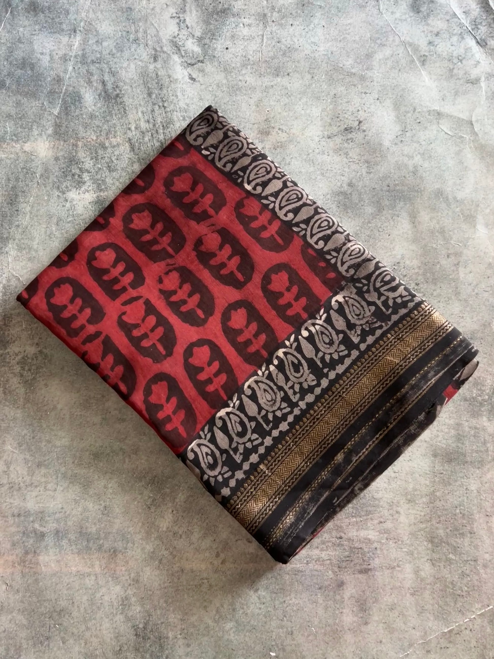 Elegant and classy handblock printed maheswari cotton silk saree. These exquisite pieces are very comfortable to wear and feels extremely soft and classy when draped.