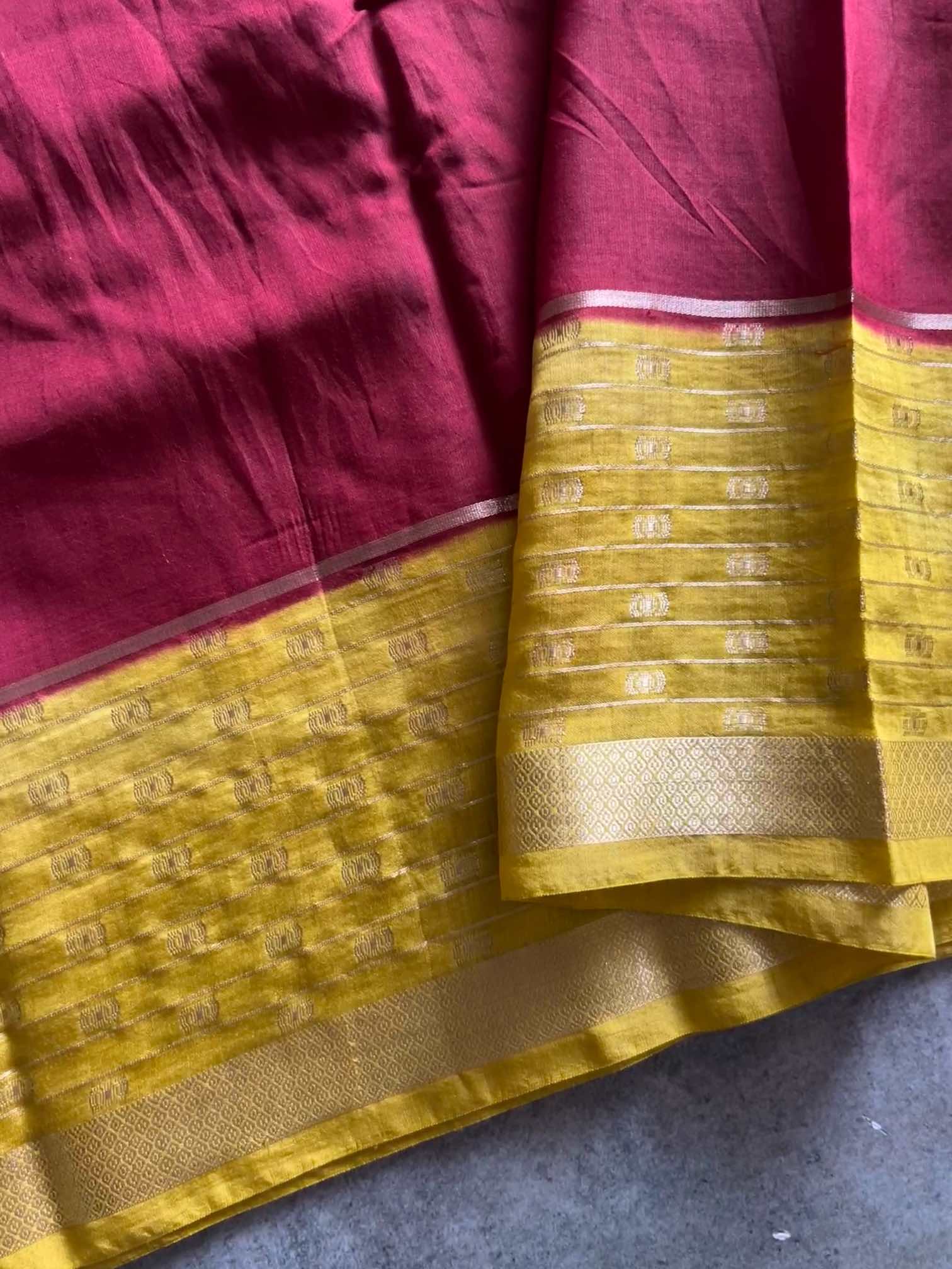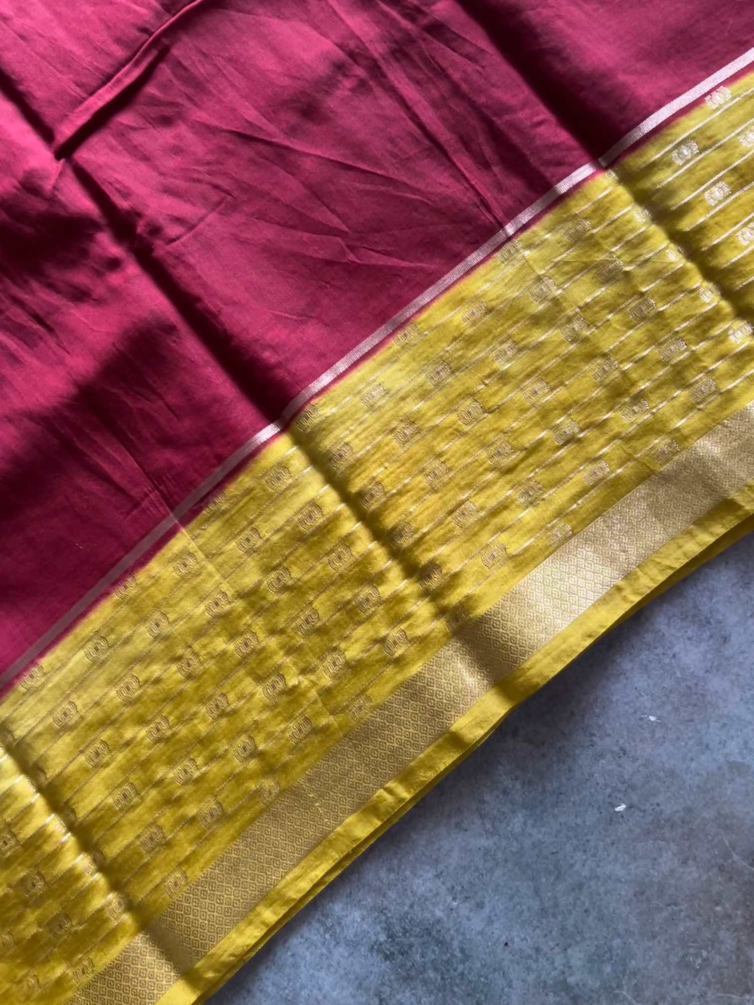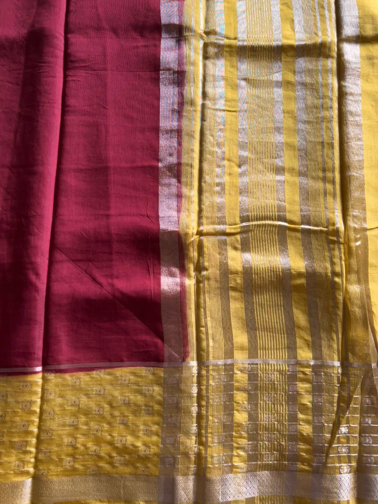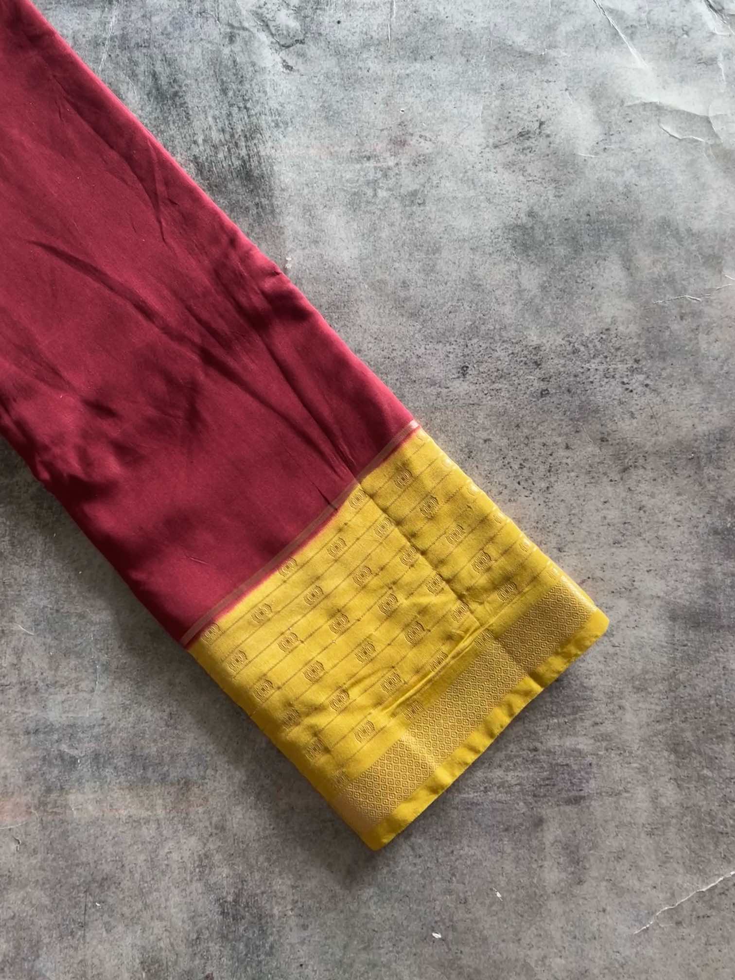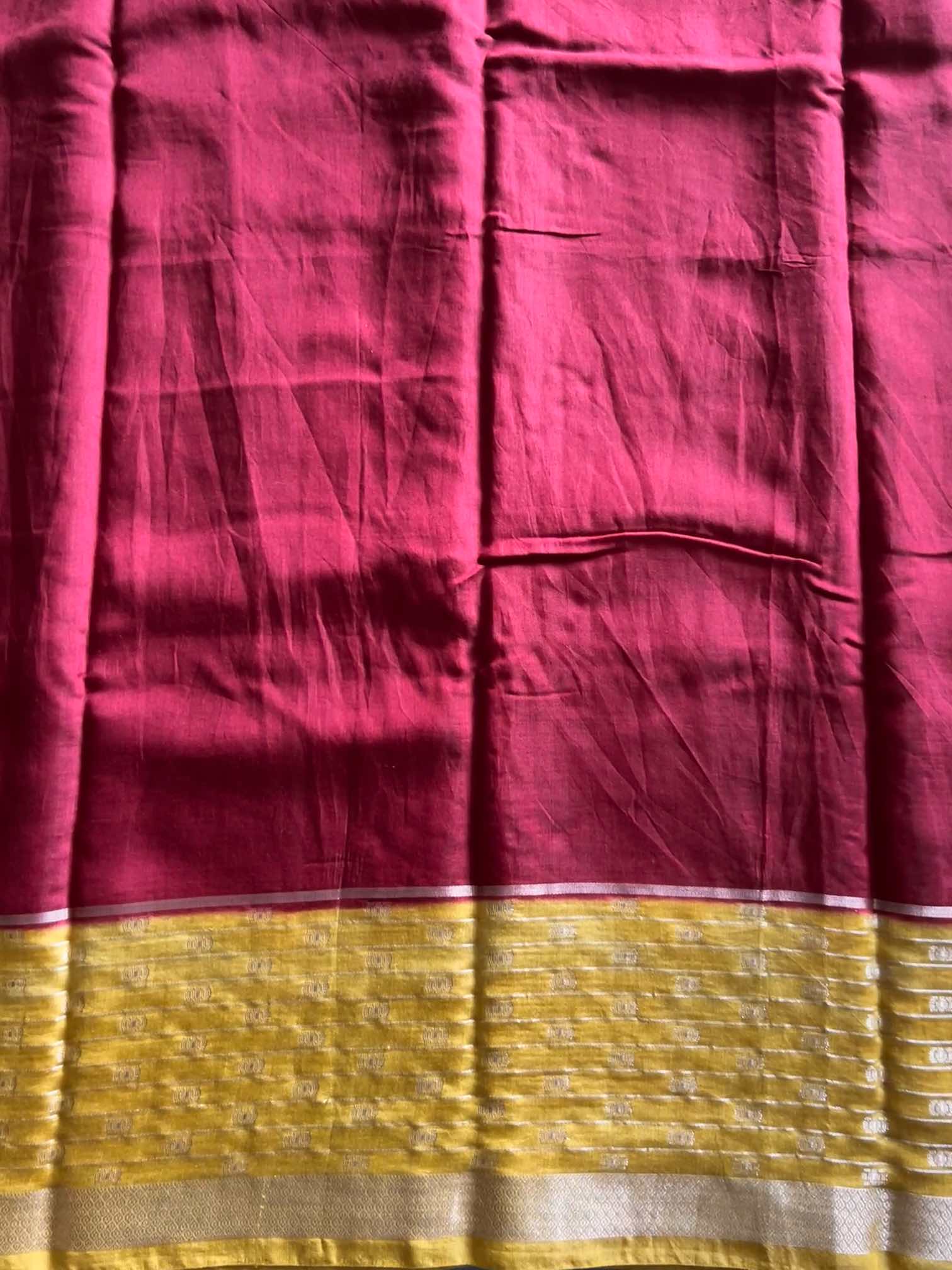 The soft, fluid texture of dola silk drapes with effortless grace, catching light in a gentle, elegant sheen. The zari border adds a regal touch—rich, intricate, and timeless—while the zari lines running through the body create a subtle shimmer, giving the saree an ethereal charm.Together, these elements make the saree both sophisticated and captivating, perfect for moments that call for quiet grandeur and classic beauty.