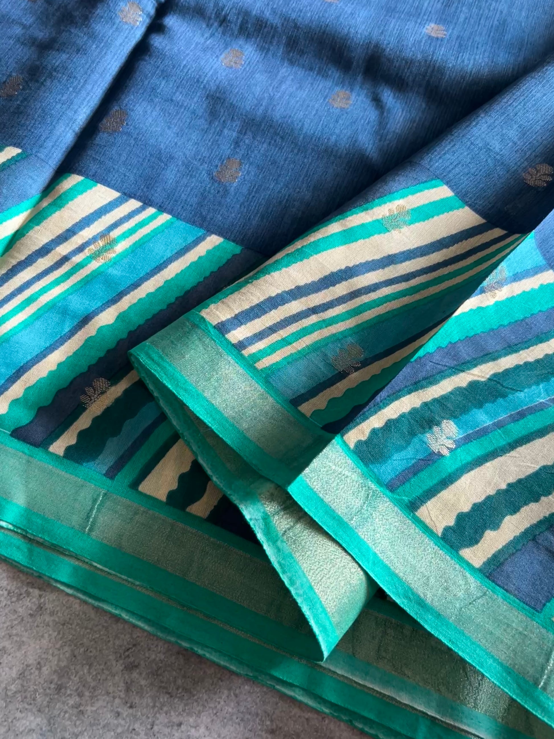 Chanderi butter silk epitomizes elegance and sophistication with its sheer, lightweight texture and natural sheen. This luxurious fabric seamlessly blends traditional charm with contemporary style, making it a timeless choice for any wardrobe. Its breathability and comfort further enhance its appeal, making Chanderi butter silk not just a fabric, but a work of art.