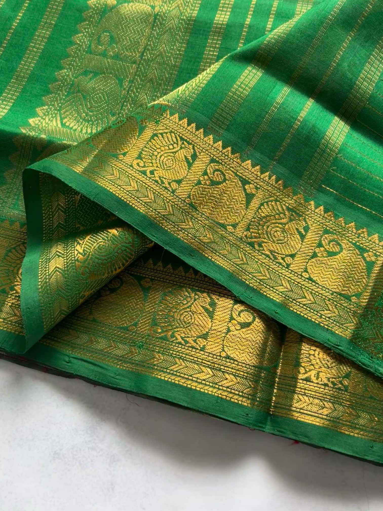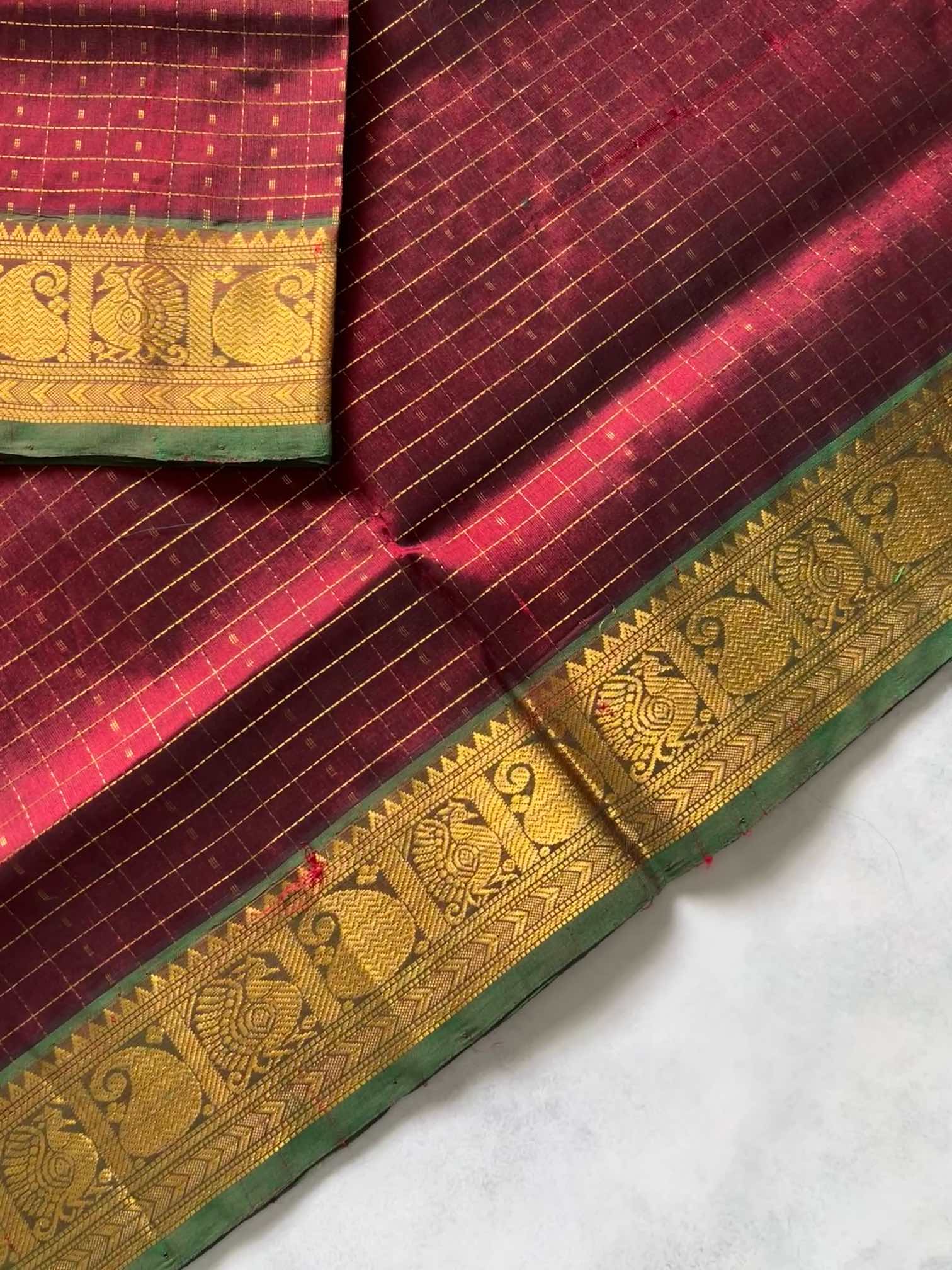 Known for their unique lightweight and breathable quality, the Kanchi silk cotton sarees are soft, comfortable, easy to carry and wrinkle-free. The fabric glistens because of its fine quality. The subtle shine of this saree makes it a distinctive ethnic wear especially in parties and traditional occasions.