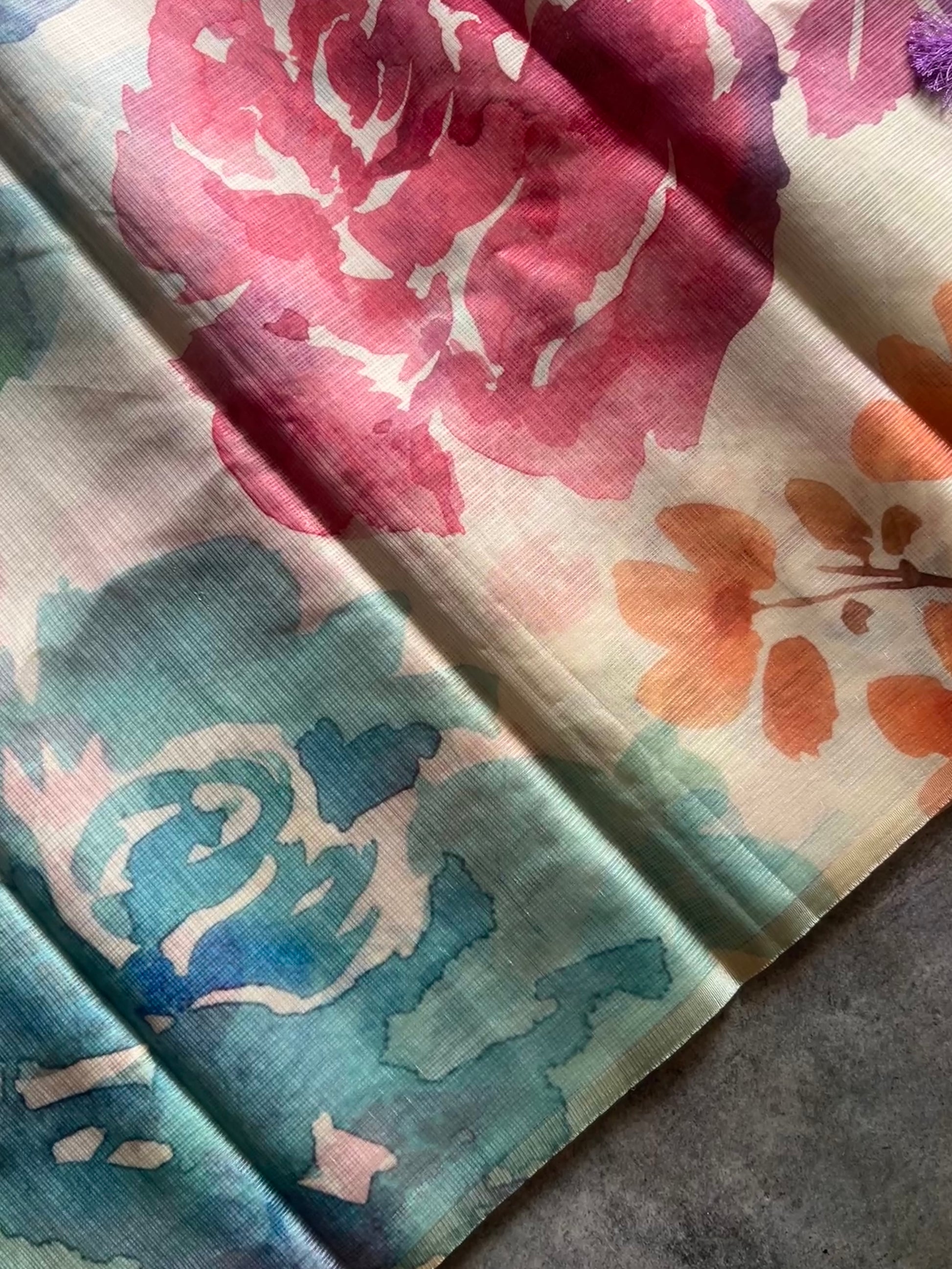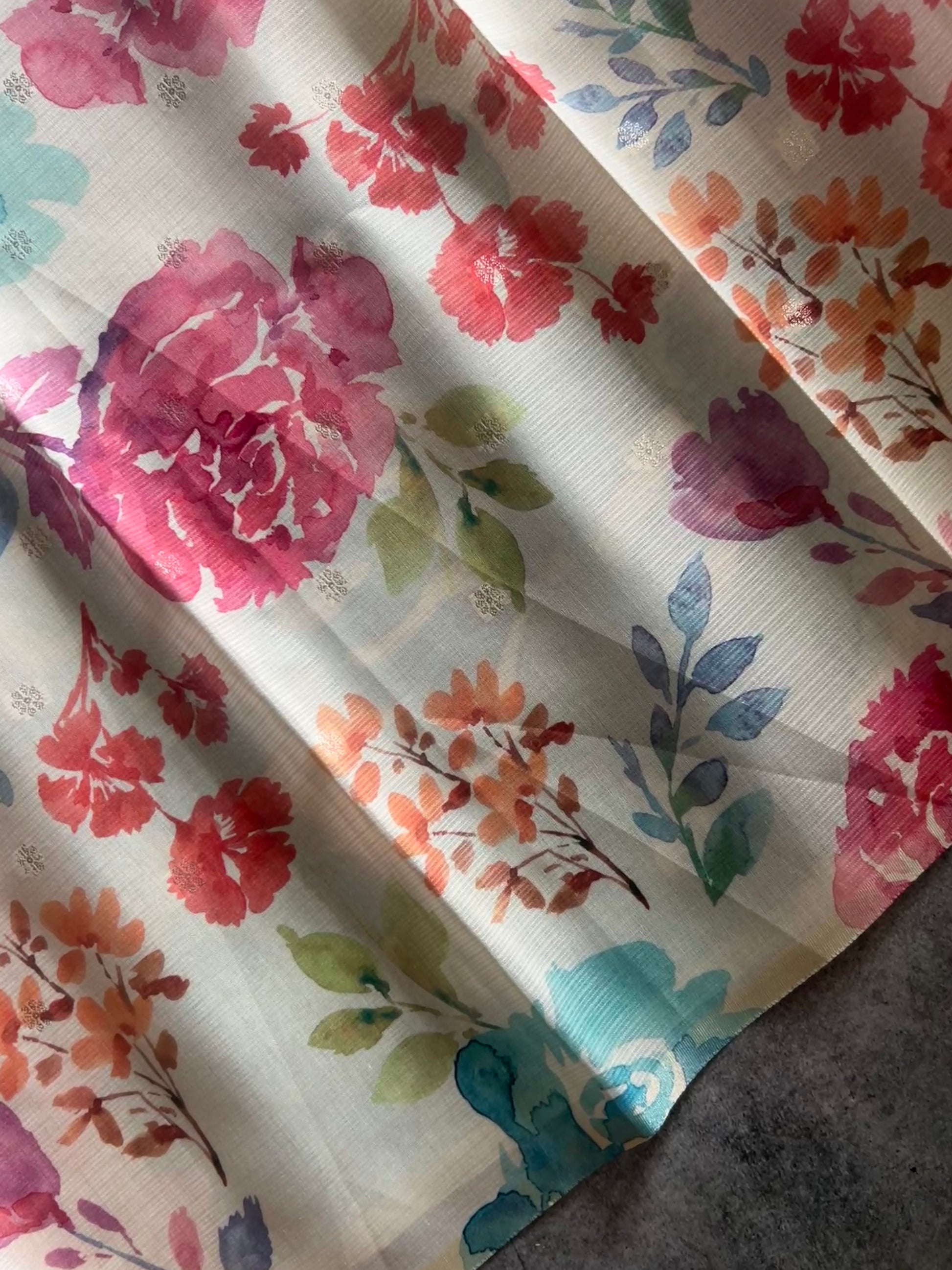 Zari Kota sarees are a timeless blend of elegance and tradition. The intricate zari work, often in gold or silver, enhances the delicate, lightweight cotton fabric of the Kota weave, creating a sophisticated texture. Printed borders introduce modern motifs and colors, providing a contemporary flair to the classic weave. This fusion results in a versatile garment suitable for various occasions, from casual gatherings to festive celebrations, embodying both timeless tradition and modern sophistication.
