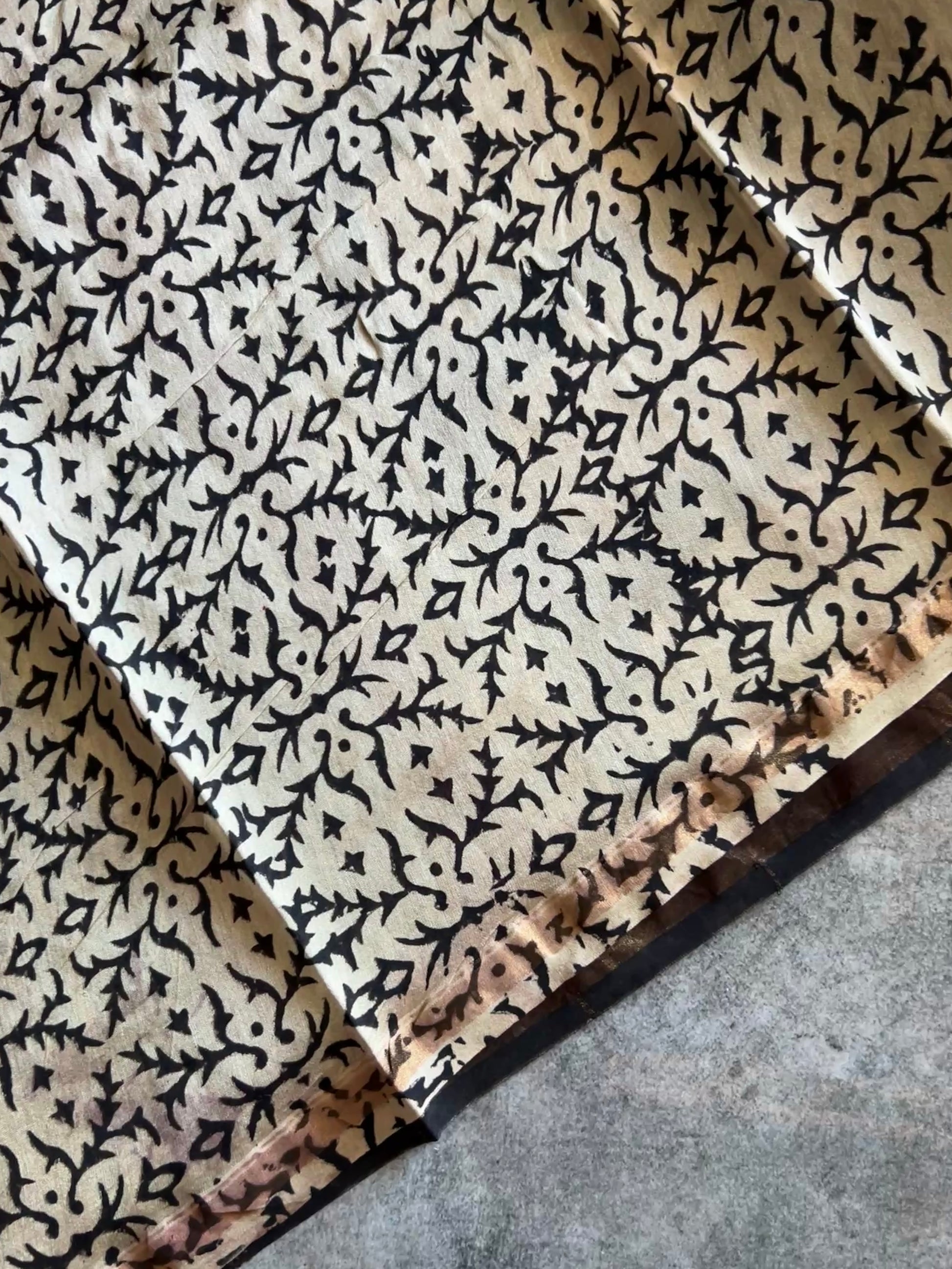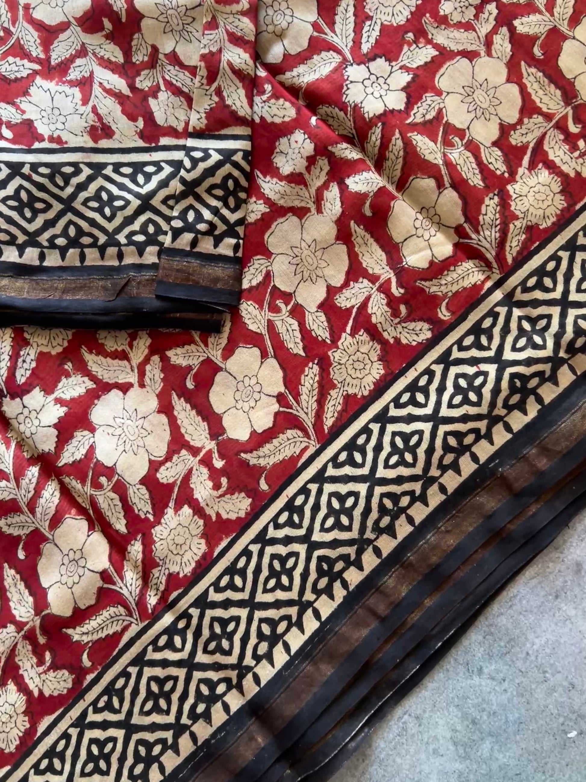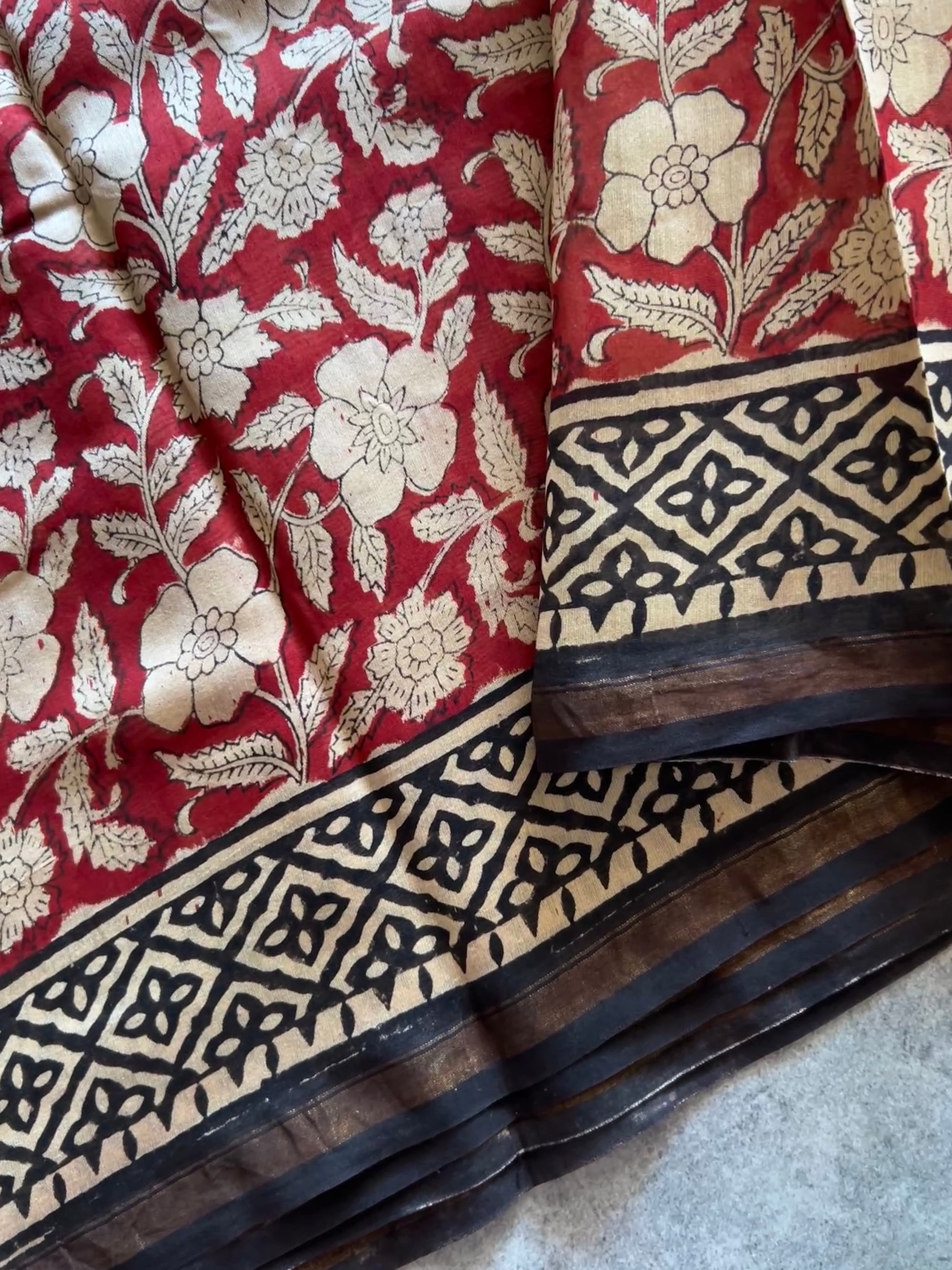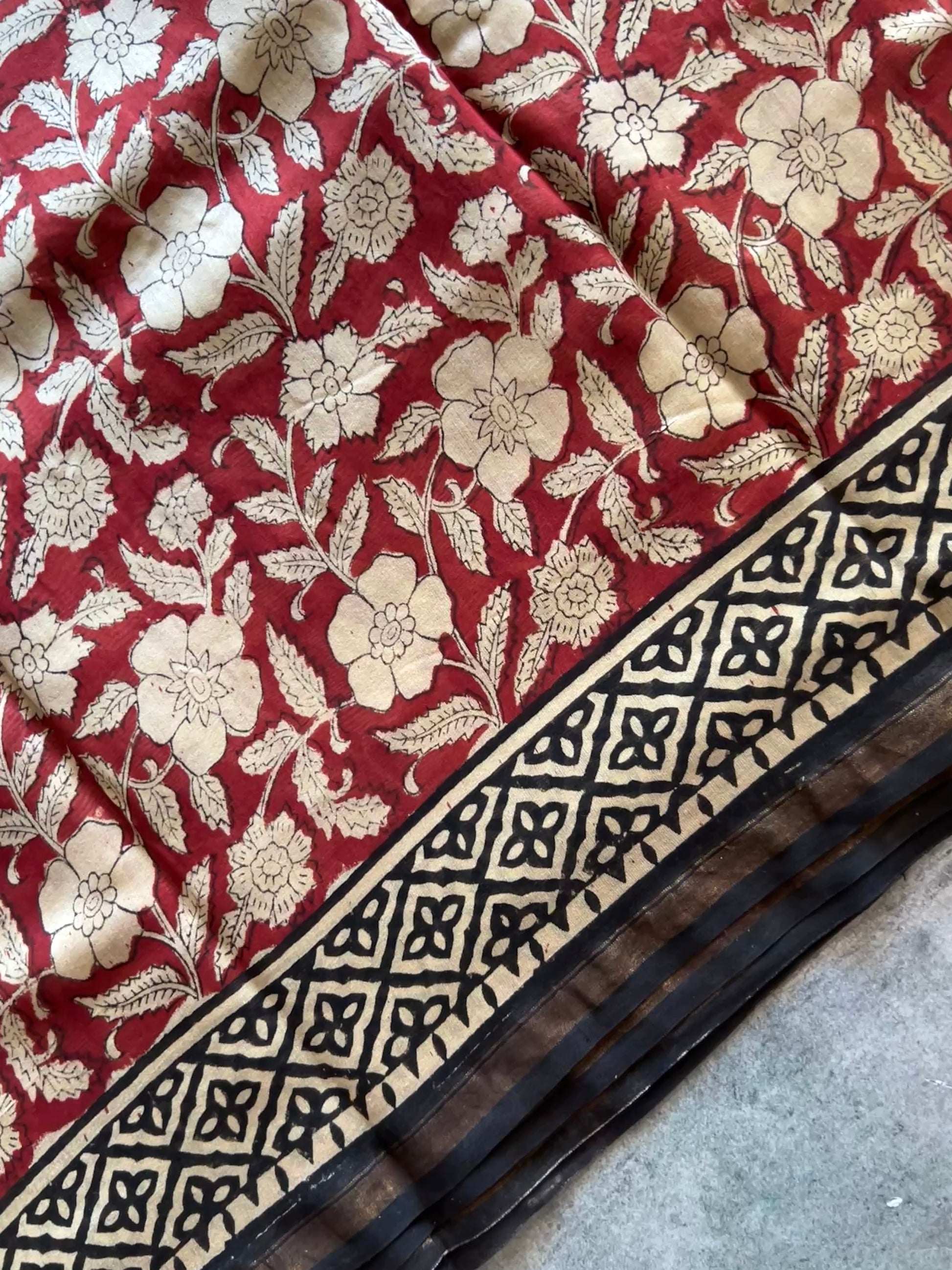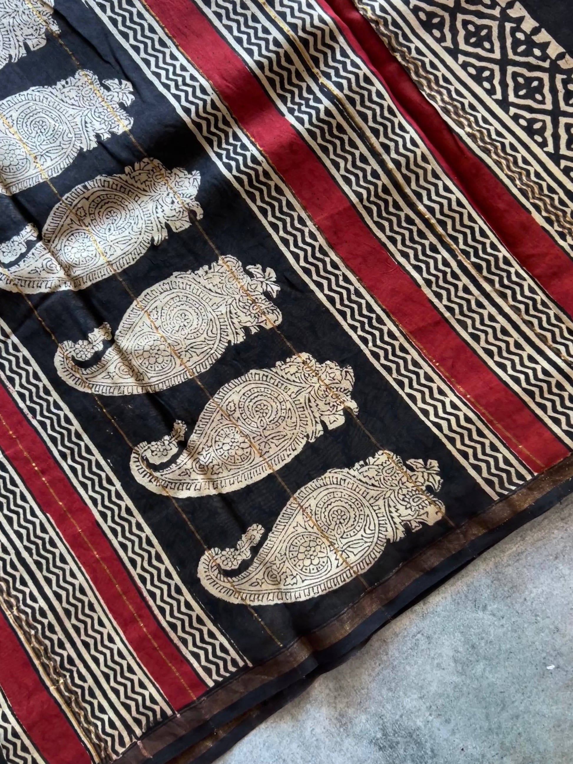 Elegant and classy hand block printed chandheri cotton silk saree. These exquisite pieces are very comfortable to wear and feel extremely soft and classy when draped.