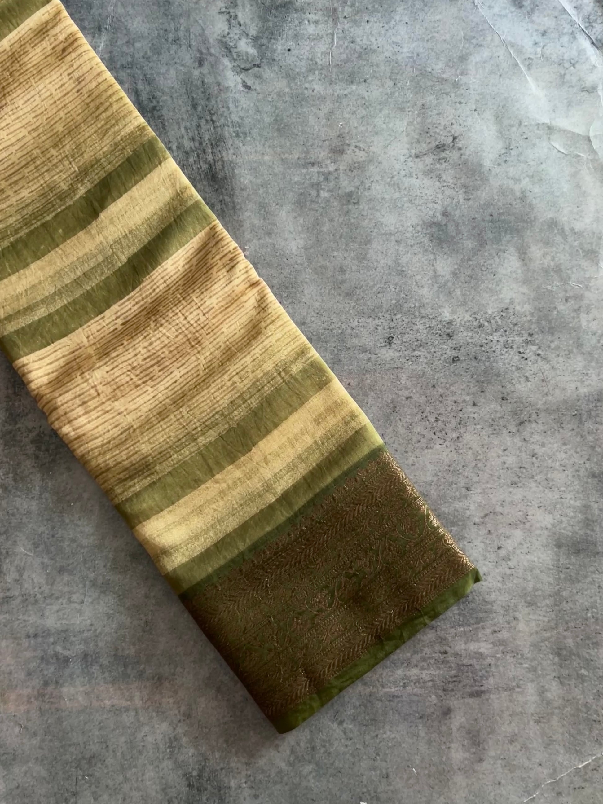 Chanderi butter silk epitomizes elegance and sophistication with its sheer, lightweight texture and natural sheen. This luxurious fabric seamlessly blends traditional charm with contemporary style, making it a timeless choice for any wardrobe. Its breathability and comfort further enhance its appeal, making Chanderi butter silk not just a fabric, but a work of art.