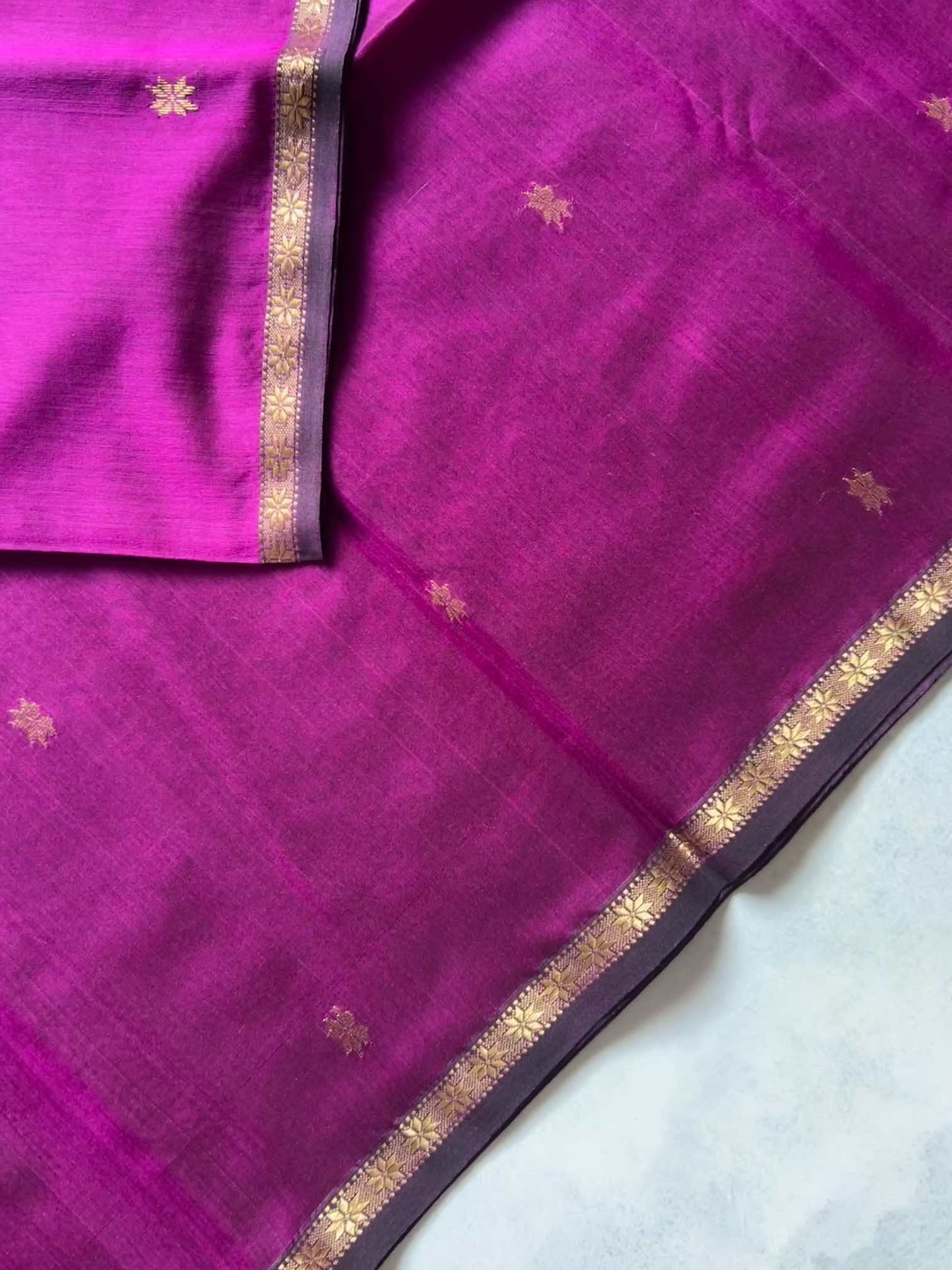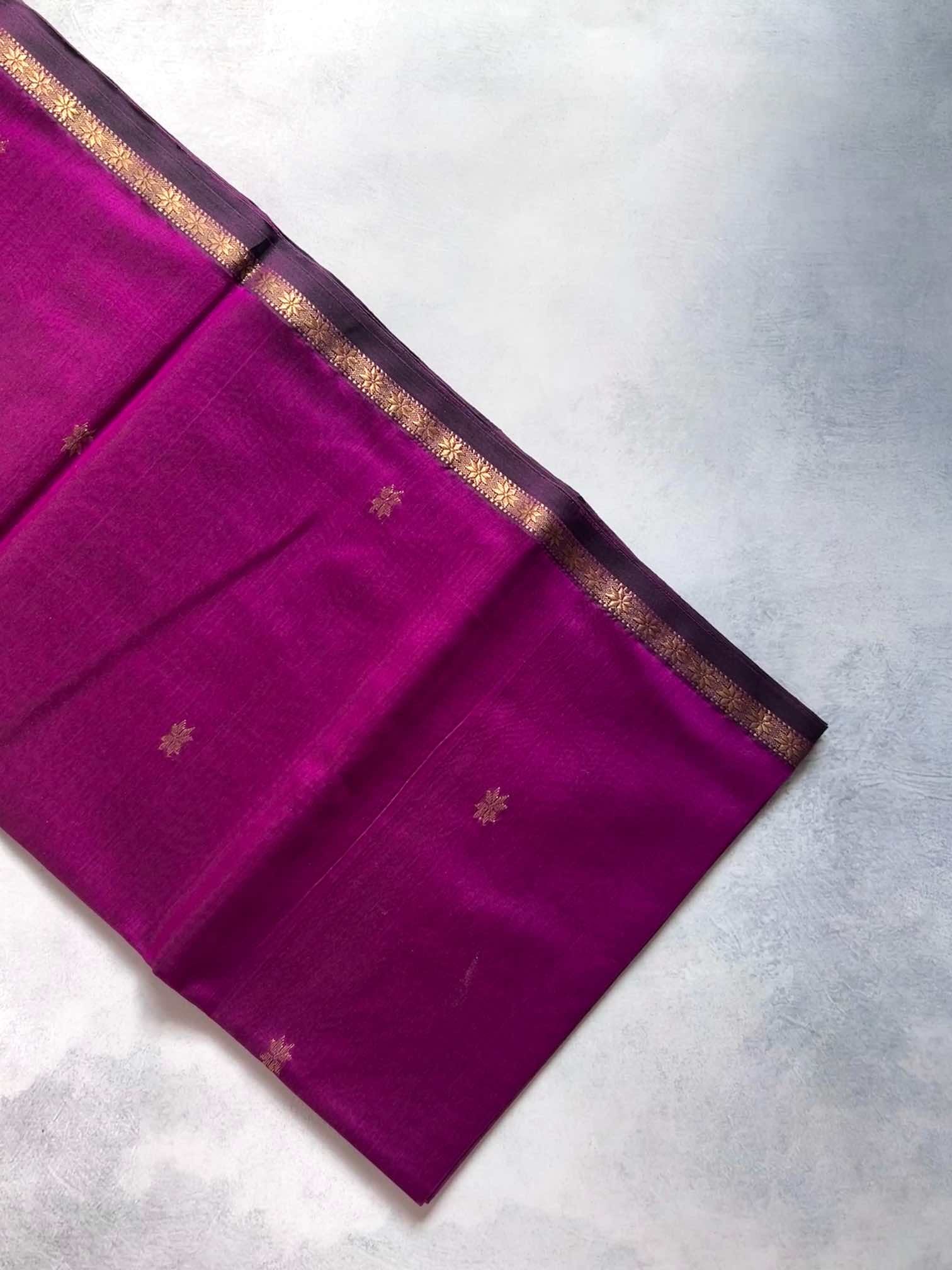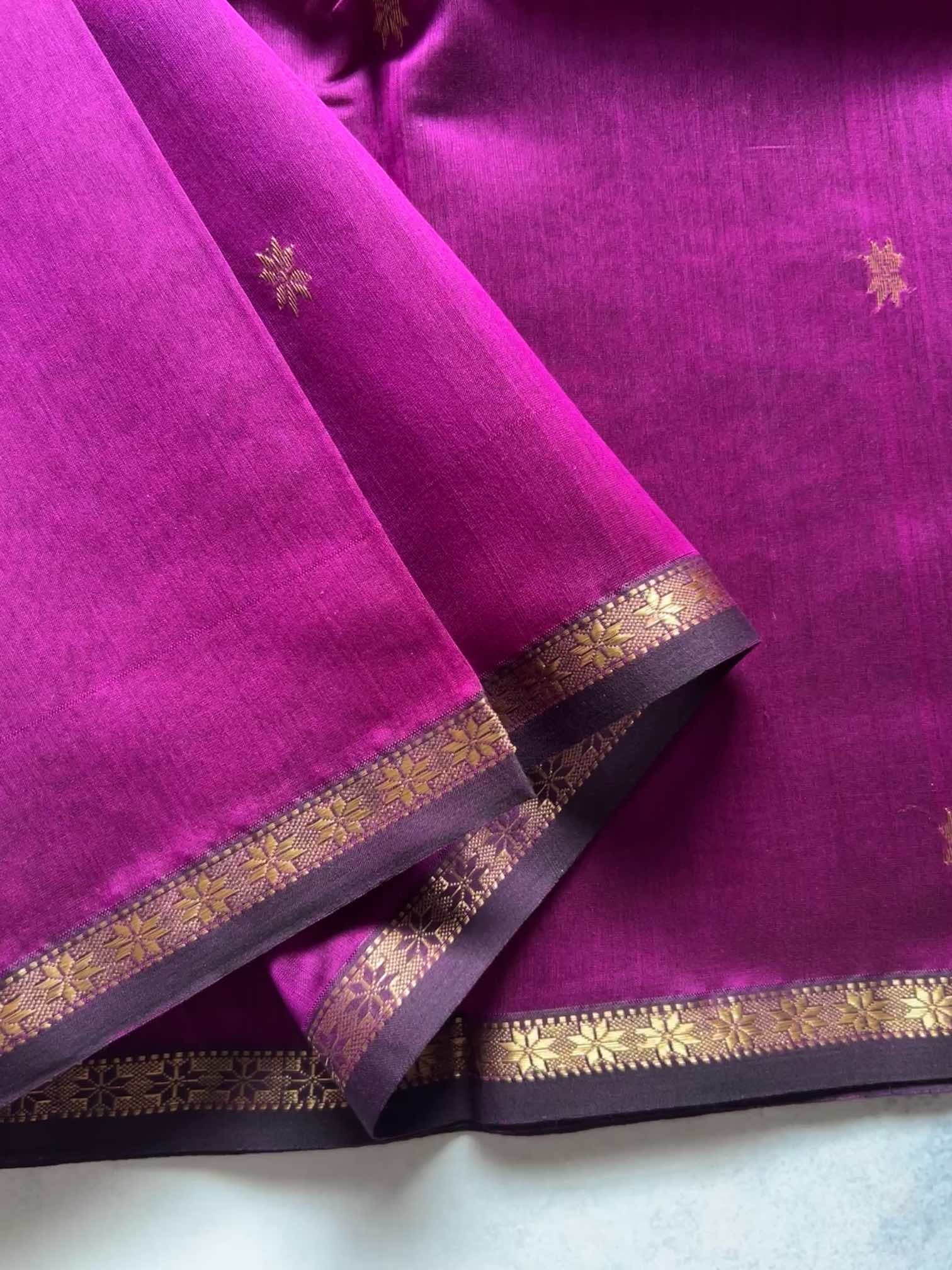 Maheswari silk cotton is known for its exquisite blend of elegance and comfort. The silk adds a luxurious sheen and drape, while the cotton provides breathability and softness. The border, often intricately woven with metallic threads, adds a touch of opulence and sophistication. This blend creates a visually striking and versatile textile that balances traditional charm with modern sensibility, making it ideal for both festive occasions and refined everyday wear.