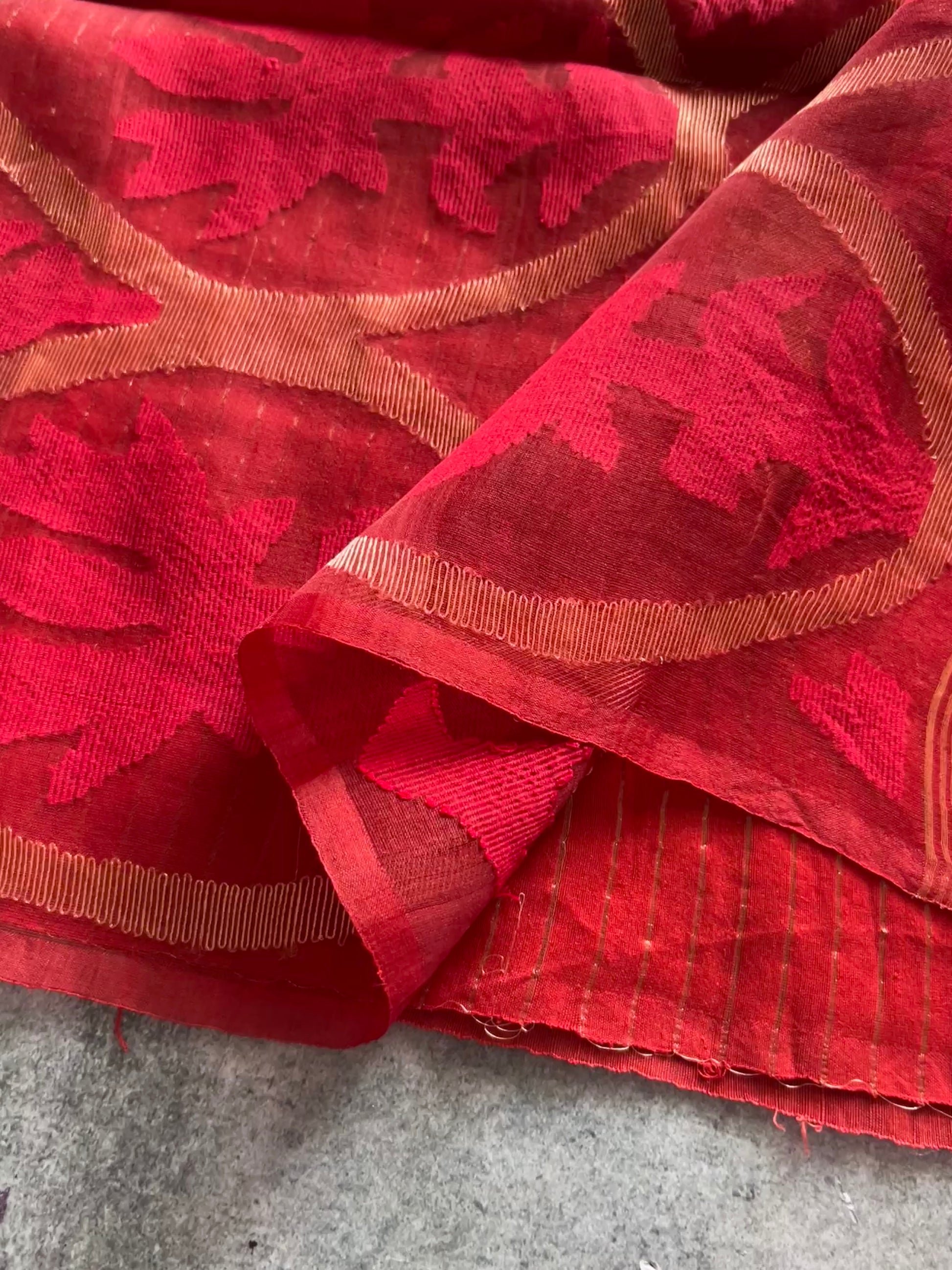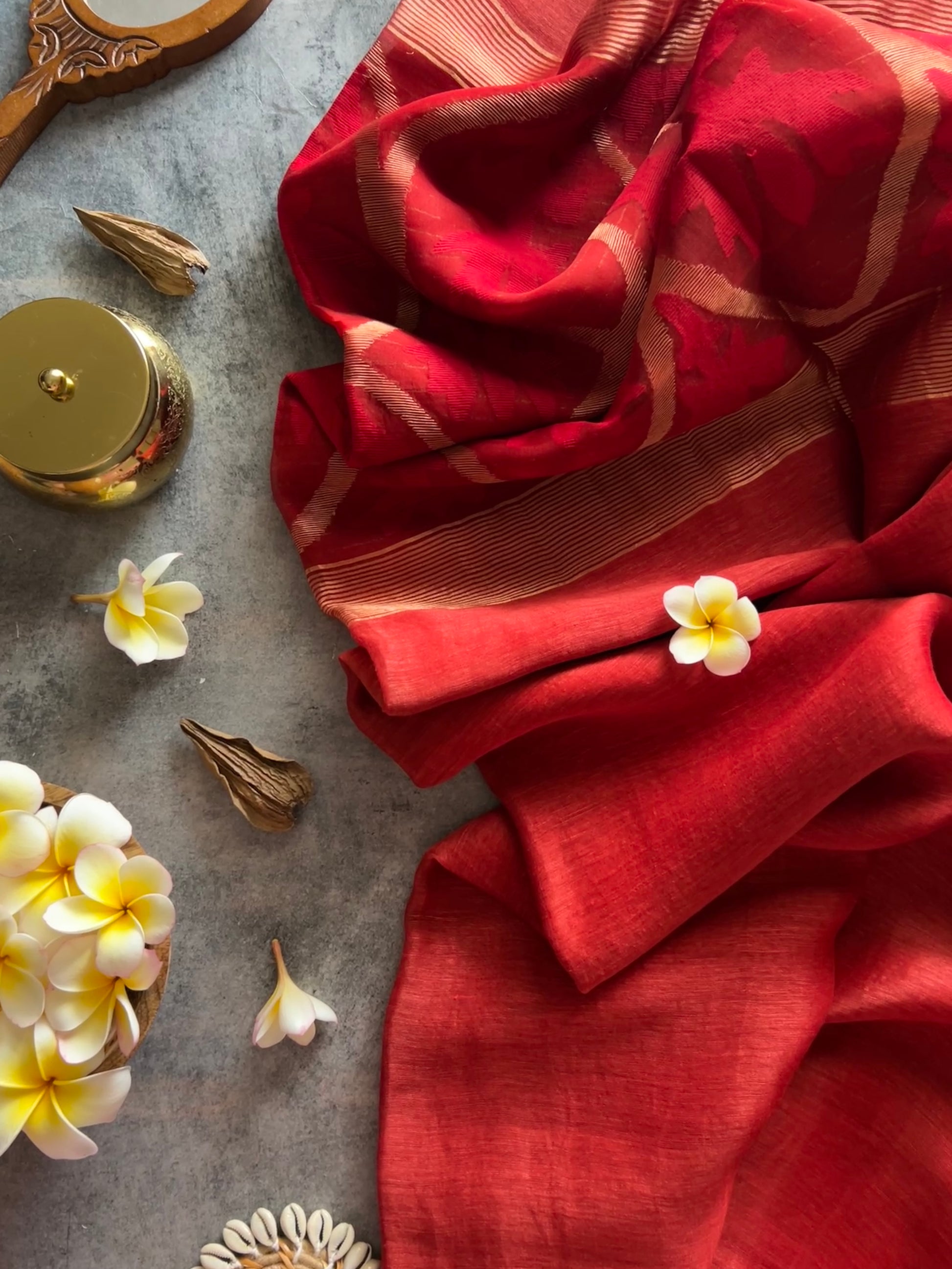 The linen silk fabric brings a perfect balance of softness and sheen, offering a lightweight yet luxurious feel. The Jamdhani work on the muslin pallu adds intricate, traditional handwoven motifs, elevating the saree with timeless beauty and cultural heritage. Together, these elements create a saree that exudes elegance, sophistication, and intricate craftsmanship, making it a stunning choice for special occasions.