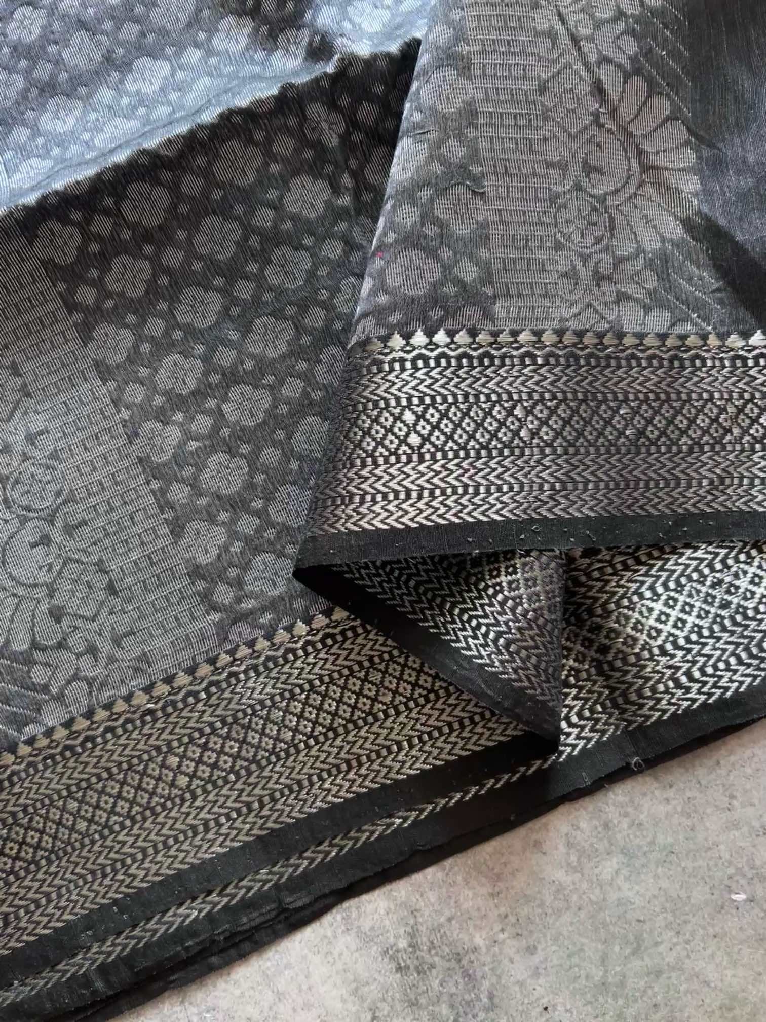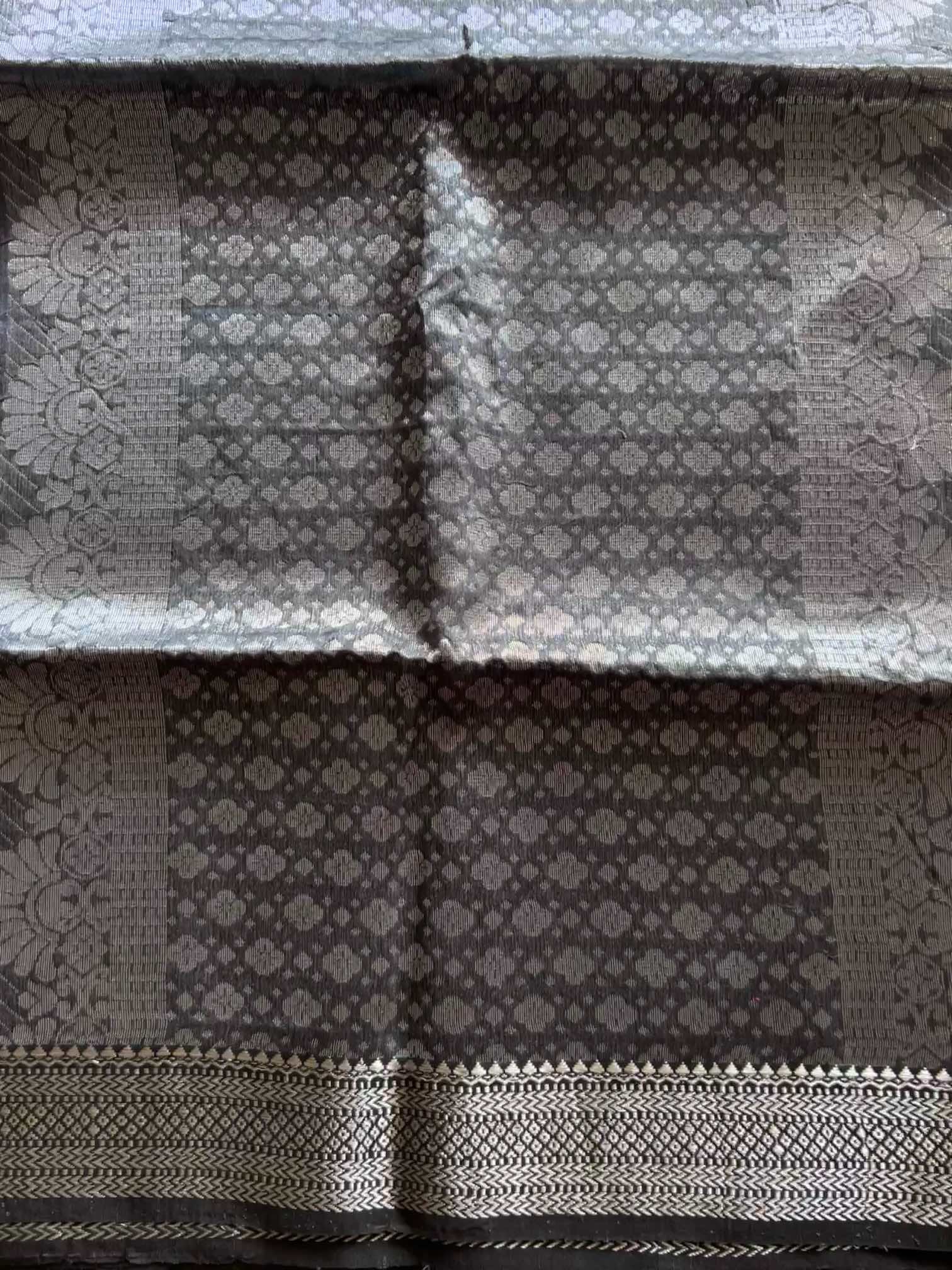 Pure linen silk adorned with Jamdhani weave is a true embodiment of elegance and tradition. The floral motifs delicately woven into the body lend a timeless charm, showcasing the artistry of handloom craftsmanship.Together, the blend of airy linen silk and intricate Jamdhani floral designs creates a piece that's both luxurious and effortlessly graceful.