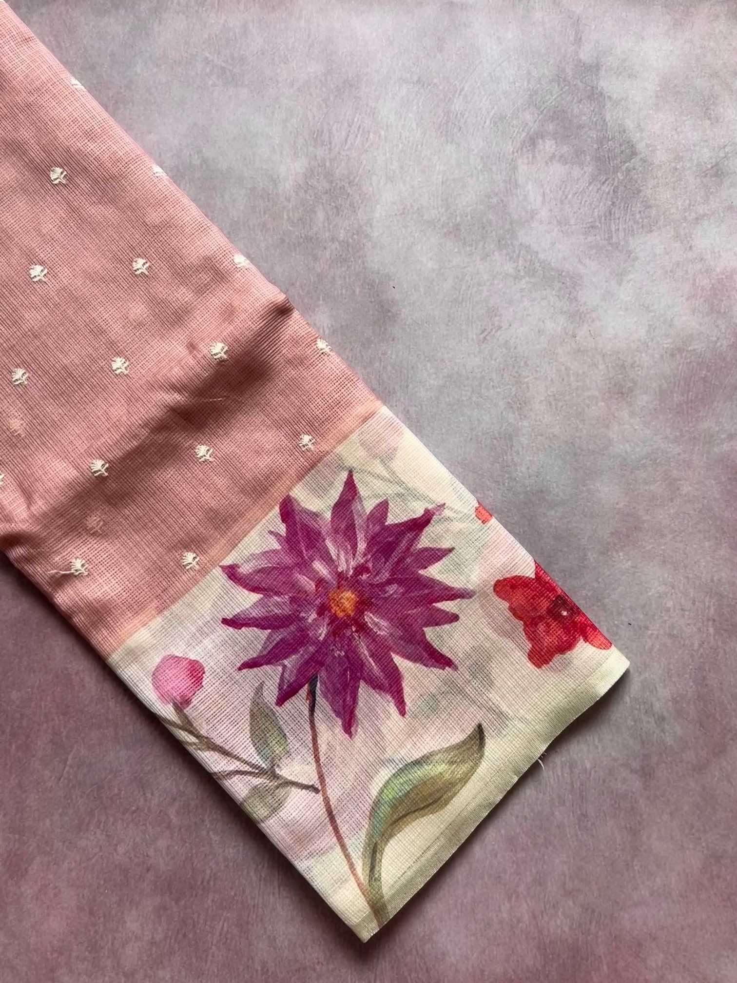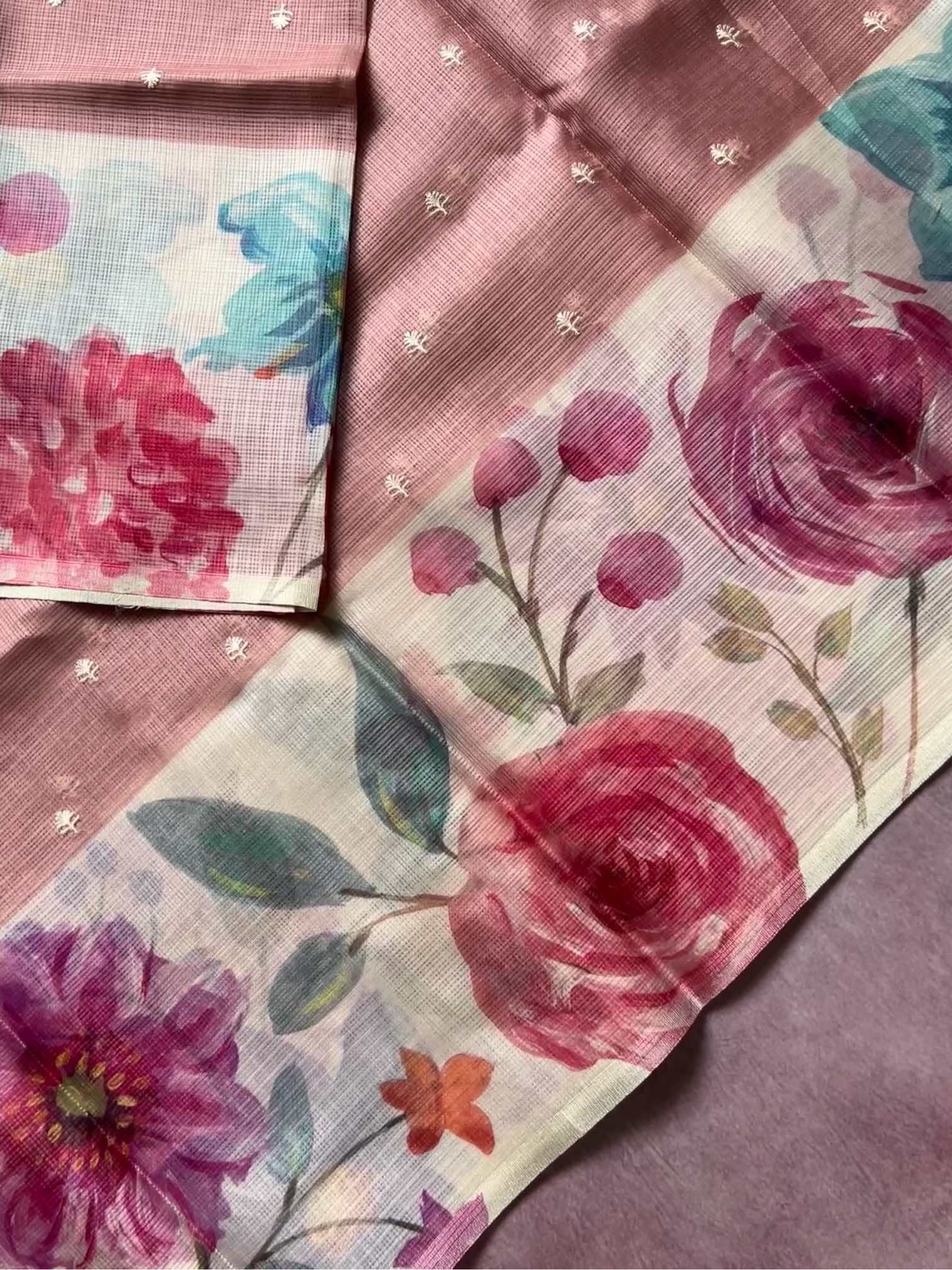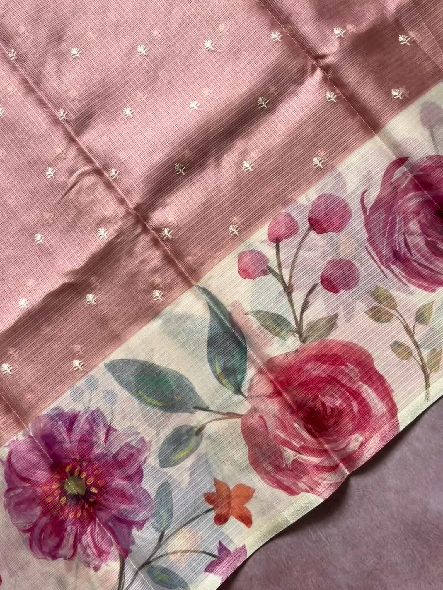 Printed Kota sarees with lace work borders exude a unique blend of simplicity and elegance. The airy, translucent texture of Kota fabric, combined with vibrant prints, creates a refreshing and graceful look. The delicate lace border adds a touch of sophistication, beautifully framing the saree with subtle charm.