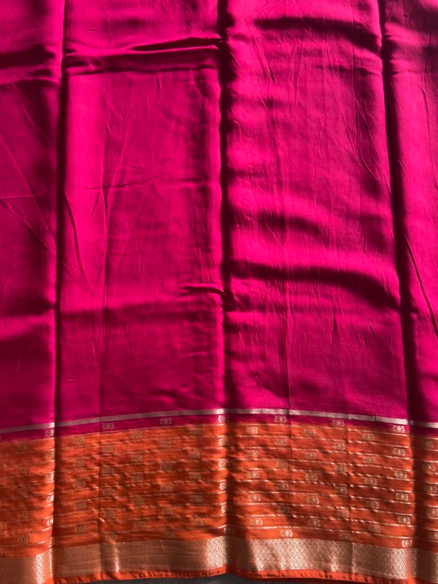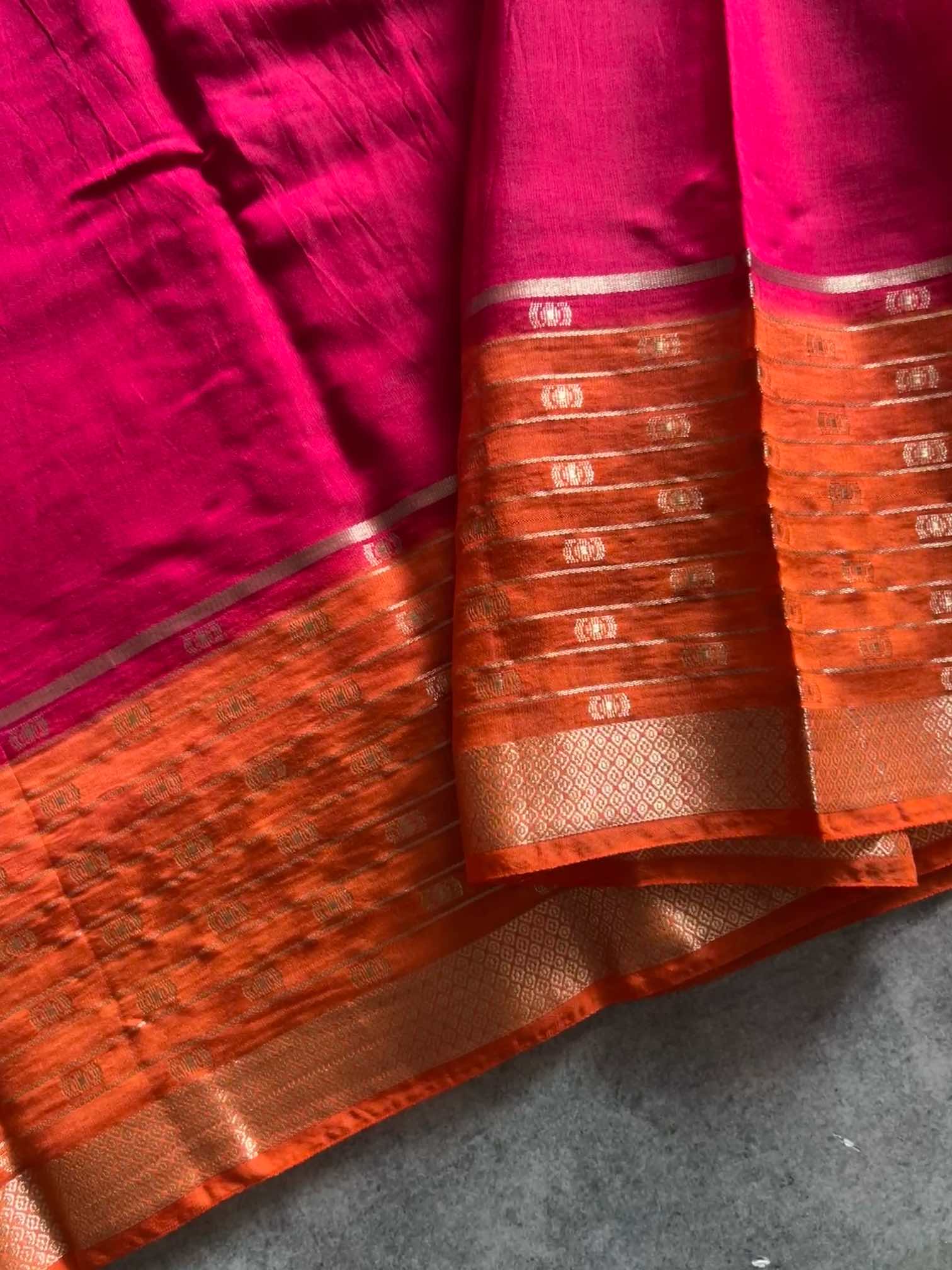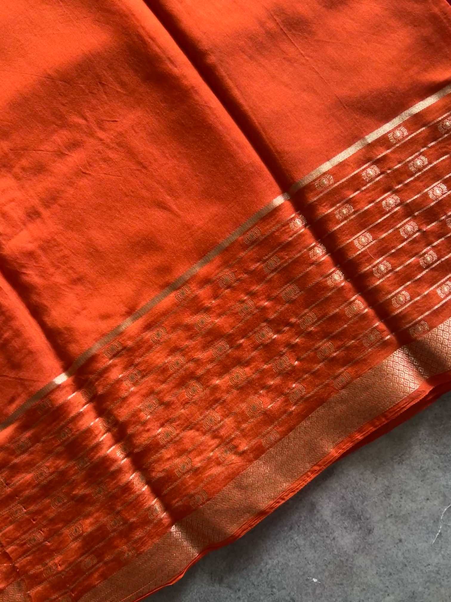 The soft, fluid texture of dola silk drapes with effortless grace, catching light in a gentle, elegant sheen. The zari border adds a regal touch—rich, intricate, and timeless—while the zari lines running through the body create a subtle shimmer, giving the saree an ethereal charm.Together, these elements make the saree both sophisticated and captivating, perfect for moments that call for quiet grandeur and classic beauty.