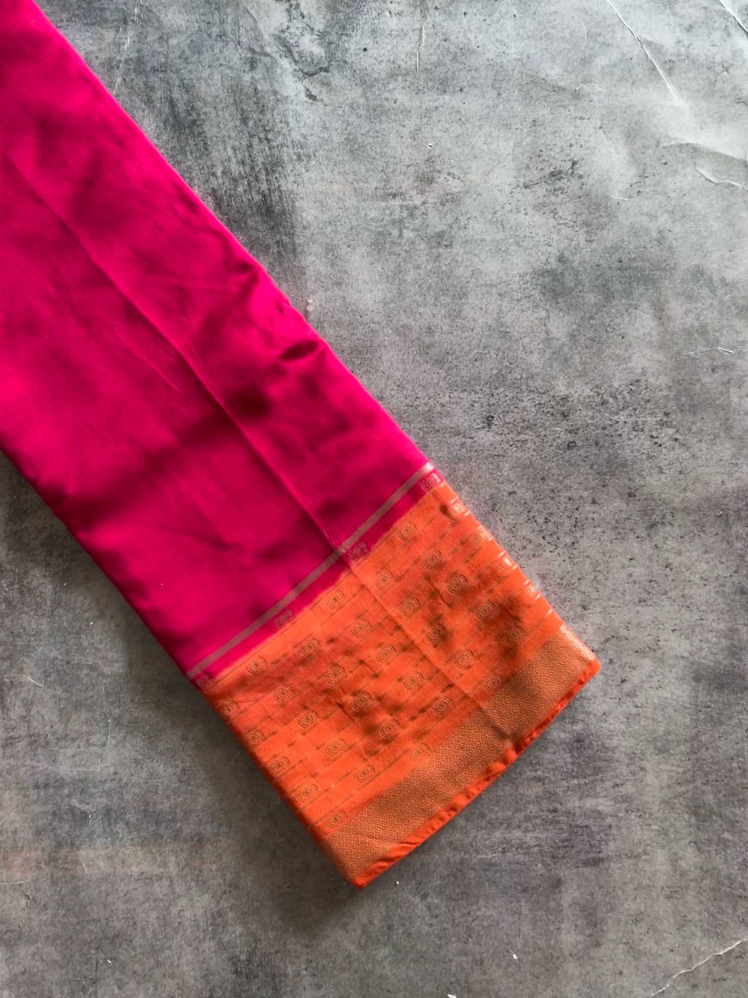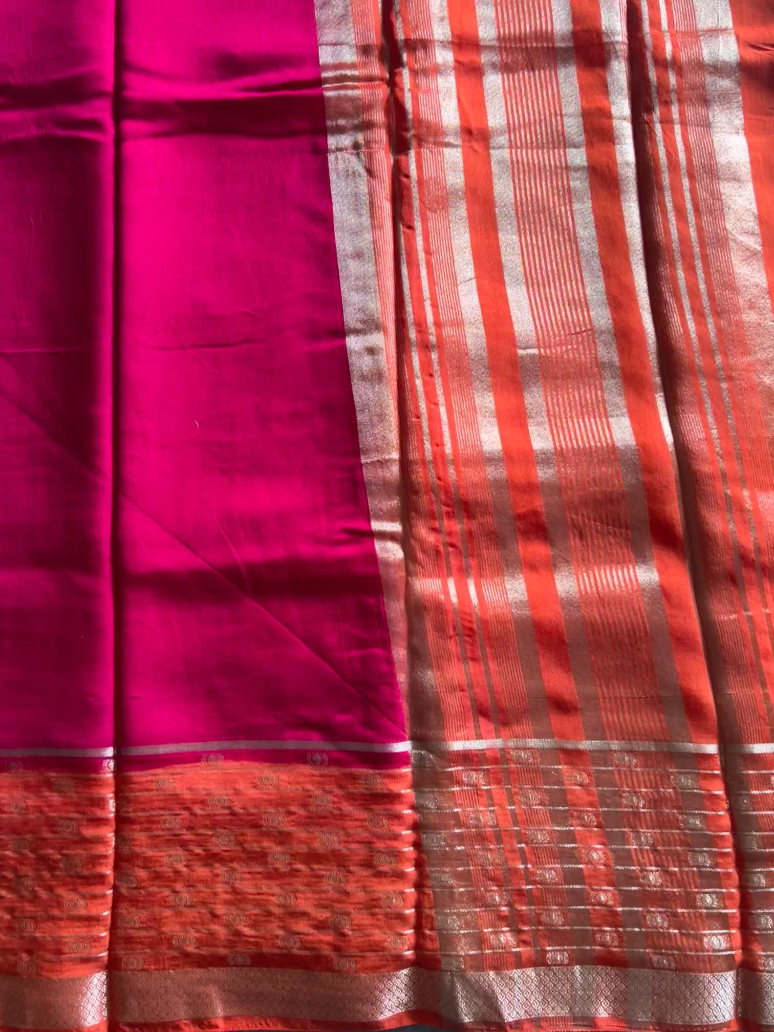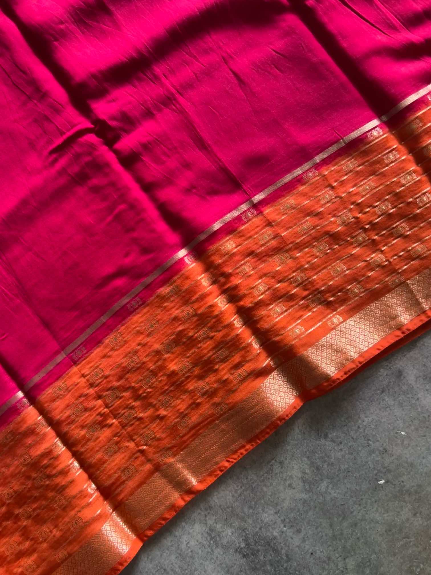 The soft, fluid texture of dola silk drapes with effortless grace, catching light in a gentle, elegant sheen. The zari border adds a regal touch—rich, intricate, and timeless—while the zari lines running through the body create a subtle shimmer, giving the saree an ethereal charm.Together, these elements make the saree both sophisticated and captivating, perfect for moments that call for quiet grandeur and classic beauty.