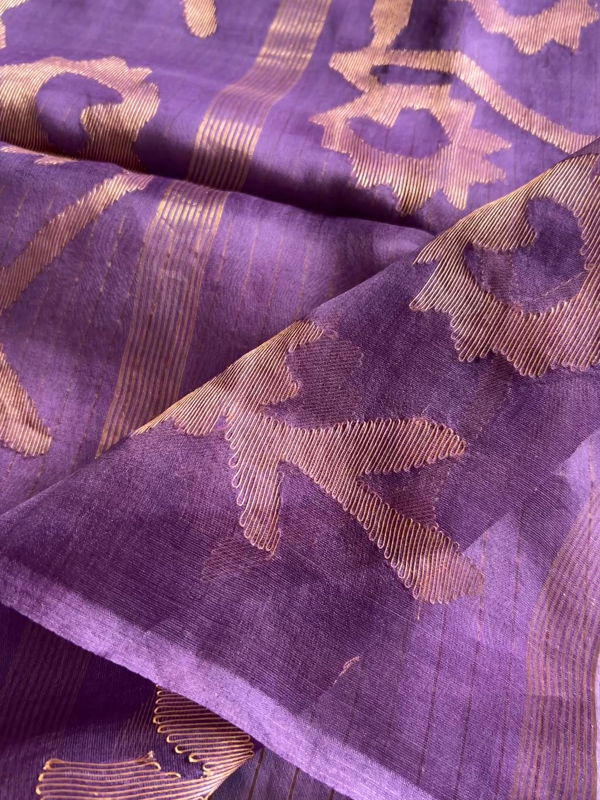 The linen silk fabric brings a perfect balance of softness and sheen, offering a lightweight yet luxurious feel. The Jamdhani work on the muslin pallu adds intricate, traditional handwoven motifs, elevating the saree with timeless beauty and cultural heritage. Together, these elements create a saree that exudes elegance, sophistication, and intricate craftsmanship, making it a stunning choice for special occasions.