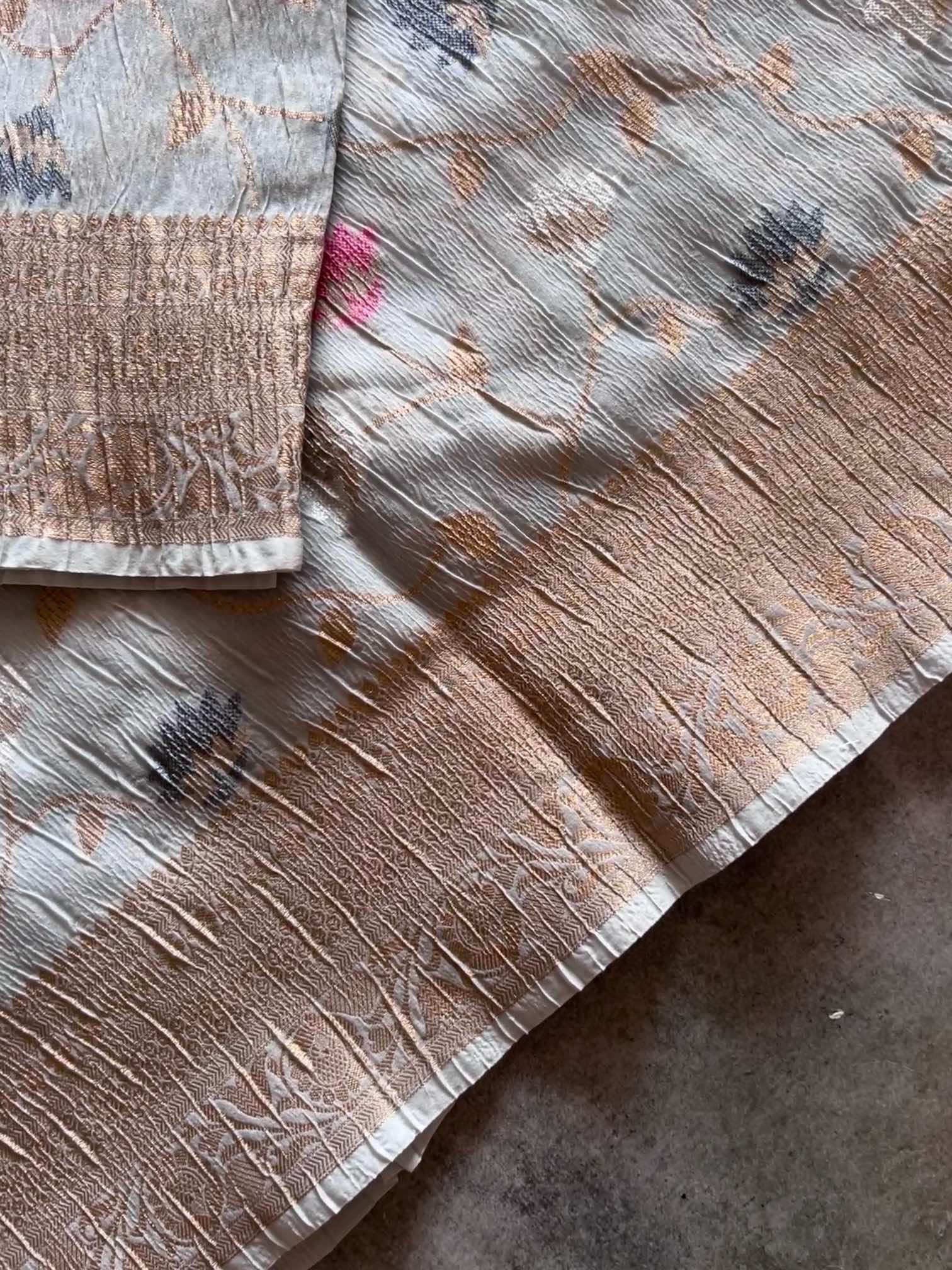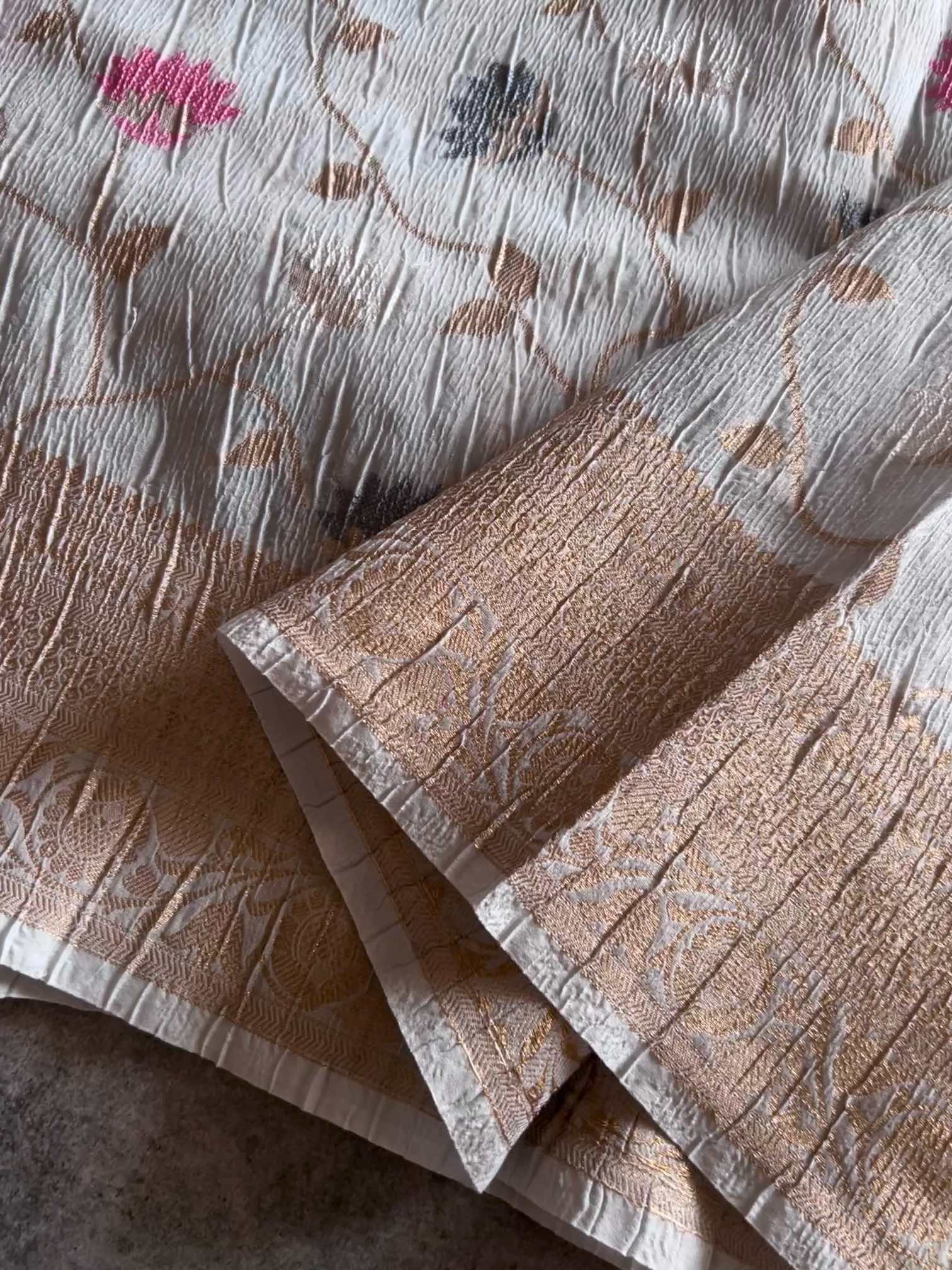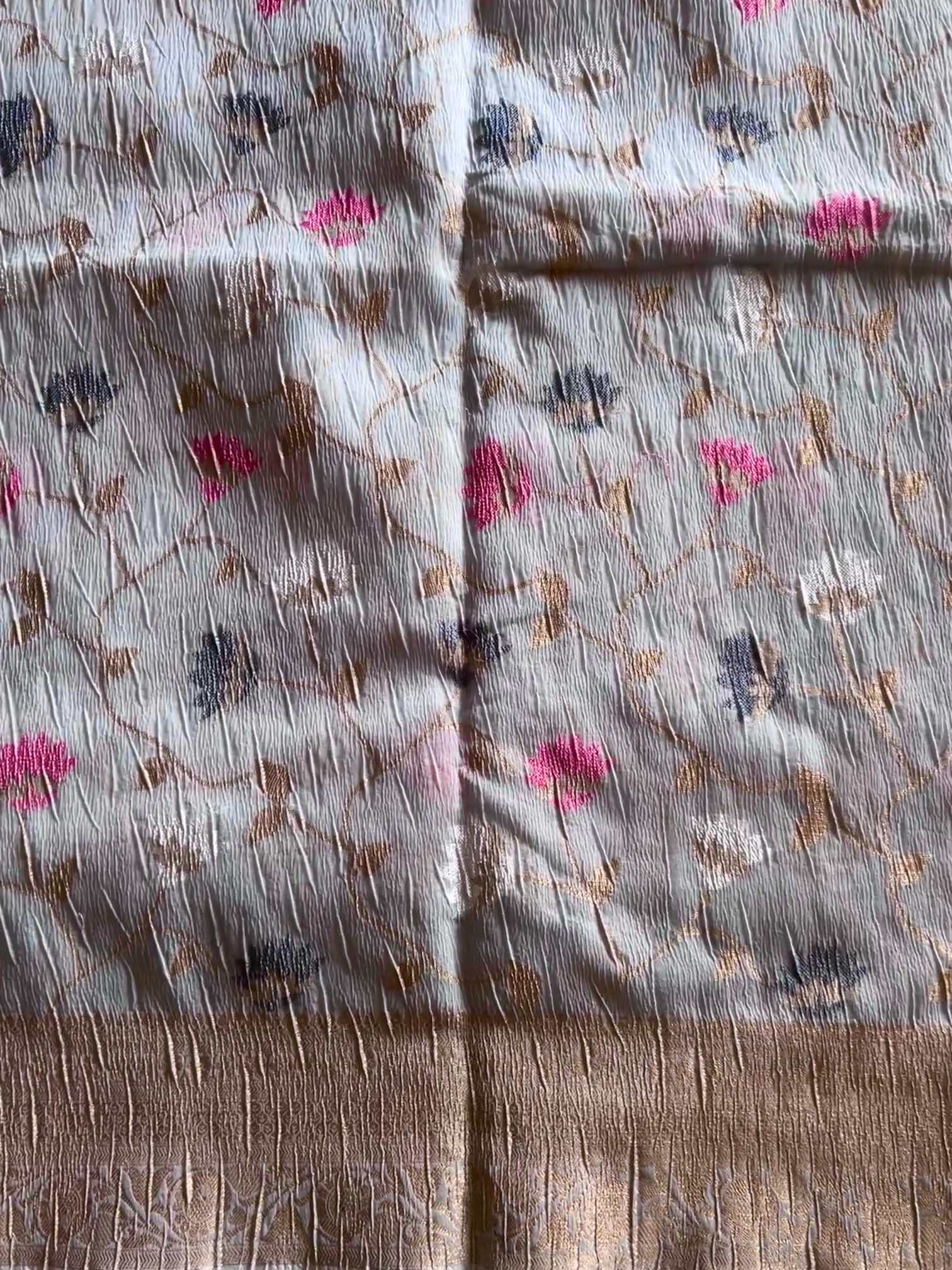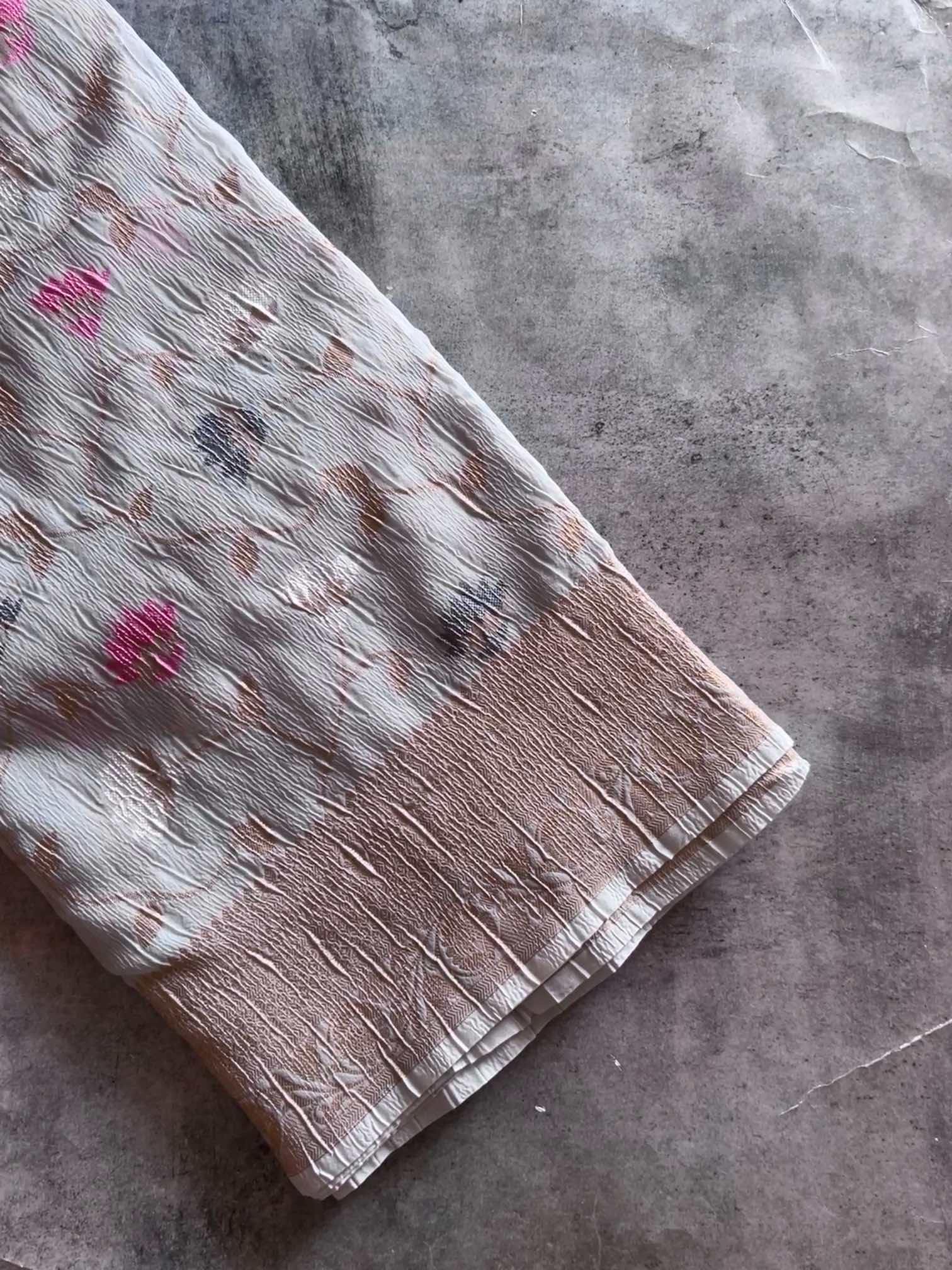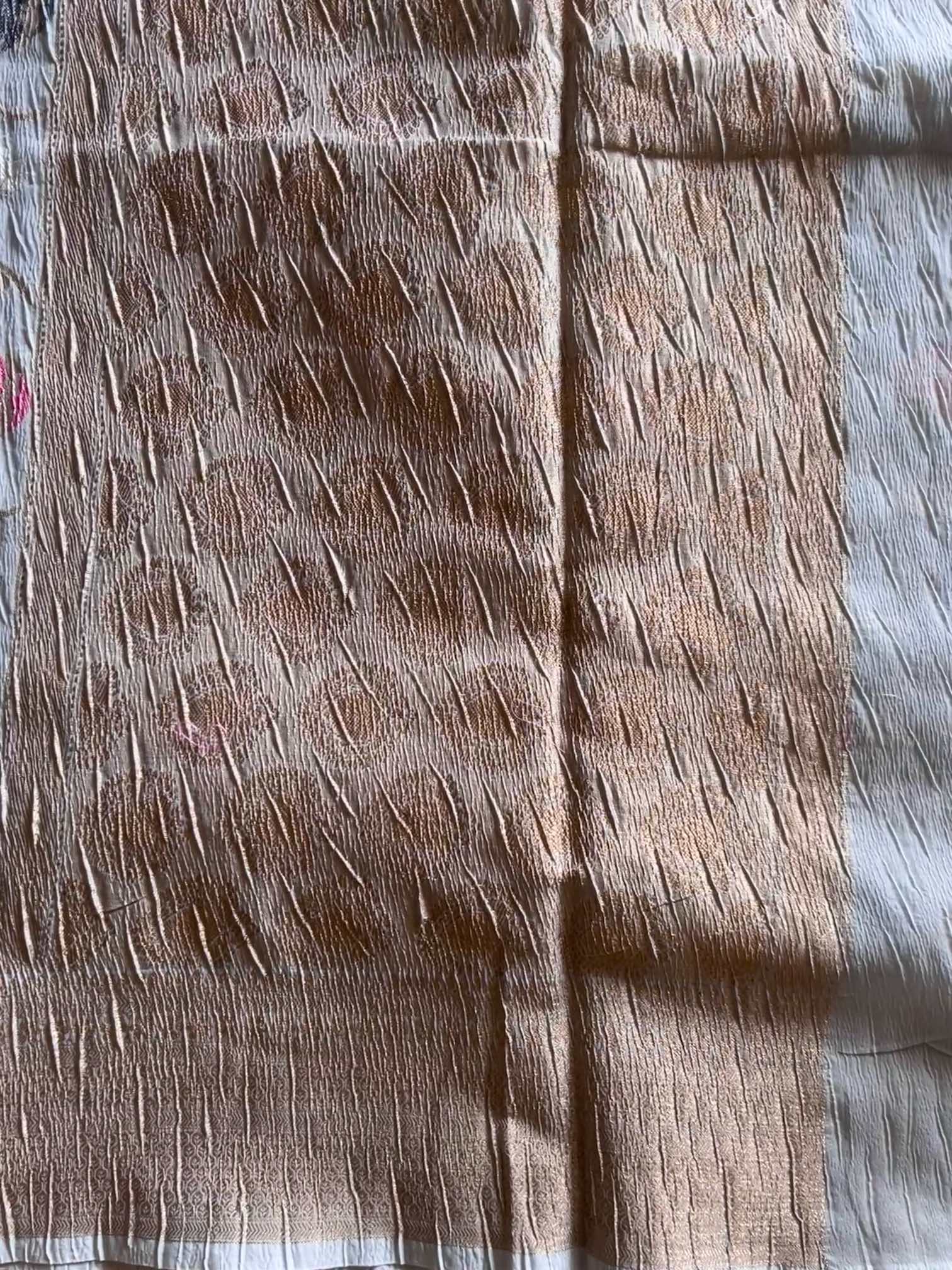 Fancy cotton sarees with a brocade weave border and crinkled texture blend comfort with charm—soft, airy cotton brought to life by rich woven borders and a naturally textured finish that adds depth, character, and understated elegance.