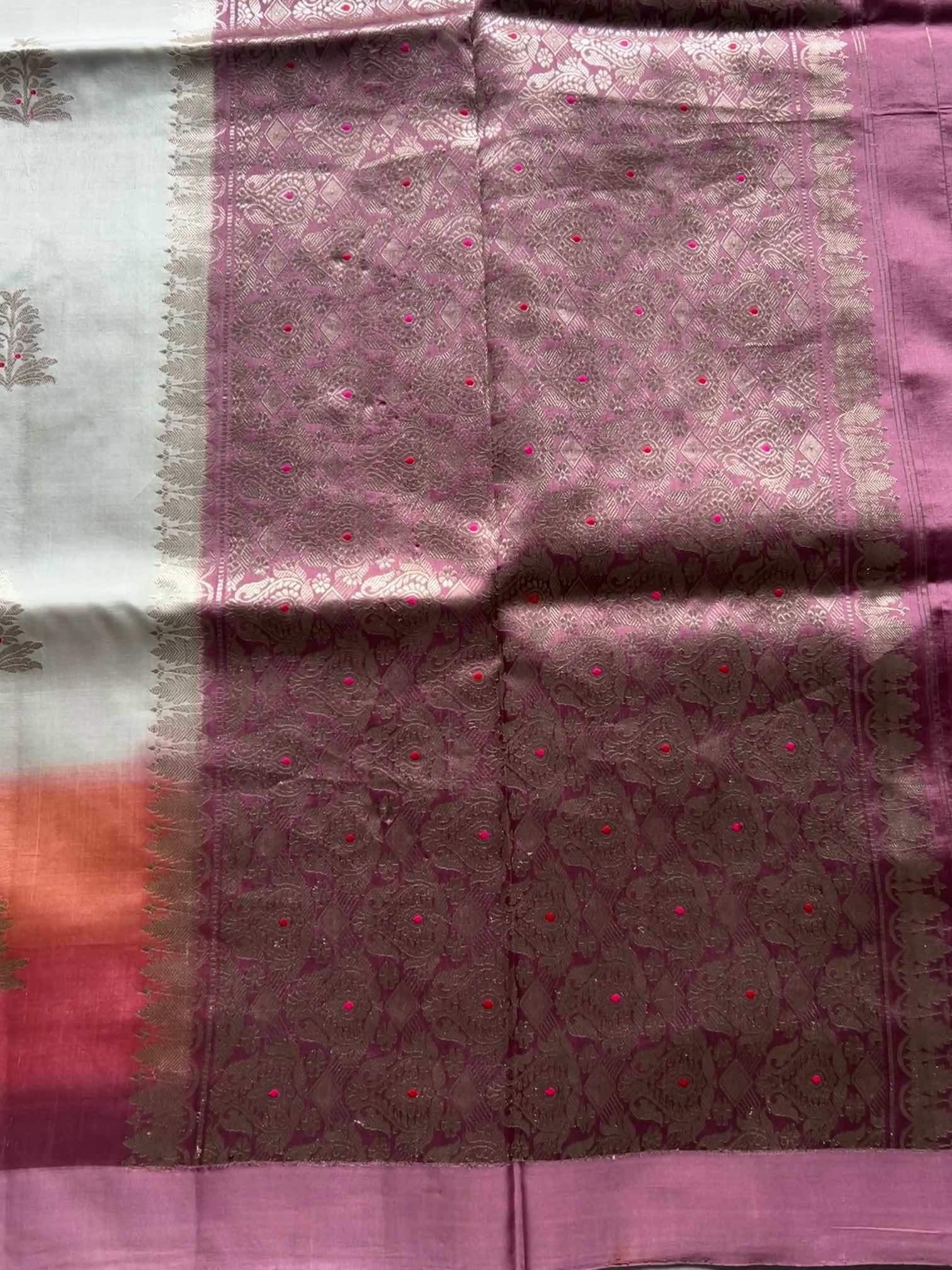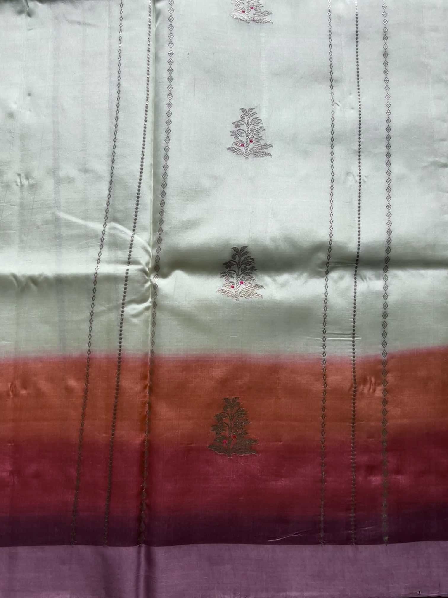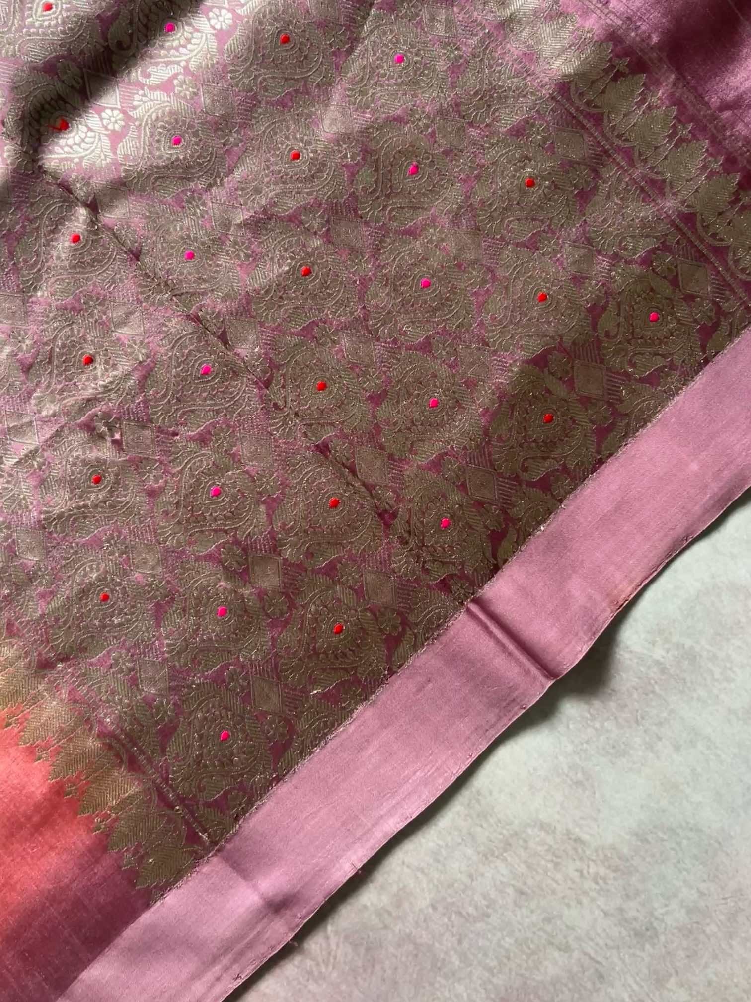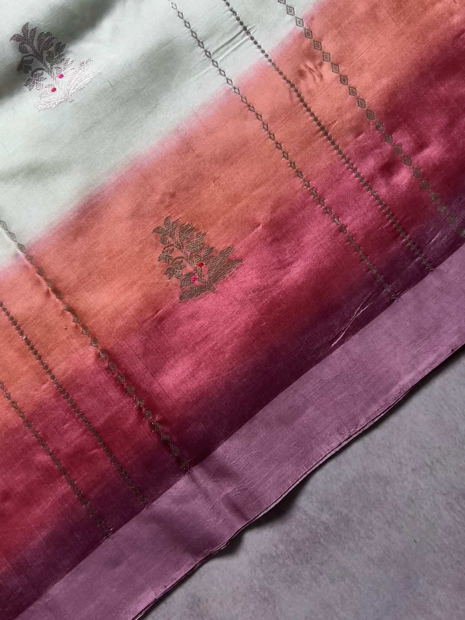 A multicolour shaded Banaras saree is a celebration of colour and craft. The gentle play of hues adds depth and movement, while the finely zari-woven floral motifs lend it a rich, regal charm. Together, they create a saree that feels luxurious yet graceful—an exquisite blend of traditional artistry and timeless beauty.