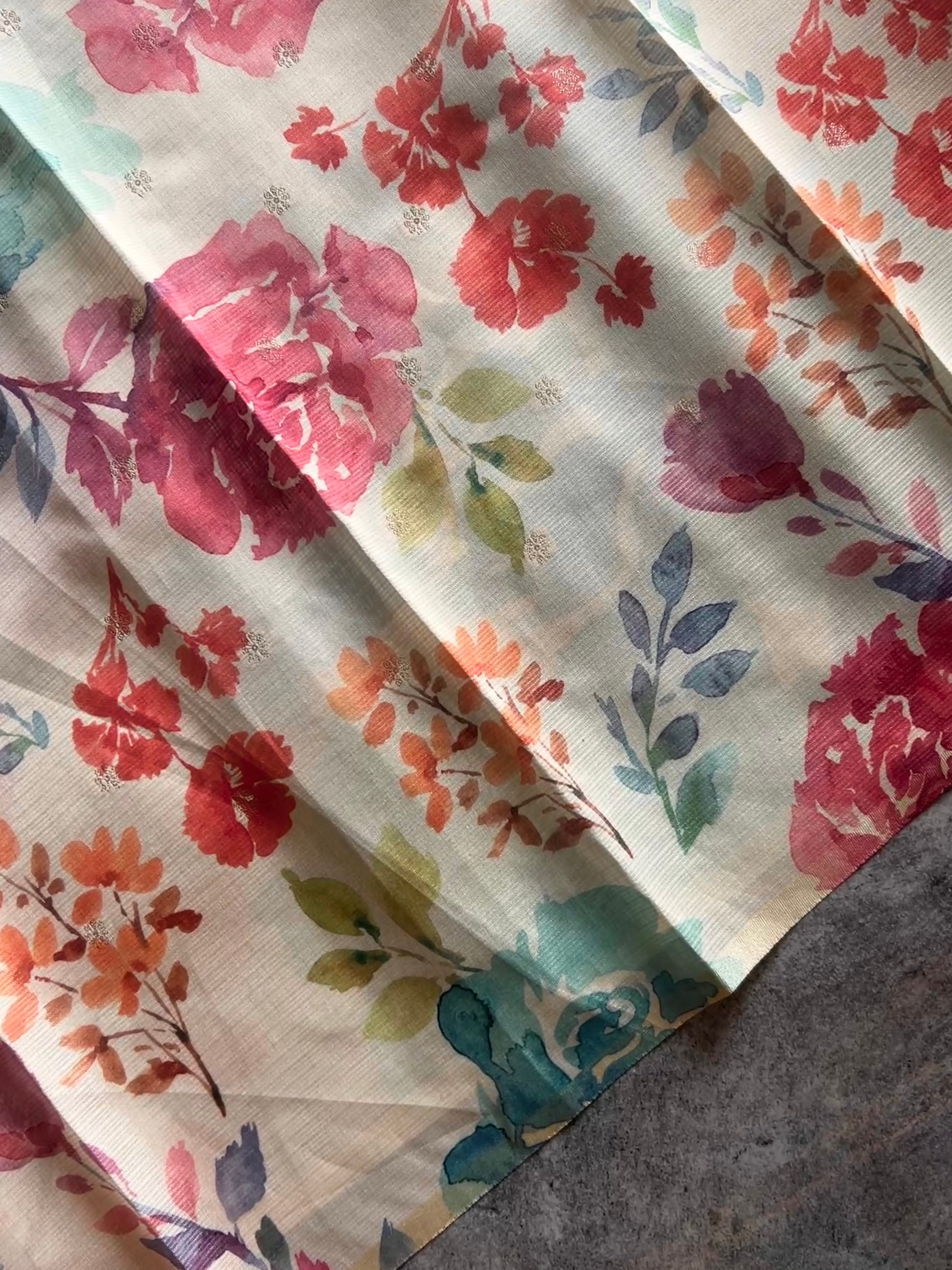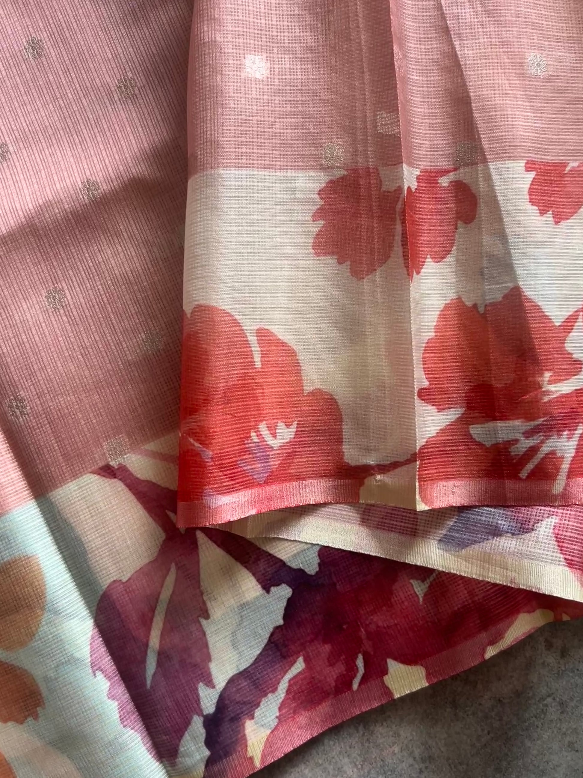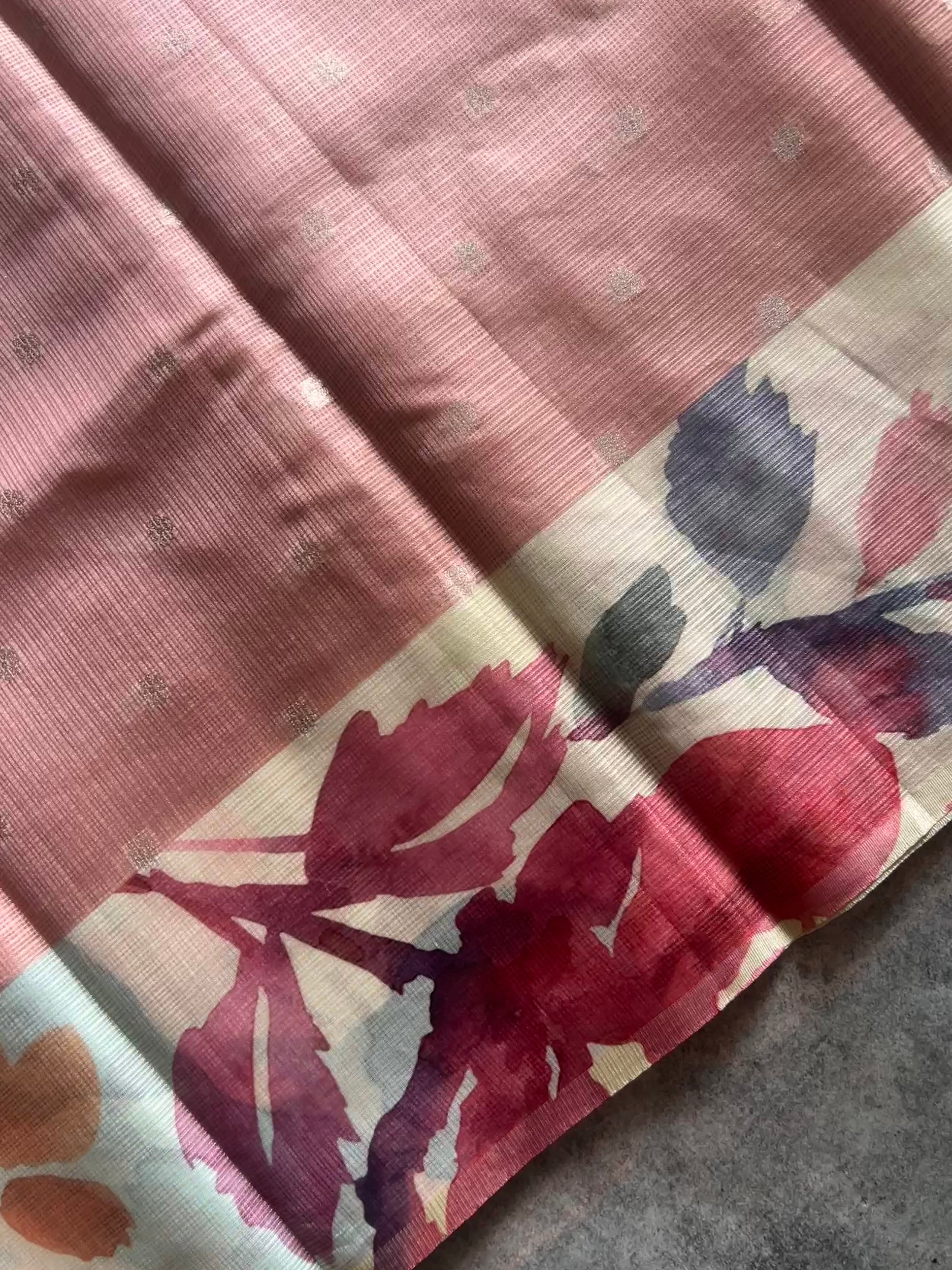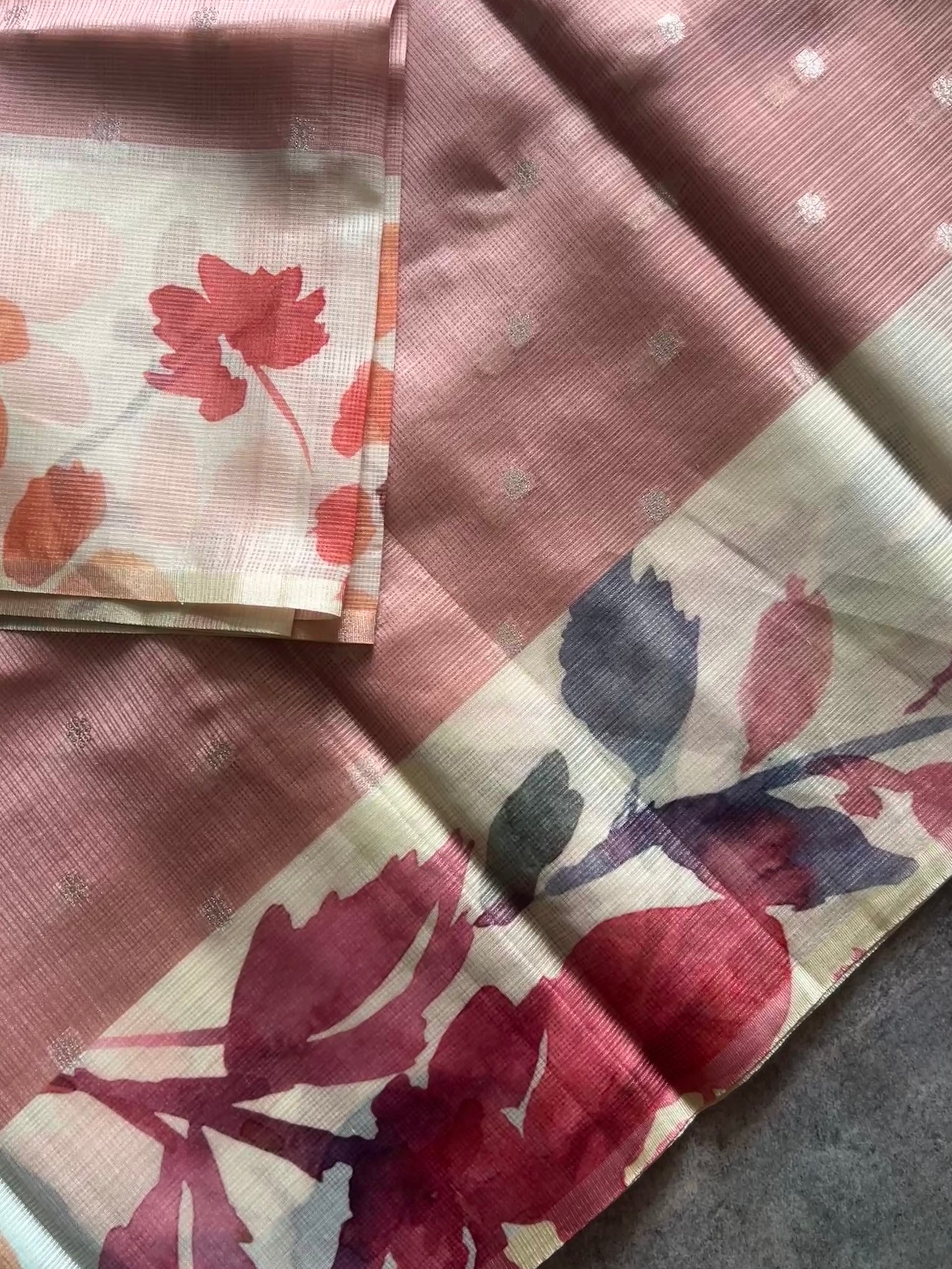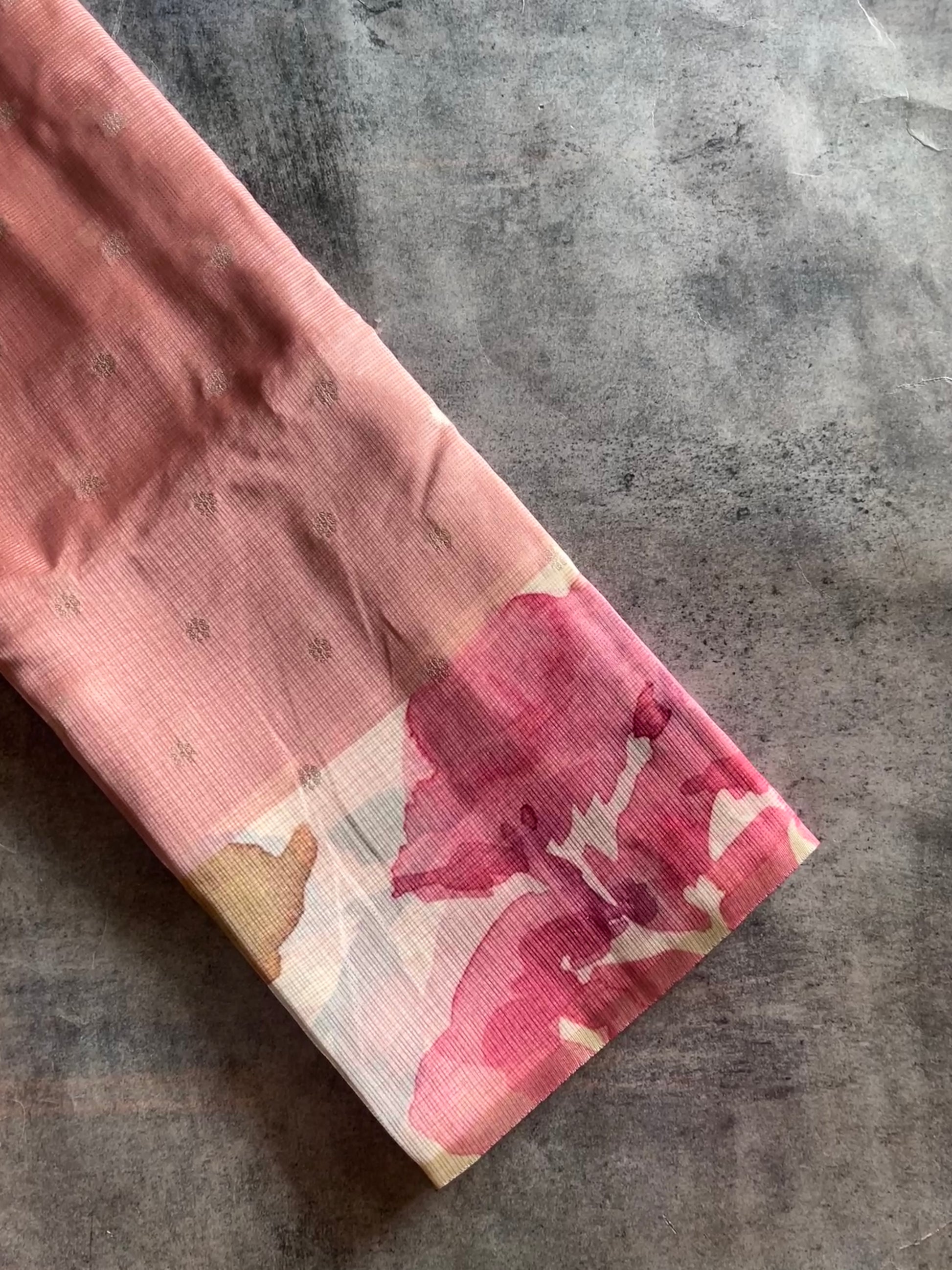 Zari Kota sarees are a timeless blend of elegance and tradition. The intricate zari work, often in gold or silver, enhances the delicate, lightweight cotton fabric of the Kota weave, creating a sophisticated texture. Printed borders introduce modern motifs and colors, providing a contemporary flair to the classic weave. This fusion results in a versatile garment suitable for various occasions, from casual gatherings to festive celebrations, embodying both timeless tradition and modern sophistication.