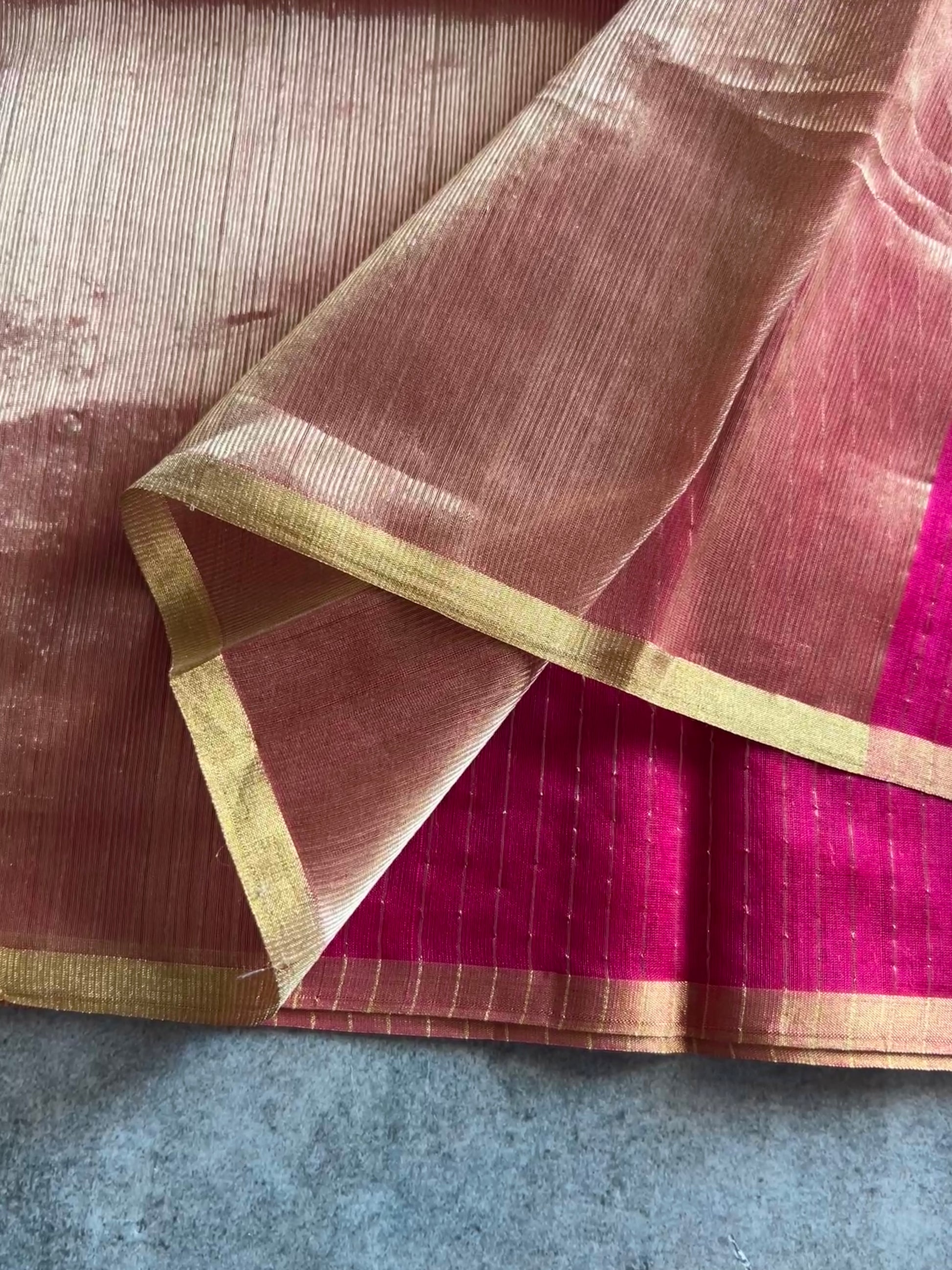 Maheswari silk cotton is known for its exquisite blend of elegance and comfort. The silk adds a luxurious sheen and drape, while the cotton provides breathability and softness. The border, often intricately woven with metallic threads, adds a touch of opulence and sophistication. This blend creates a visually striking and versatile textile that balances traditional charm with modern sensibility, making it ideal for both festive occasions and refined everyday wear.