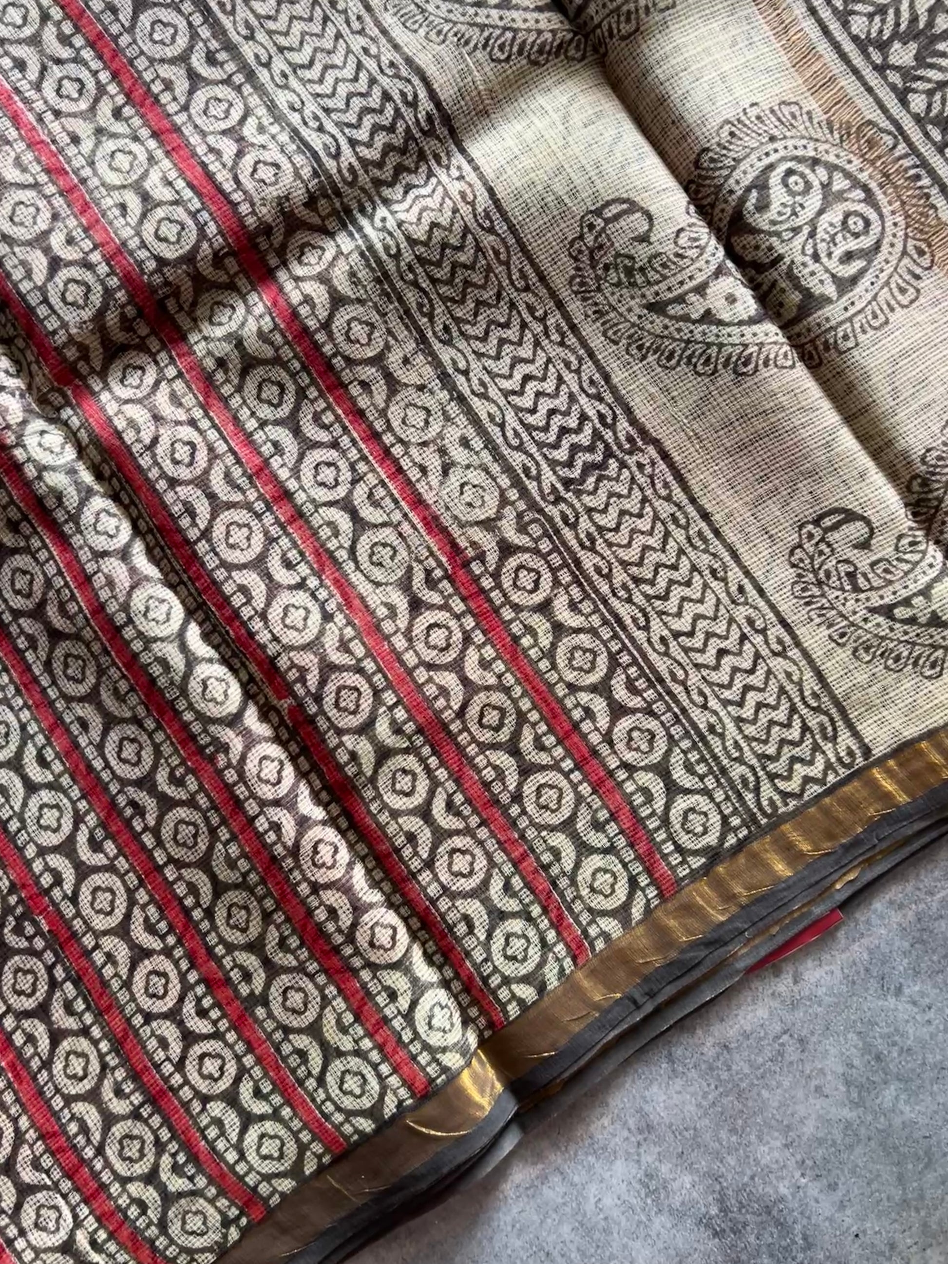 Blouse Piece : Comes With Handblock Printed Blouse Piece