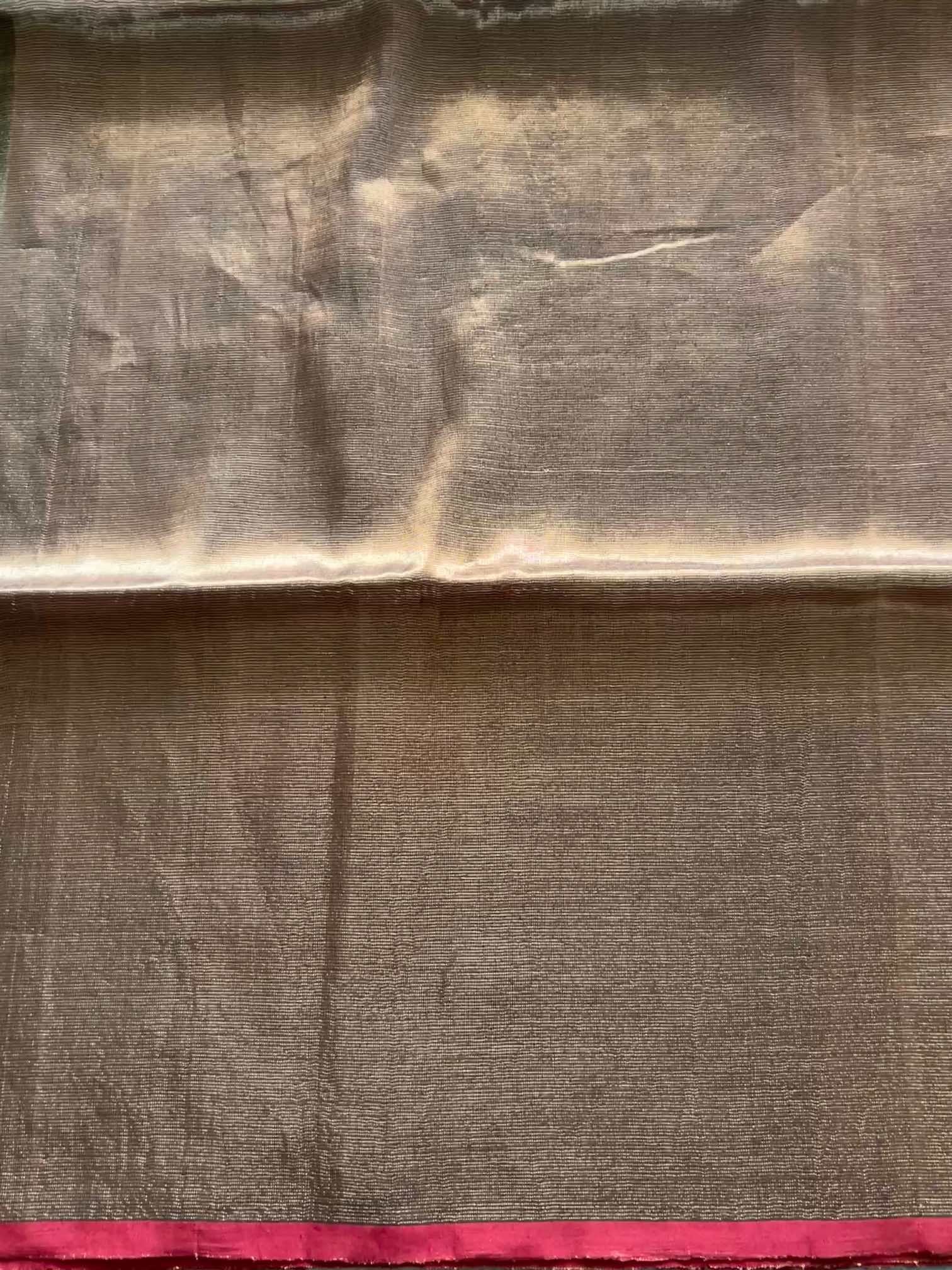 A shimmer linen saree with a tissue pallu is a perfect blend of subtle elegance and contemporary charm. Its soft, luminous sheen drapes gracefully, while the delicate tissue pallu adds a touch of ethereal sparkle, making the ensemble effortlessly sophisticated and beautifully timeless.
