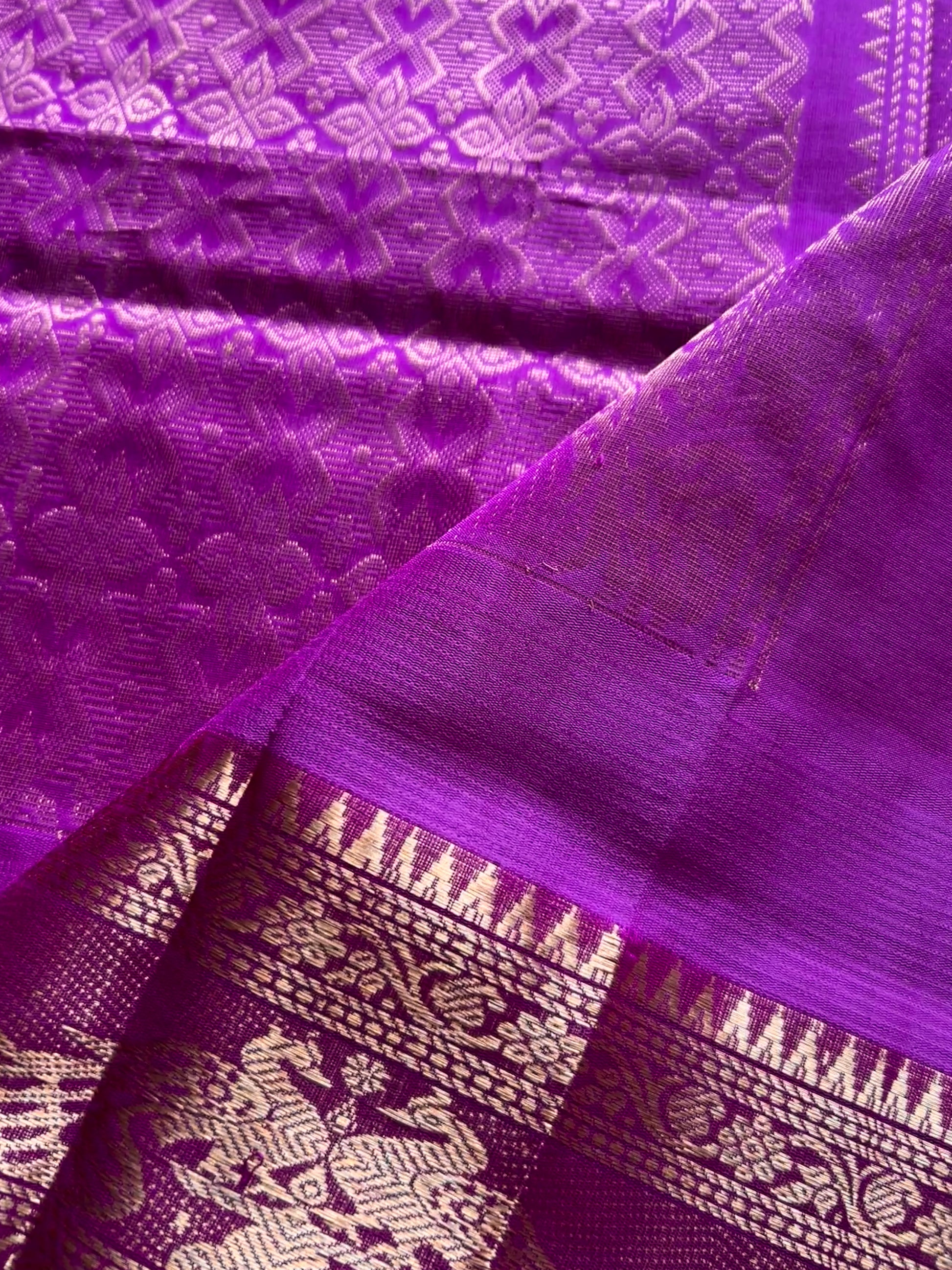 Known for their unique lightweight and breathable quality, the Kanchi silk cotton sarees are soft, comfortable, easy to carry and wrinkle-free. The fabric glistens because of its fine quality. The subtle shine of this saree makes it a distinctive ethnic wear especially in parties and traditional occasions.