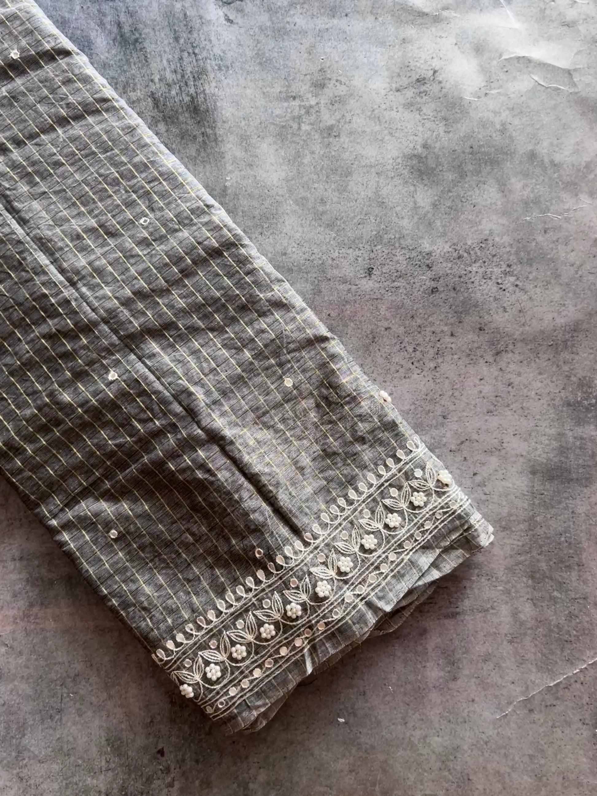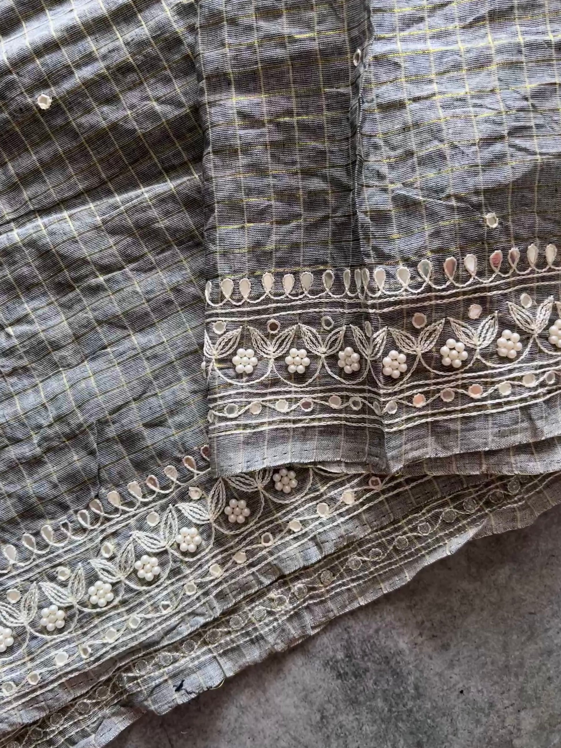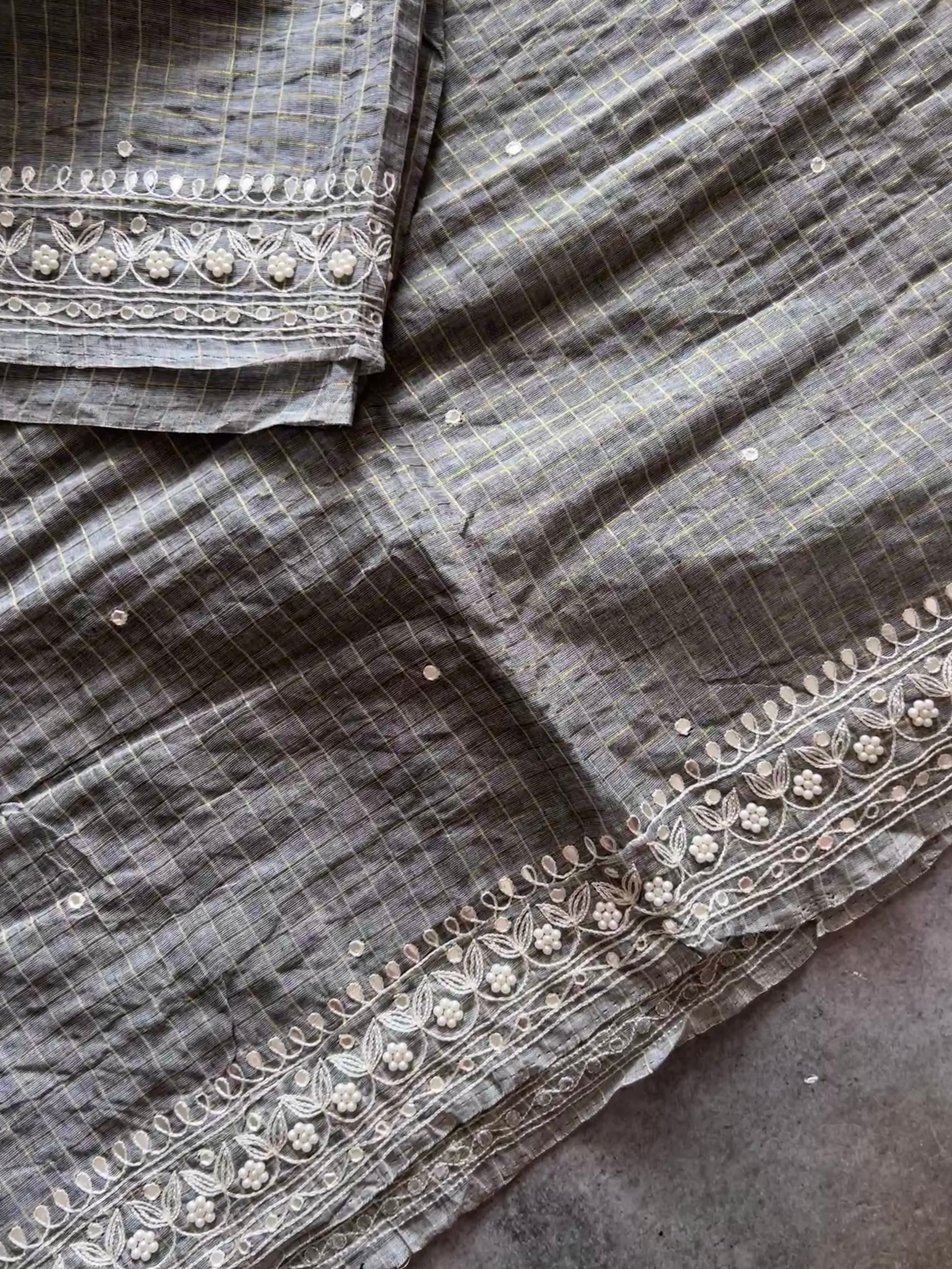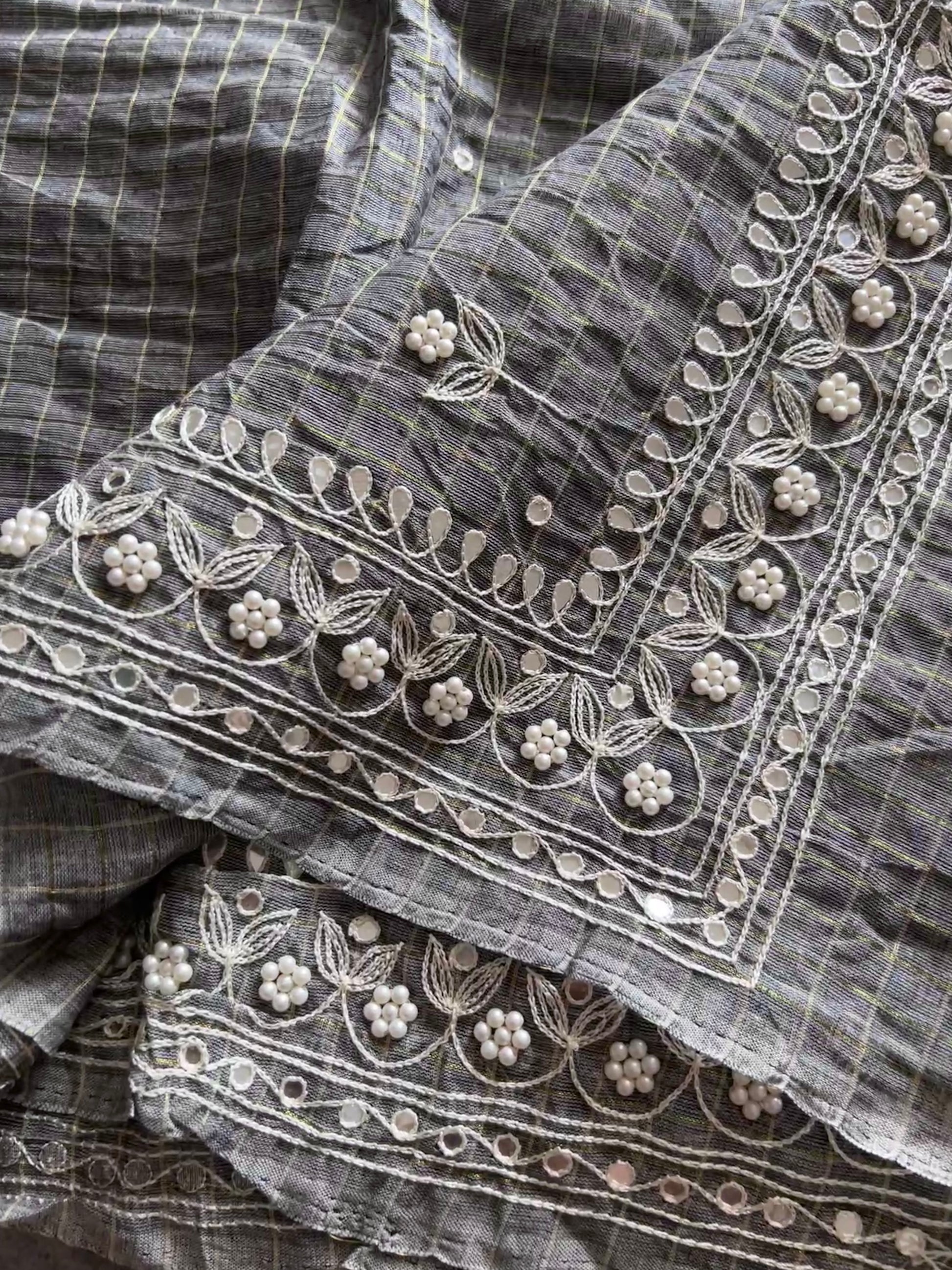 The softness of cotton combined with intricate, delicate hand-embroidered patterns adds an elegant charm that is both lightweight and graceful. The mirror work, often shimmering against vibrant threads, brings an additional layer of texture and sparkle, catching the light with every movement. This blend of comfort and artistry makes cotton sarees a versatile choice for any occasion, from festive celebrations to casual gatherings.