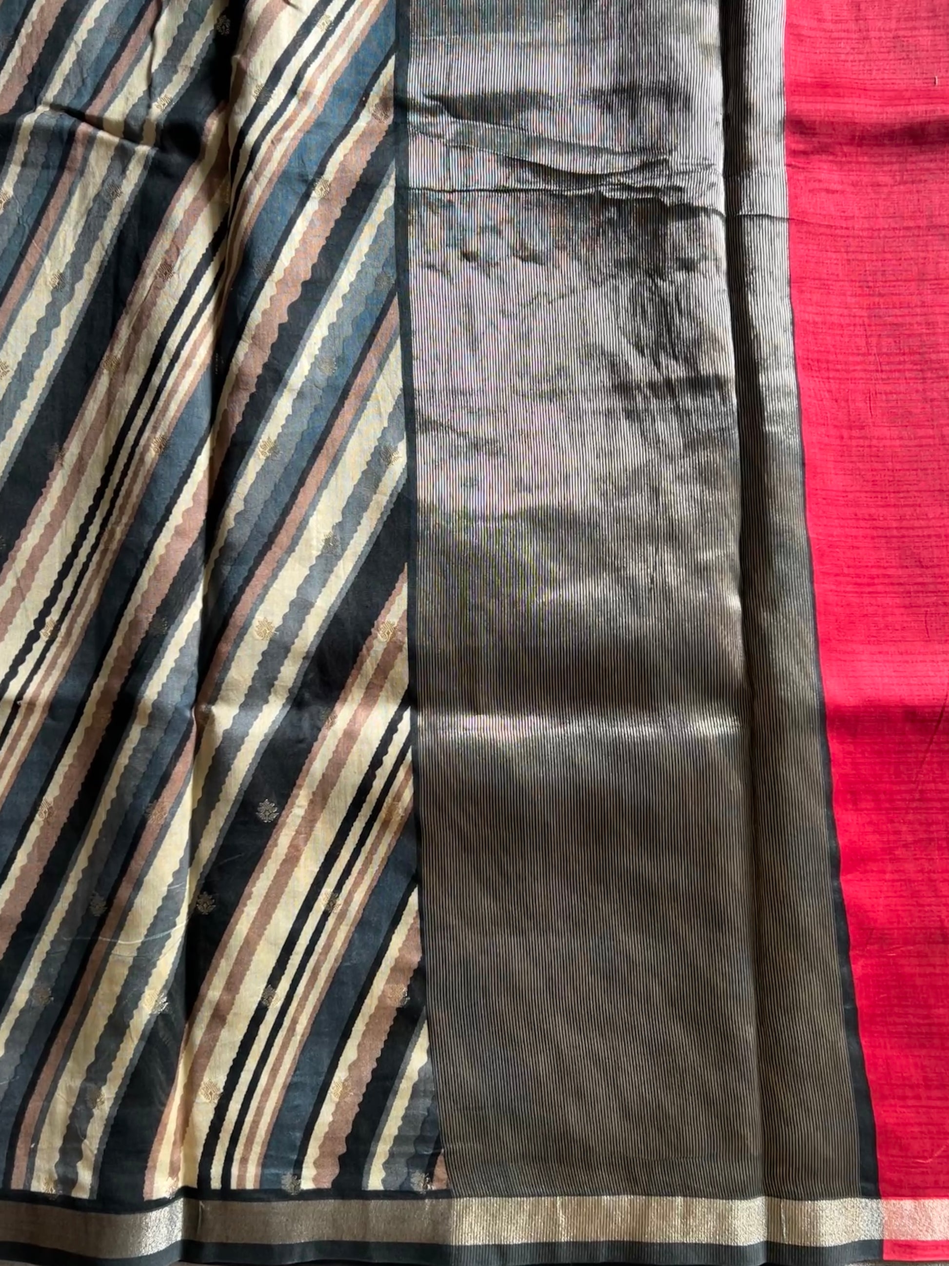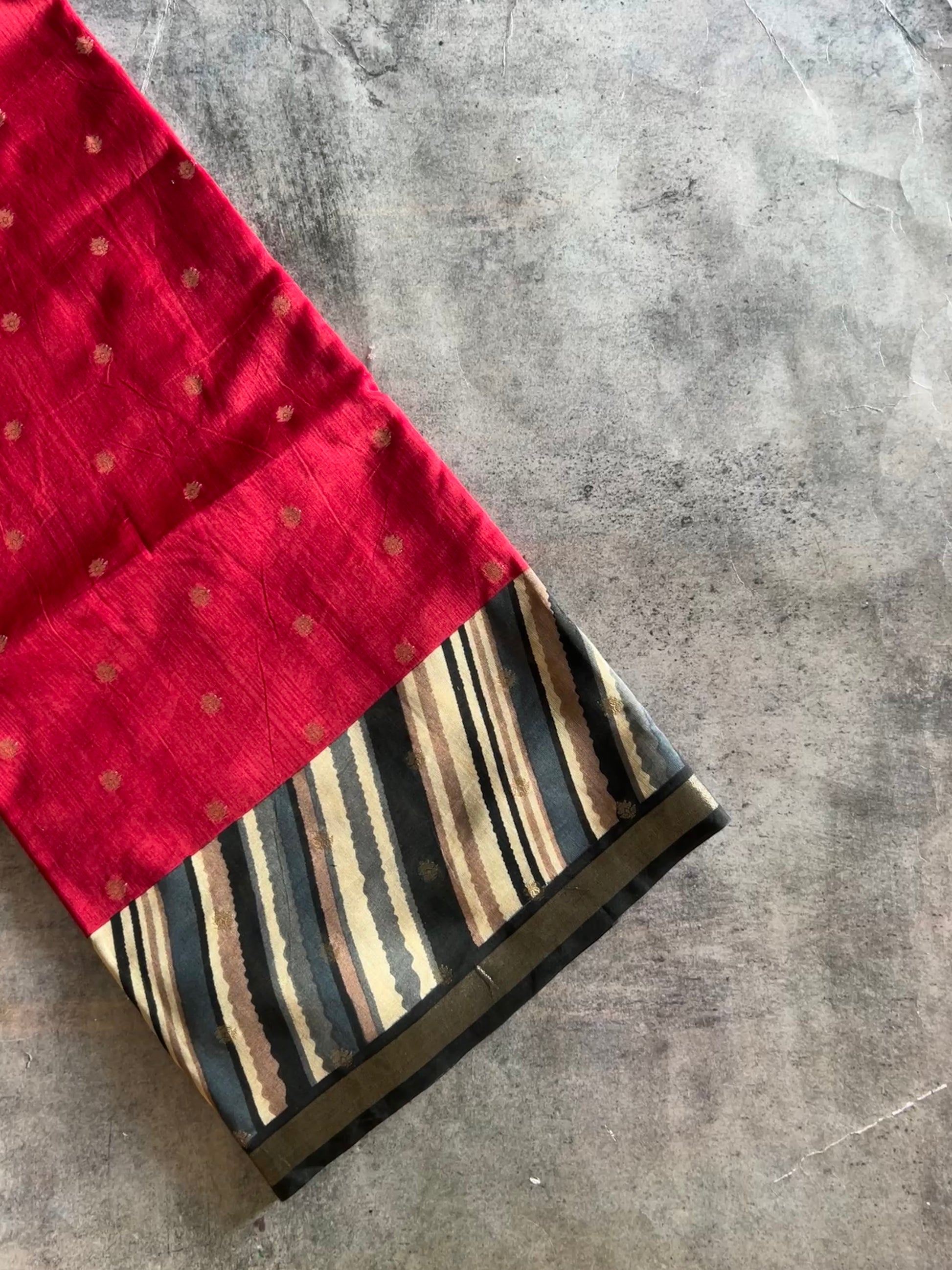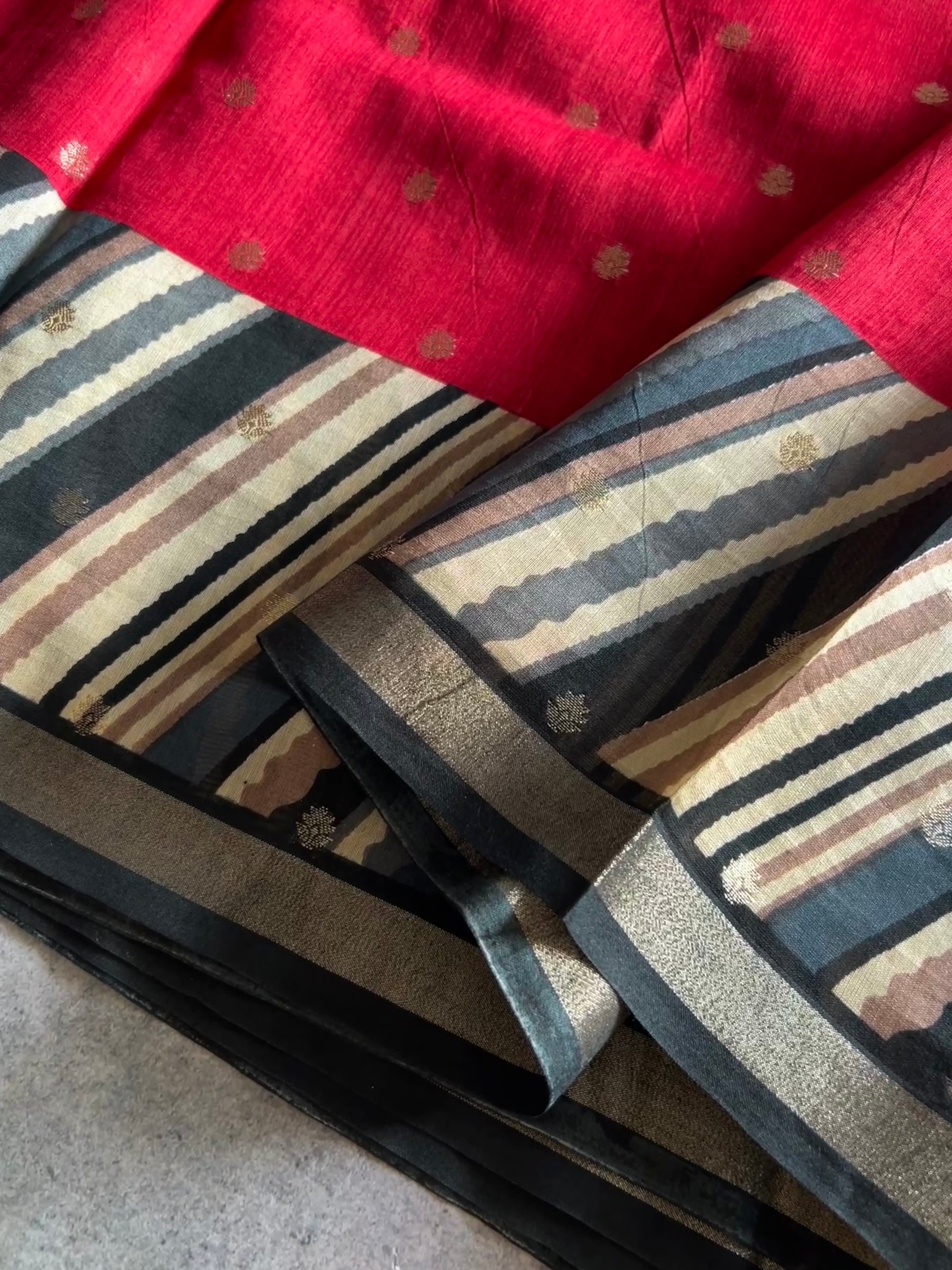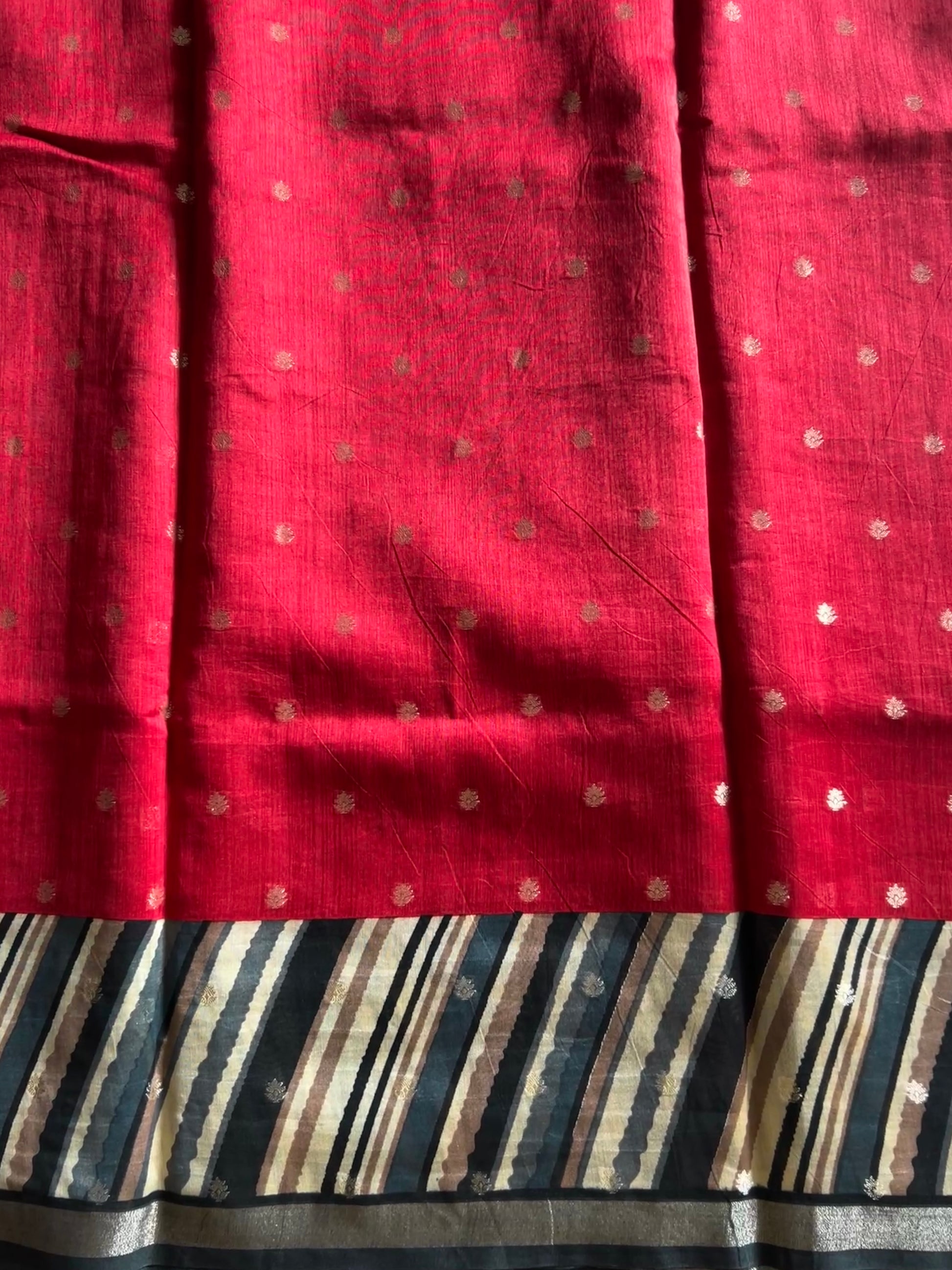 Chanderi butter silk epitomizes elegance and sophistication with its sheer, lightweight texture and natural sheen. This luxurious fabric seamlessly blends traditional charm with contemporary style, making it a timeless choice for any wardrobe. Its breathability and comfort further enhance its appeal, making Chanderi butter silk not just a fabric, but a work of art.