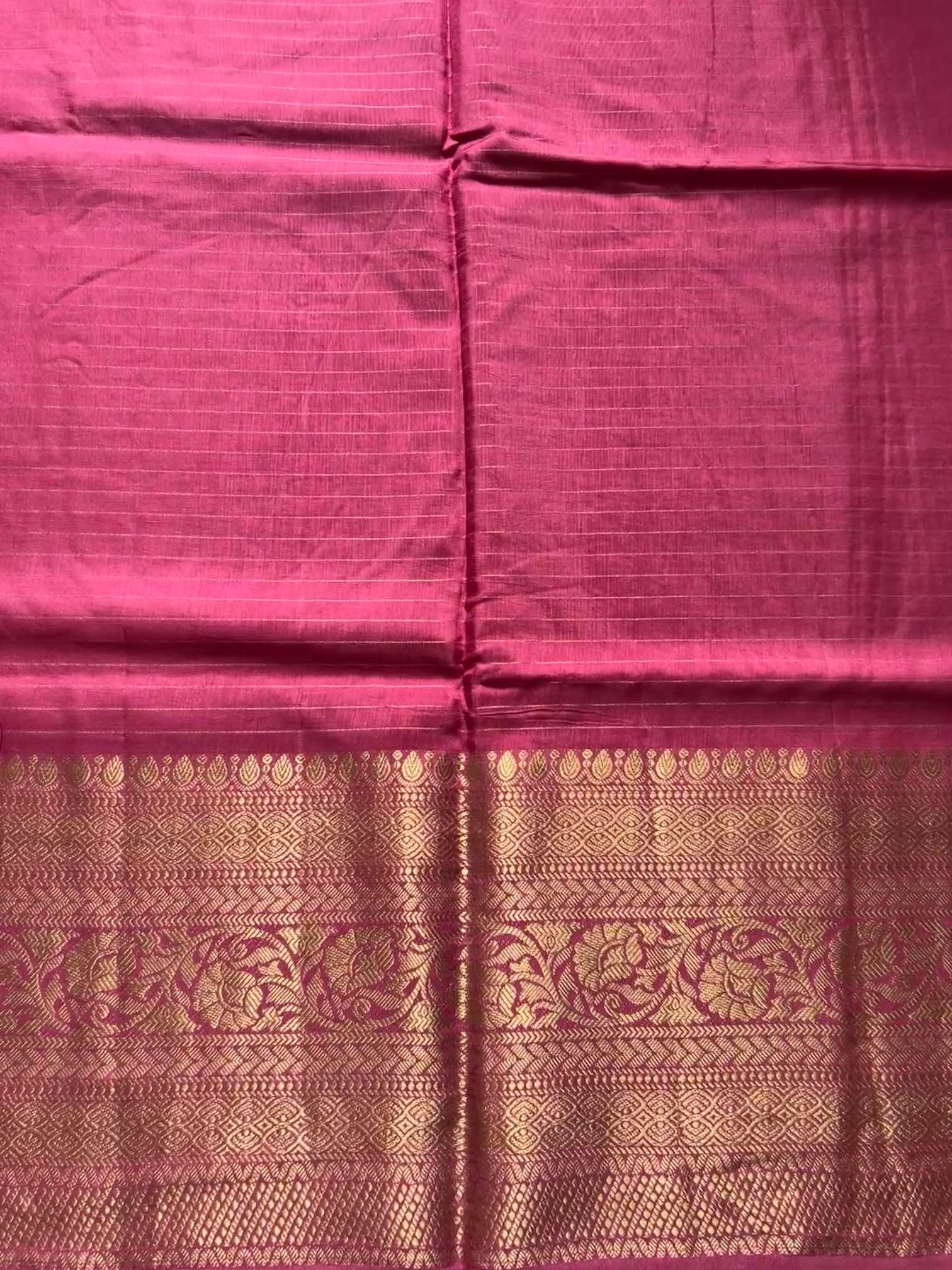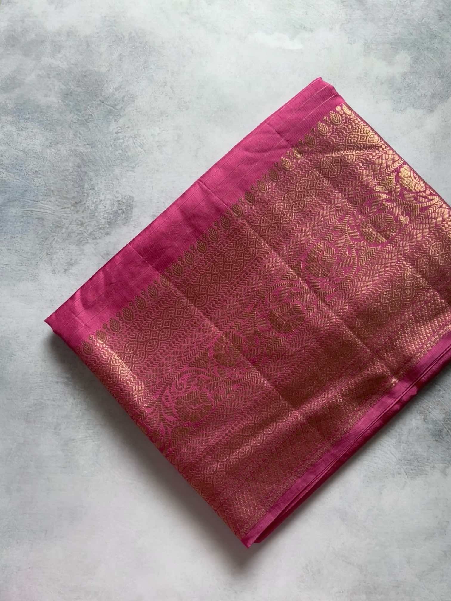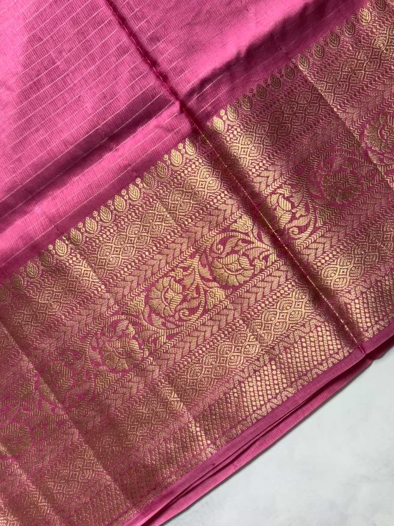 The soft, fluid texture of dola silk drapes with effortless grace, catching light in a gentle, elegant sheen. The brocade border adds a regal touch—rich, intricate, and timeless—while the fine zari lines running through the body create a subtle shimmer, giving the saree an ethereal charm.Together, these elements make the saree both sophisticated and captivating, perfect for moments that call for quiet grandeur and classic beauty.