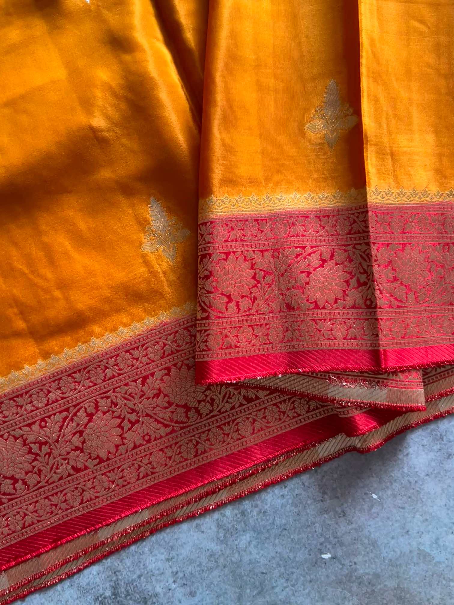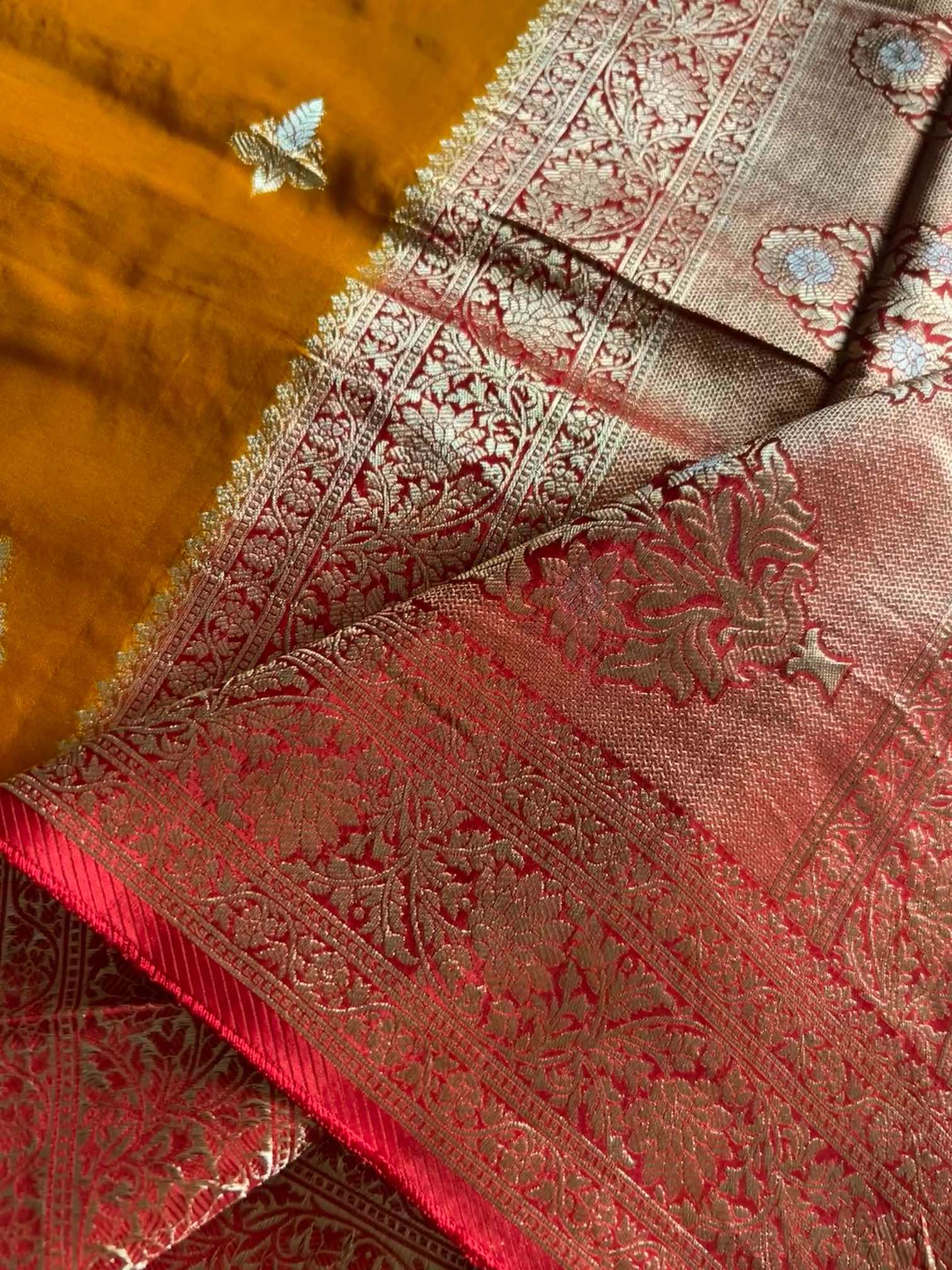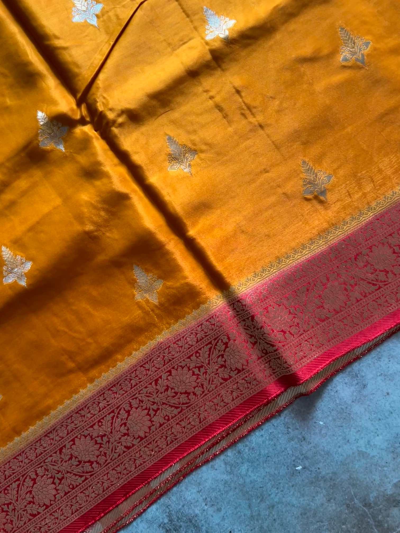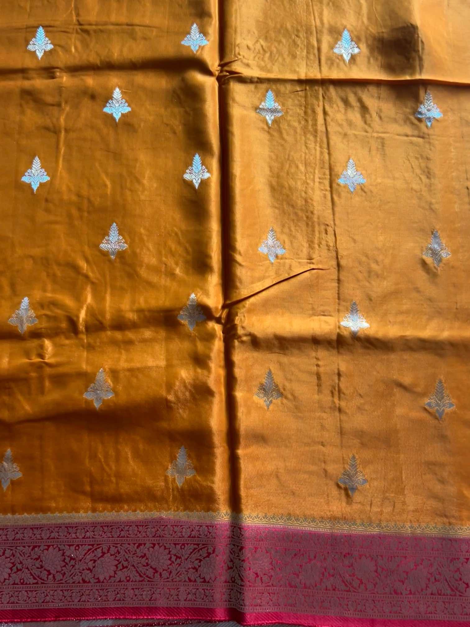A dola silk saree with a brocade border and zari butta is the epitome of timeless elegance. Its soft, lustrous texture drapes gracefully, while the rich brocade border adds regal depth. The delicate zari buttas shimmer subtly across the fabric, creating a perfect harmony of tradition and sophistication—ideal for celebrations that call for understated luxury.