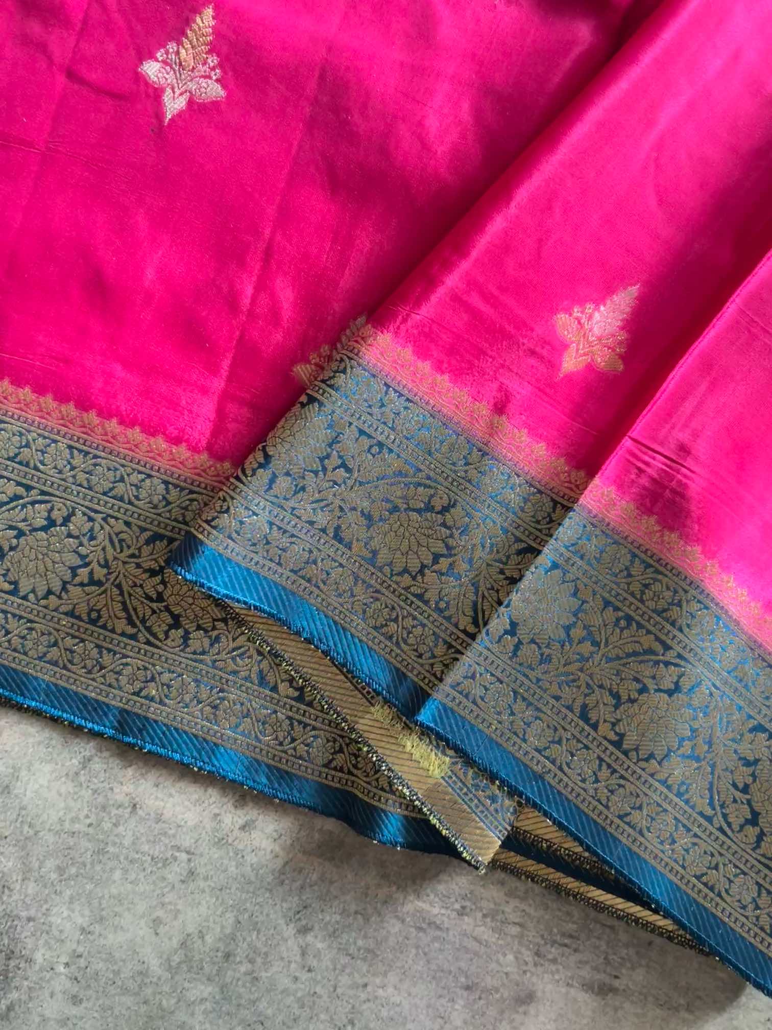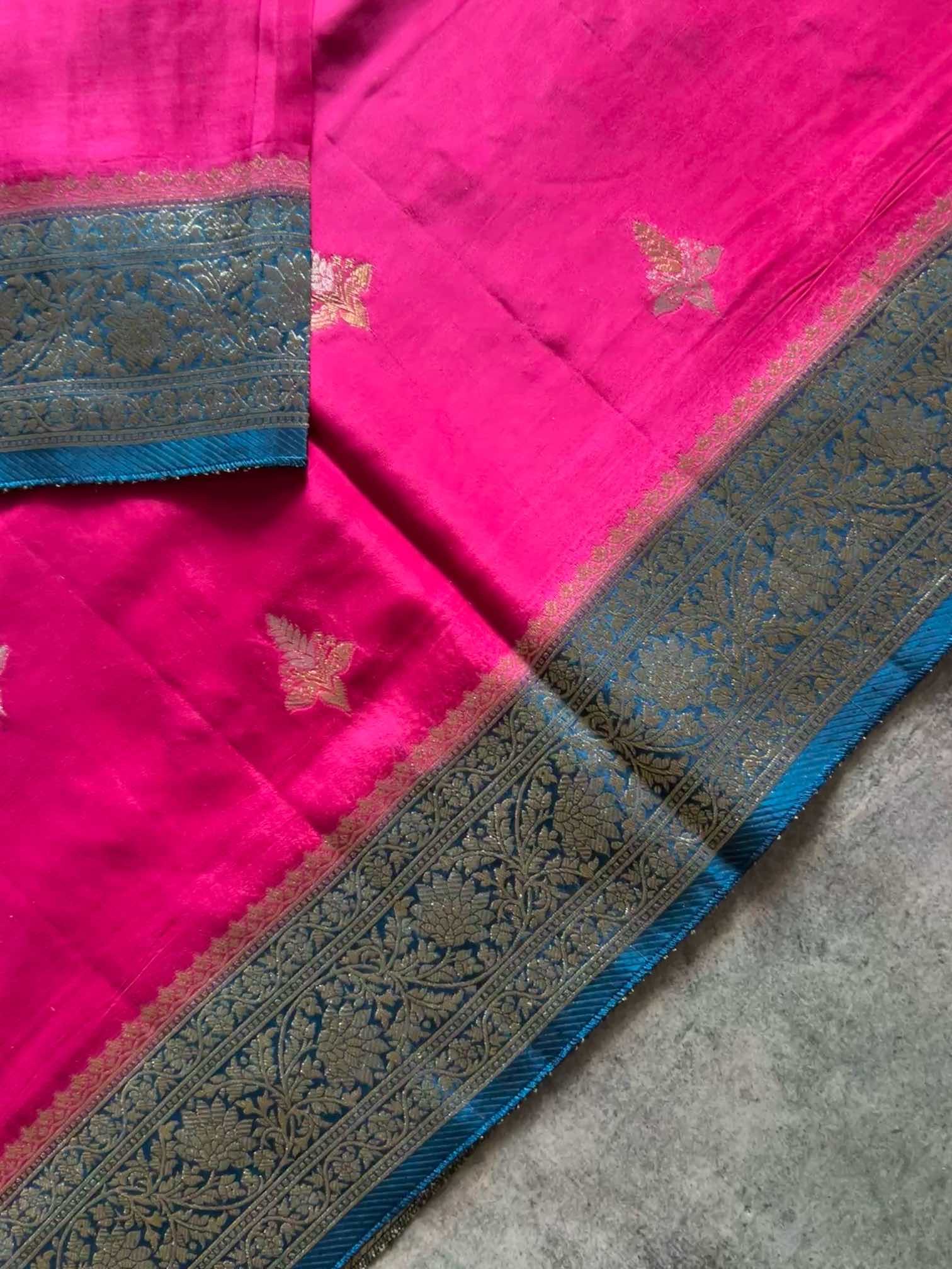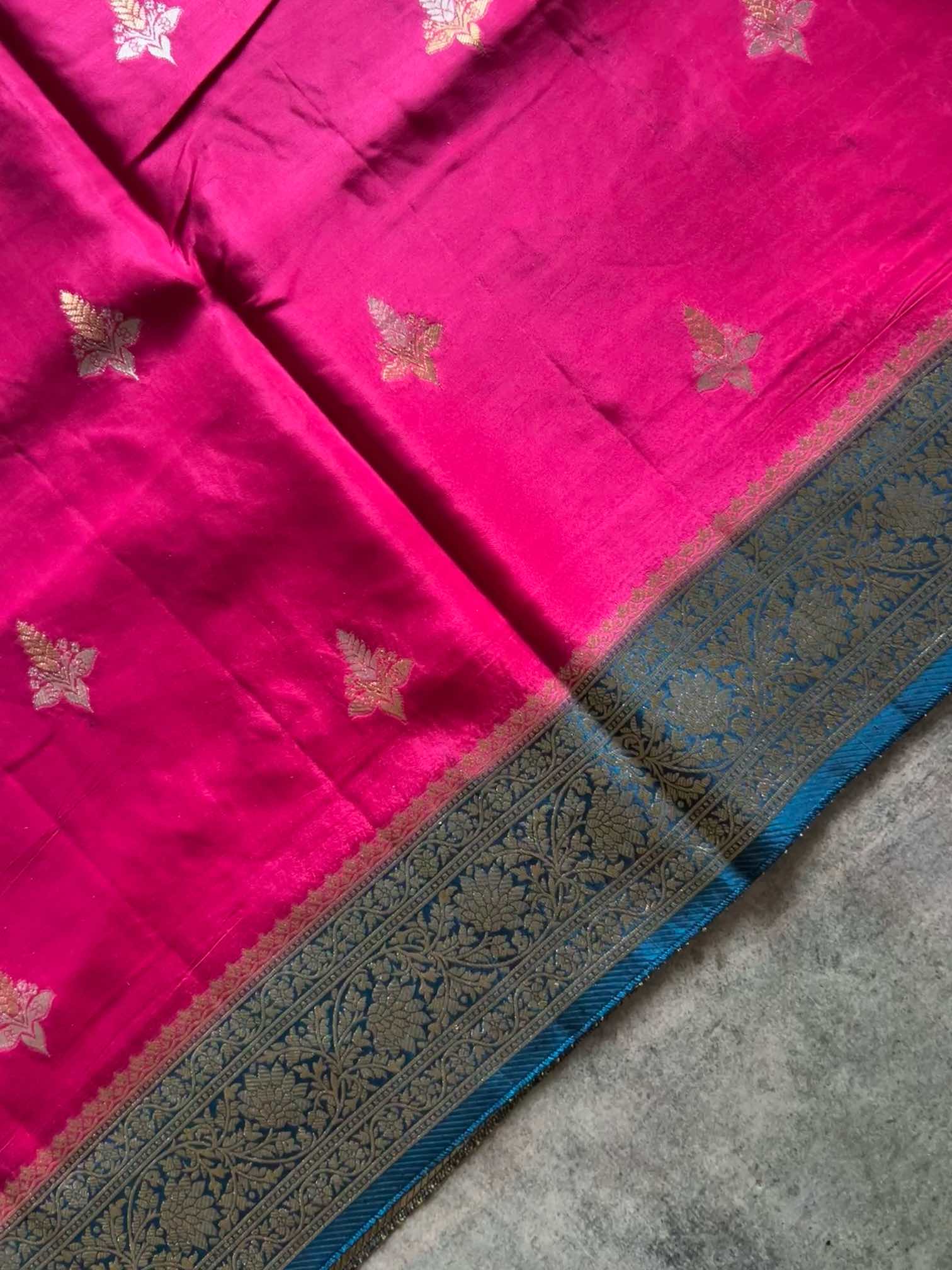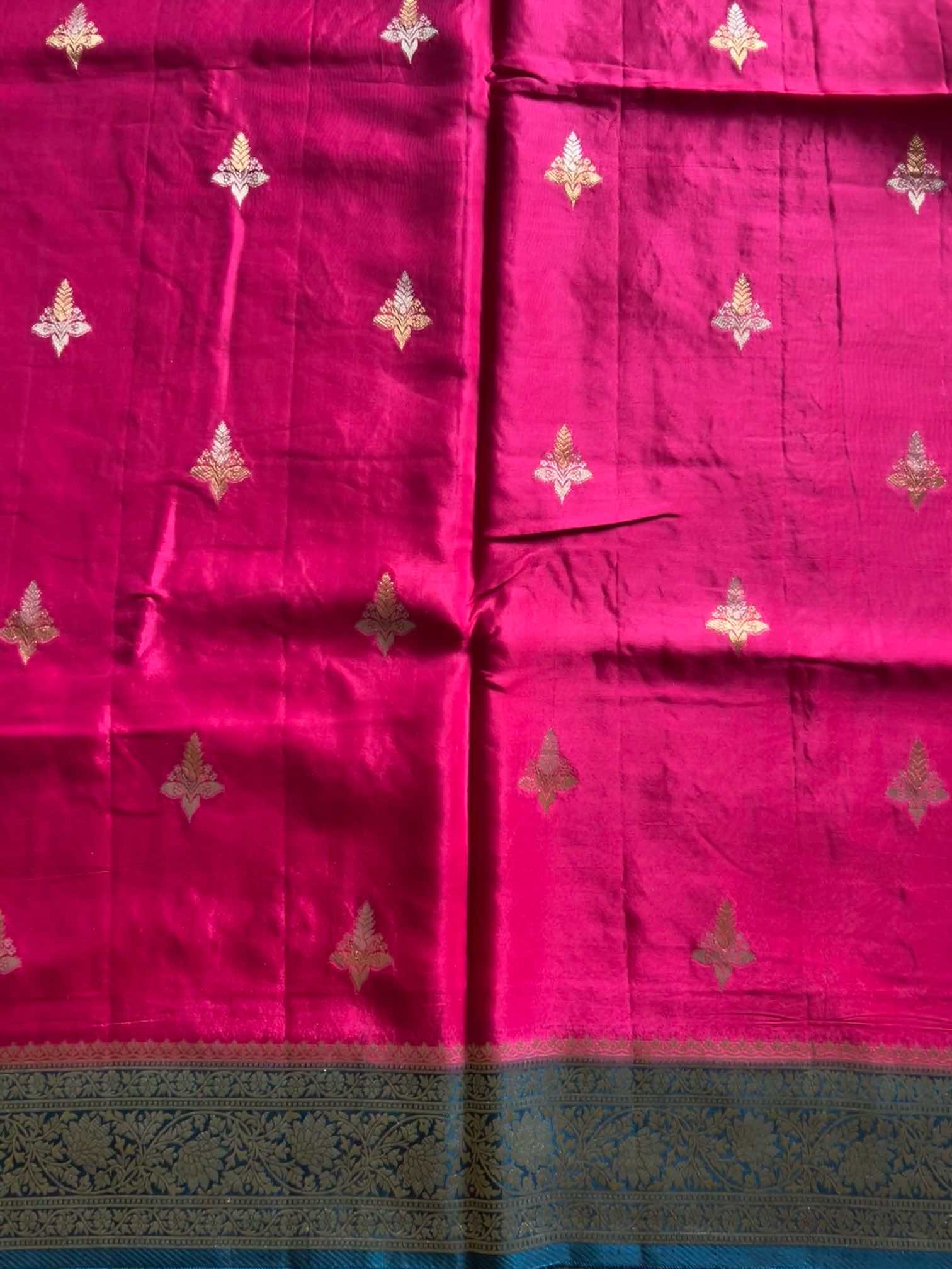 A dola silk saree with a brocade border and zari butta is the epitome of timeless elegance. Its soft, lustrous texture drapes gracefully, while the rich brocade border adds regal depth. The delicate zari buttas shimmer subtly across the fabric, creating a perfect harmony of tradition and sophistication—ideal for celebrations that call for understated luxury.